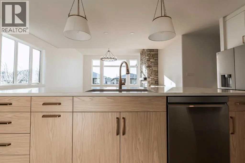 With over 2,000 sq. ft. of thoughtfully designed living space, this modern home offers five spacious bedrooms, 3.5 bathrooms, and a triple car garage. Step into a grand, welcoming foyer that leads to an expansive open-concept main floorâperfect for both entertaining and everyday living. Please note that the exterior images are architectural renderings and not photos of the actual property. Interior photos are from a previous build and are shown for reference only. Finishes, features, and layout may vary.The main level features a stylish kitchen, generous dining area, and a cozy living room with a fireplace and large windows that flood the space with natural light. The private primary suite includes a 3-piece ensuite, a large walk-in closet, and direct access to the laundry room for ultimate convenience. A 2-piece powder room completes the main floor.Upstairs, two additional bedrooms and a 4-piece bathroom offer a private, comfortable space for family or guests. The fully finished basement adds even more versatility with a spacious rec room, two more bedrooms, a 4-piece bath, and a utility room with plenty of storage. The Interior photos are not current as this property is still under construction. (id:27476)