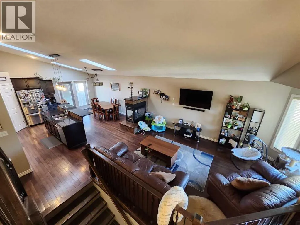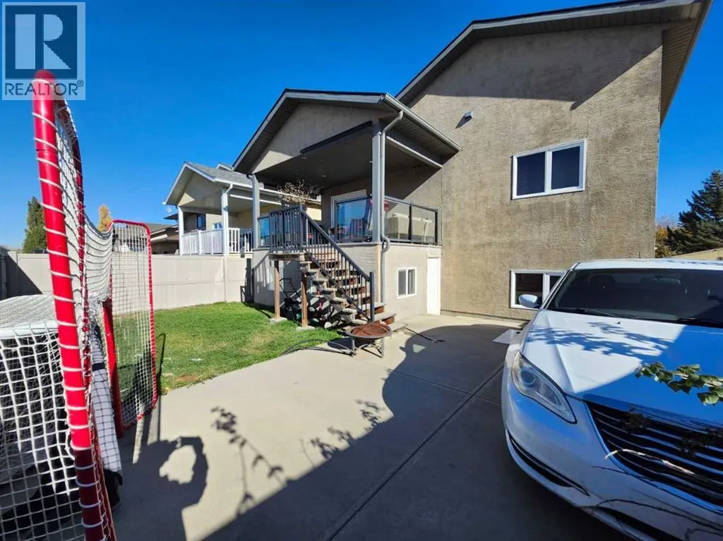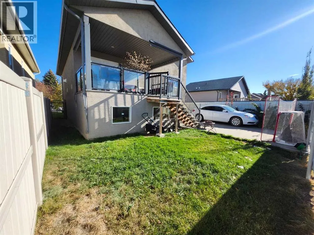 Discover this exceptional bi-level home, nestled in a quiet and welcoming Coaldale community. Beautifully landscaped, the property features a charming walking path along the south side and a backyard designed for both convenience and entertainment. With a double car garage, RV parking, and additional space off the back lane, thereâs plenty of room for family, friends, and guests. Enjoy the convenience of being just a short stroll from Tim Hortons.Inside, youâll be greeted by a spacious entryway that leads to a home designed for comfort and style. The upper-level master suite is a true retreat, featuring a generous walk-in closet and a luxurious 4-piece ensuite with his-and-her sinks and a jetted tub. From here, take in sweeping views of the expansive main floor.The main level showcases an open-concept layout, perfect for both relaxing and entertaining. The kitchen boasts granite countertops and abundant cabinetry, flowing seamlessly into the dining and living areas. A stunning three-way fireplace adds warmth and elegance, while large windows and skylights fill the space with natural light. Step outside to a covered deck, ideal for hosting gatherings or enjoying quiet evenings outdoors. Two additional spacious bedrooms and a full bathroom complete this level.The fully finished basement expands your living space with a large family room, two additional bedrooms, and another full bathroom. A walkout leads to a bright 3-season room with access to the backyard, offering a perfect space for a hot tub or seasonal enjoyment. Plenty of storage is available under the stairs, keeping the home organized and functional.The backyard is designed for easy maintenance and outdoor fun, featuring RV parking and underground sprinkler lines. This home truly blends style, space, and functionality, making it a standout opportunity in Coaldale. Donât waitâhomes like this move quickly! (id:27476)