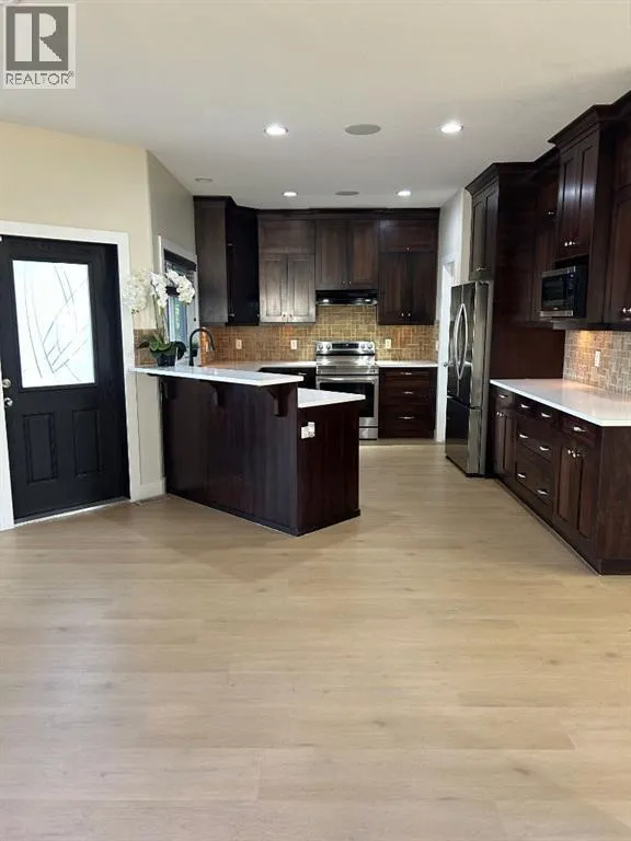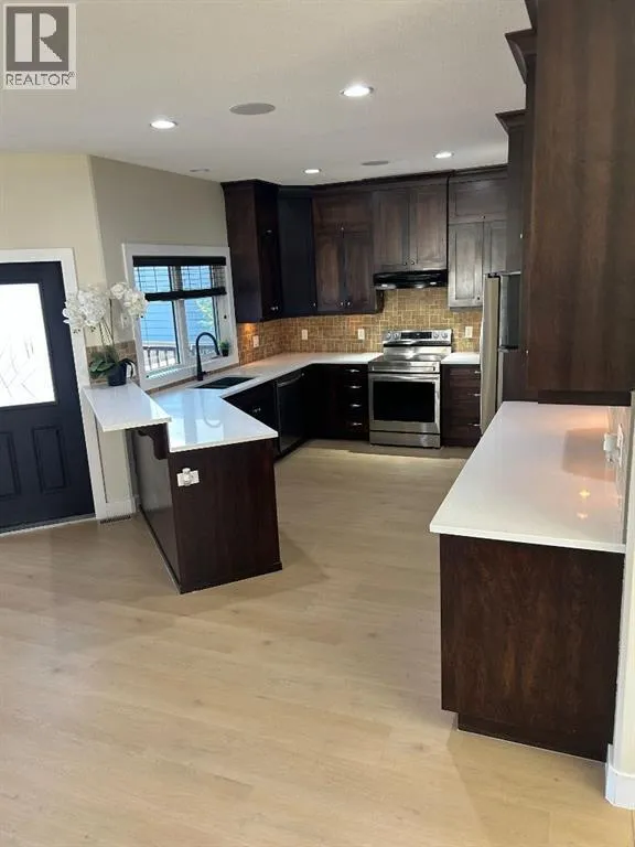 Designed with both function and family fun in mind, this exceptional home offers an ideal blend of comfort, space, and style. All new quartz through out the home with brand new undermount sinks, new faucet in the kitchen. New flooring on main level and by second kitchen on the lower level. Laundry room on second level for easy access. Featuring a sunroom, mudroom, over 550 sq. ft. of outdoor decking, and a second-level theatre room with a zoned sound system, it's ready for that special family to move in and make memories. With 4 spacious bedrooms and 4 bathrooms, this home offers plenty of room to grow. Enjoy the convenience of two family rooms, a heated double-car garage, and an extra-large front drivewayâperfect for gatherings or multi-vehicle households. Comfort and quality are evident throughout with a high-efficiency furnace, in-floor heating in the ensuite and lower-level bathroom, and thoughtful extras like underground sprinklers and a gas BBQ hookup. All appliances are less than 2 years old. Six person hot tub in the back yard which with no neighbors directly behind you creates a very quite soak. Whether you're relaxing in the theatre room, entertaining on the deck, or enjoying quiet mornings in the sunroom, this home delivers in every way. Easy to show and ready to impress! (id:27476)