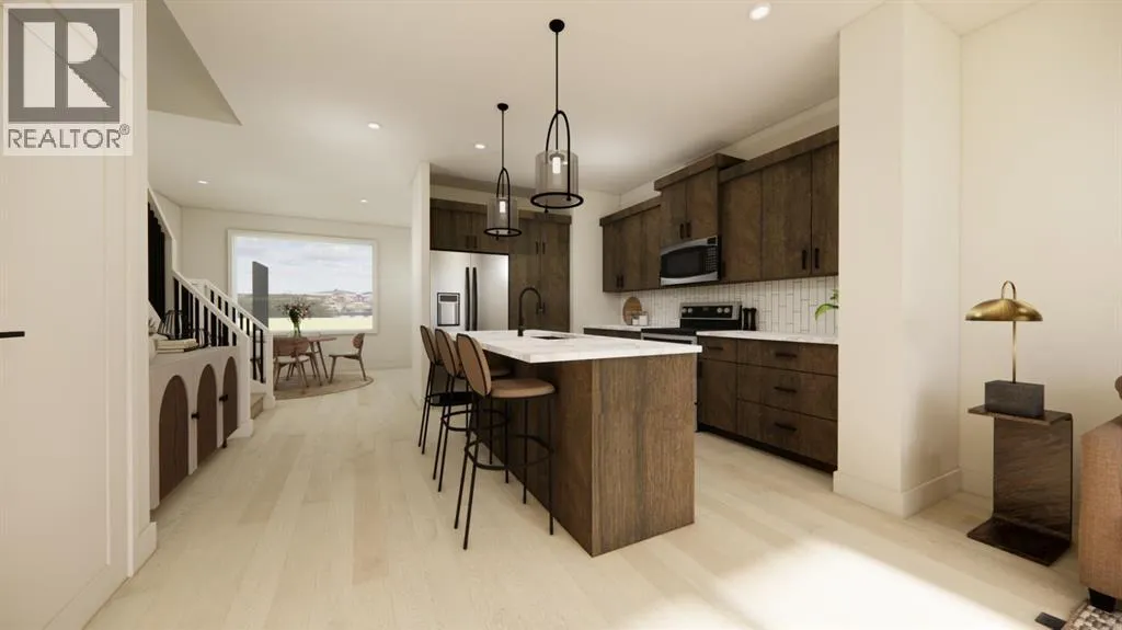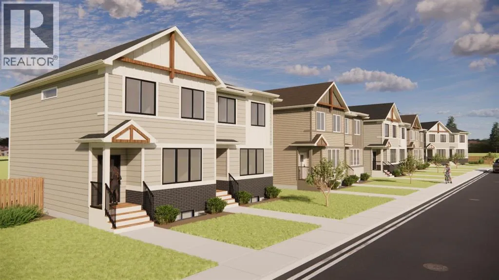 Welcome to the FIRST of EIGHT new half-duplex units to be built in the wonderful new community of Malloy Landing in the town of Coaldale! This terrific Edderton model is one of the most popular two storey layouts built by Stranville Living Master Builder and for good reason. This thoughtful main floor design incorporates a large welcoming living room and an ample dining room separated by Stranville Living's beautifully appointed kitchen that includes cabinetry by Adora Cabinets, a fully tiled backsplash, and quartz countertops for both the base cabinets and island with extended eating bar. On the upper level, you'll find all three bedrooms, both a primary ensuite and main bathroom, and laundry room set up for a stacking unit beside several shelves for storage. These terrific new duplexes are now under construction and will be ready for occupancy in the spring of 2026. Malloy Landing is the future of residential living in Coaldale and the Shift Rec Center and new high school are just the beginning of many compliments coming to this amazing new development! There's nothing like NEW! Photos are renderings but are a reasonable depiction of actual finishes selected by the builder's design team. Two exterior options and two interior options are available. Cobblestone exterior and interior package "A" shown here. (id:27476)