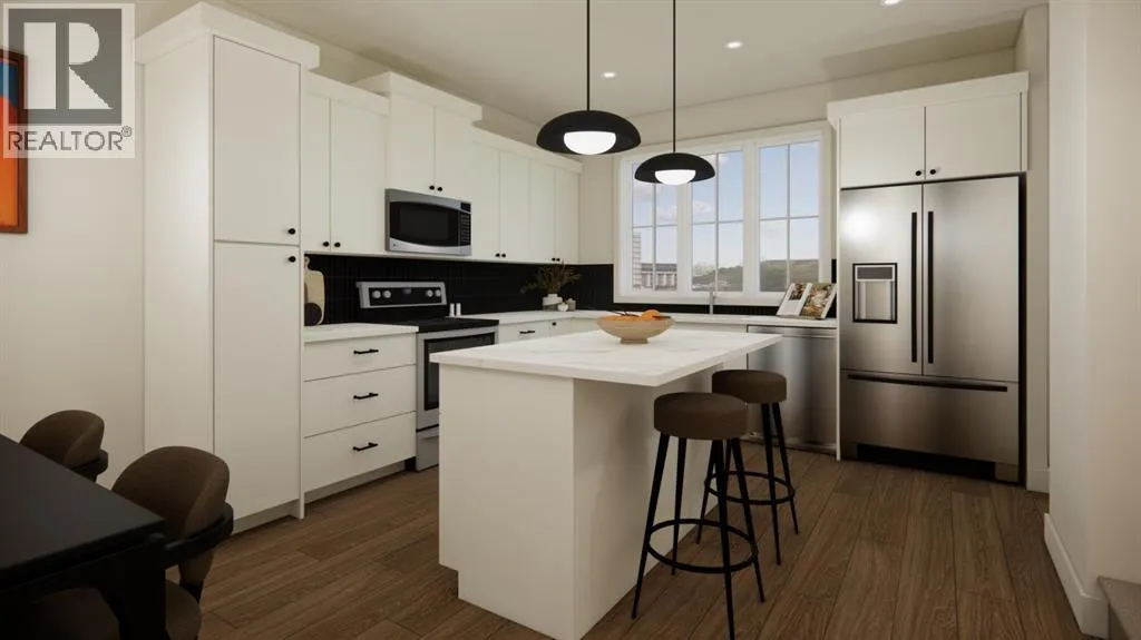 This brand new townhome by Stranville Living Master Builder showcases the Kendrick floor plan, a refreshingly unique design that stands out the moment you walk through the door. With elevated finishes throughout and a thoughtful layout, this home offers a level of style and functionality thatâs hard to find in todayâs market. The main living area immediately impresses with soaring 12-foot ceilings that create an open, airy feel, while the architectural split-level design subtly separates the living room and dining area with a short set of steps, adding visual interest and a sense of defined space without sacrificing flow.The kitchen is both sleek and practical, designed to complement the modern aesthetic while still offering plenty of workspace and storage for everyday living. Natural light pours through the main level, enhancing the clean lines, warm finishes, and overall inviting atmosphere of the home. Whether youâre hosting friends or enjoying a quiet night in, this layout simply works.Upstairs, youâll find three well-proportioned bedrooms, including a spacious primary retreat that feels genuinely private. The primary bedroom features a well-appointed ensuite with dual vanities, a walk-in shower, and a generous walk-in closet, making busy mornings and end-of-day routines effortless. The additional bedrooms offer flexibility for family, guests, or a dedicated home office.For added convenience, a double car parking pad is located in the back with alley access.Location is a major highlight here. Situated directly across the street from the brand new SHIFT Leisure Centre and a brand new high school, this home is perfectly positioned in the growing community of Malloy Landing in Coaldale. Itâs a setting that blends modern living with everyday convenience, ideal for those who value thoughtful design, quality construction, and a neighbourhood built for the future. A back deck and front landscaping are included in the list price, as well as GST and a 10 year new h ome warranty. (id:27476)
