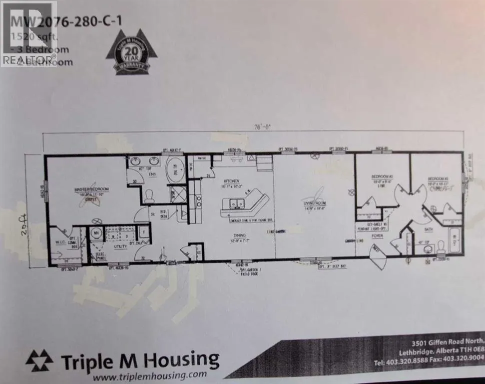 Welcome to 212 Engineer Avenue located in the Manufactured Housing Community of STATION GROUNDS in Coaldale. This 20 foot wide Triple M Housing home built in 2018 offers you 1520 square feet of comfort and care -free living. From the spacious open concept living room and kitchen/dining area with kitchen island to the primary bedroom with large walk-in closet with 5 piece ensuite, Iâm sure you will be impressed. Thereâs a separate laundry/furnace room and lots of closet and pantry space. At the other end of the home are located two bedrooms, one of which could be a dandy bright office or craft room, and another 4 piece bathroom. Several appliances are included in the price as well as the gazebo (with tarp) and 10ft x 8ft shed. The parking pad will accommodate two vehicles. Pets are welcome (with restrictions as to type and size). Also, the potential buyer (no age restriction) must be pre-approved by park management located in the park. Interested? Why wait! Contact your favorite REALTOR® now and have a look at all that this home offers you. (id:27476)