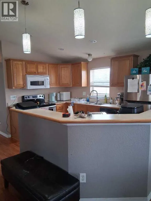 Open concept bungalow style home original drywall finishing throughout. It's a classy modular with over 1200 sq ft in Coaldale's nicest "Station Grounds", ready for your family. A spacious 3 bedroom home you can grow into, with an affordable monthly budget. Off street parking and a full set of appliances. The partially covered deck also features an accessible ramp for any friends in wheelchairs. Kitchen convenience with breakfast bar seating. Floor leveling and roofing have been done within the last year. Only one neighbor and easy access to the downtown amenities of Coaldale make this one a must see, call your Realtor soon. (id:27476)