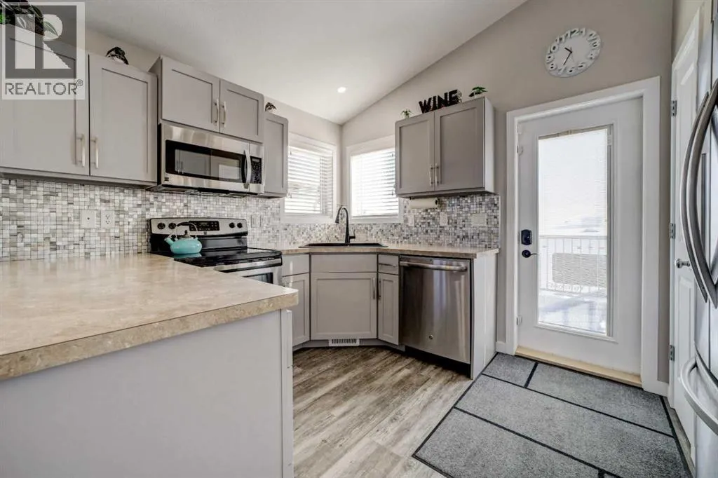 Welcome to this beautifully maintained 4 bedroom, 3 bathroom bi-level home in the peaceful neighbourhood of Parkside in Coaldale!From the moment you step inside, youâll appreciate the abundance of natural light pouring through the oversized front windows, creating a bright and inviting atmosphere. This home truly shows like new, with all flooring replaced in 2025, featuring stylish vinyl plank upstairs and brand-new carpet in the fully finished basement. Central air conditioning keeps the home comfortable all summer long.The main floor offers two bedrooms, including a spacious primary retreat complete with a walk-in closet and a 3-piece ensuite. Youâll also find an additional full bathroom on the main floor, providing convenient access for visitors. The bright living room opens seamlessly to the dining area and kitchen, creating a welcoming space for entertaining. The kitchen has been thoughtfully upgraded with a new backsplash, custom pull-out shelving for easy access to large appliances, and additional cupboards for keeping everything perfectly organized. Pride of ownership is evident throughout.Downstairs, youâll find two additional bedrooms, another full bathroom, and a generous family room â an ideal space for movie nights, entertaining, or watching the big game.Step outside and enjoy the east-facing deck overlooking a beautifully landscaped backyard, complete with irrigated garden boxes and exceptional storage, both in the shed and beneath the enclosed deck. Backing onto an open field, youâll love the peaceful country views, added privacy, and breathtaking sunrises. The fully fenced yard offers plenty of space to relax, garden, or entertain, while the 24' x 24' parking pad with convenient alley access provides ample off-street parking and excellent potential for a future garage.A block from the local dog park and close to walking paths, green spaces, and great schools, this location offers convenience and lifestyle in equal measure. Stafford Lake is only a ten-minute drive east, perfect for an quick escape on hot summer days. Coaldale combines small-town charm and a strong sense of community with easy access to Lethbridge just 10 minutes away. Enjoy the relaxed pace, local shops, dining, and amenities nearby, including the brand-new Shift Recreation Centre, while still having Lethbridge just minutes away for everything else you need. Golf enthusiasts will also appreciate the beautiful Land-O-Lakes Golf & Country Club located just on the opposite side of town.Move-in ready and meticulously cared for, this Parkside home wonât last long! (id:27476)