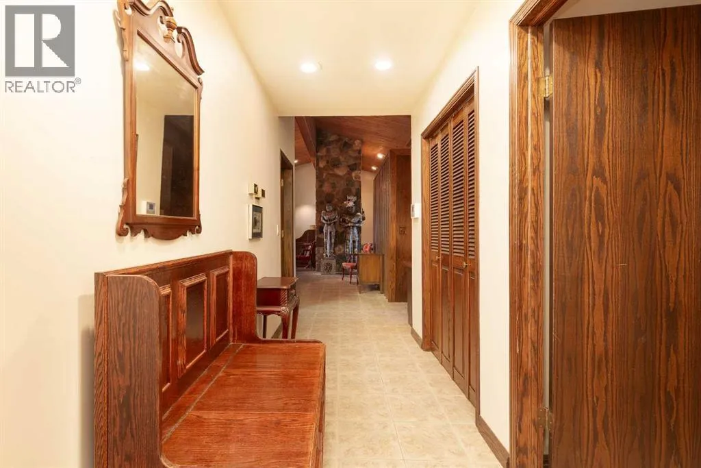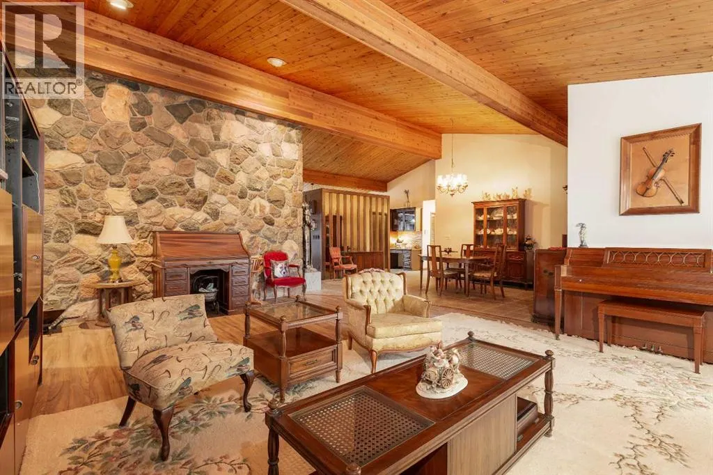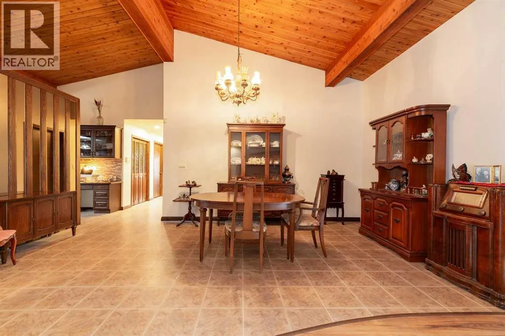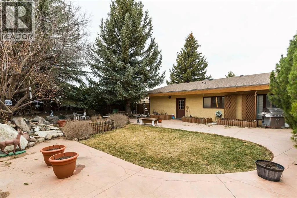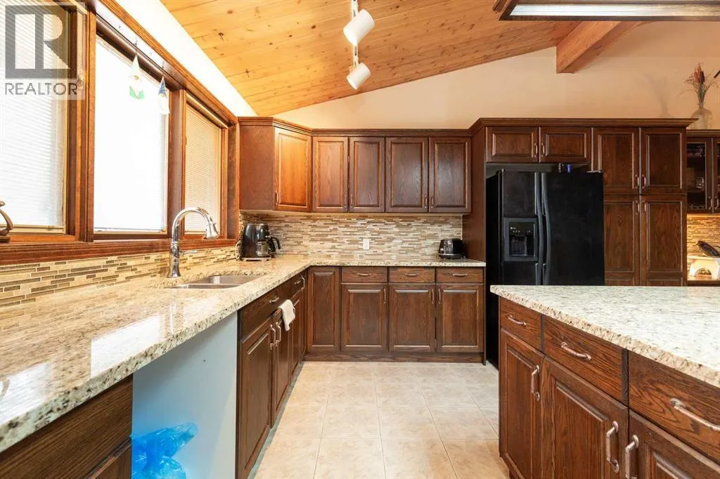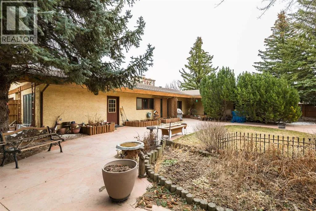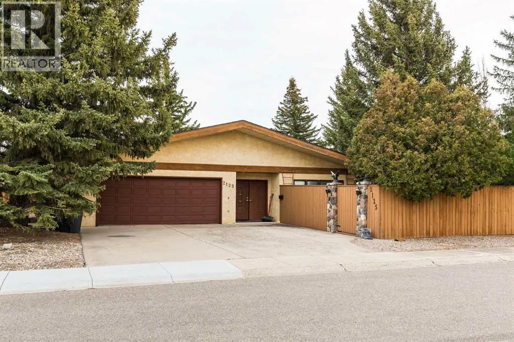 Welcome to 2125 25 St. Tucked away in a quiet cul-de-sac, this impressive 3,420 sq. ft. bungalow offers a rare blend of space, character, and refined design, all set on a beautifully treed 12,775 sq. ft. lot. Showcasing a warm mid-century modern influence, the home features timeless architectural elements, natural materials, and a layout that emphasizes both form and function. The main living area is truly striking, highlighted by soaring beamed cedar vaulted ceilings and a thoughtfully designed layout that balances formal and casual spaces. A floor-to-ceiling custom rock wood-burning fireplace serves as a stunning focal point, gracefully separating the formal living and sitting rooms from the inviting family room, kitchen, and breakfast nook. The expansive kitchen is well-appointed with a large island, built-in oven, and a distinctive brick surround stovetop. The home features 3 bedrooms, a separate office, and 3 full bathrooms, with all 3 bedrooms enjoying direct access to a bathroom, including two bedrooms with private ensuites,. The primary suite is a luxurious retreat, complete with a walk-in closet and a spacious ensuite offering dual vanities, a soaker tub, and a separate shower. Just off the primary bedroom, a private hot tub room with a skylight and sliding glass doors opens to the patioâcreating a serene, spa-like escape. Outdoors, the fully fenced and landscaped yard is framed by mature trees, providing both privacy and a tranquil setting. A double attached garage and space for RV parking compliment this exceptional property. A distinctive home offering timeless appeal in a sought-after Coaldale location. (id:27476)