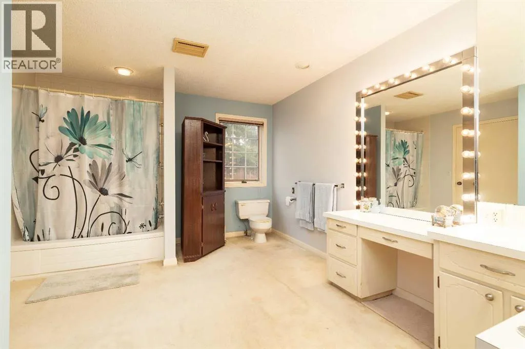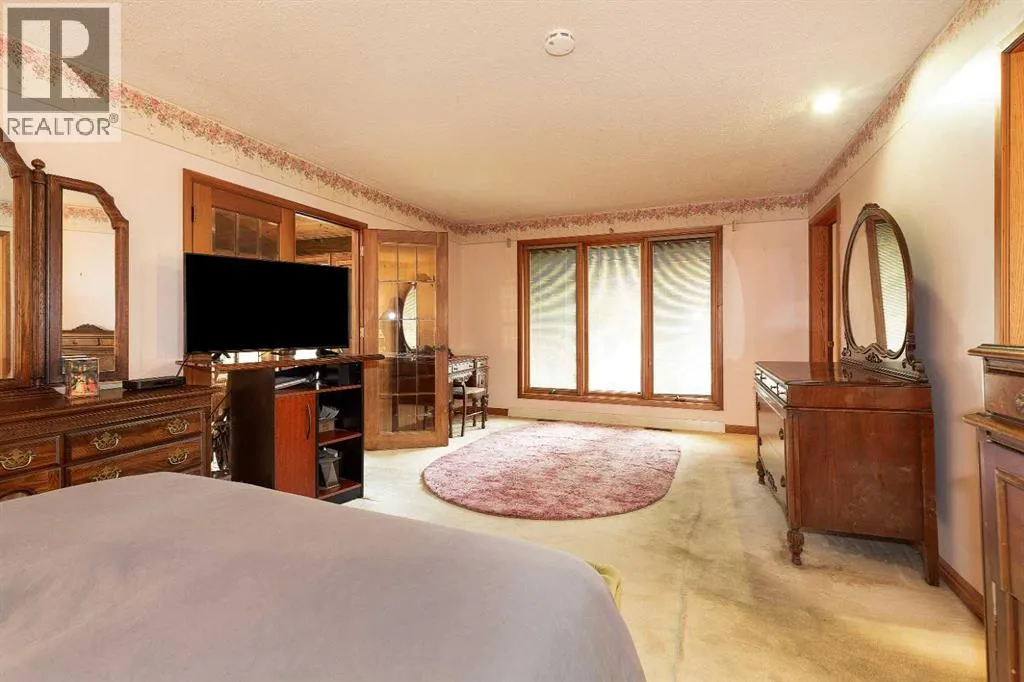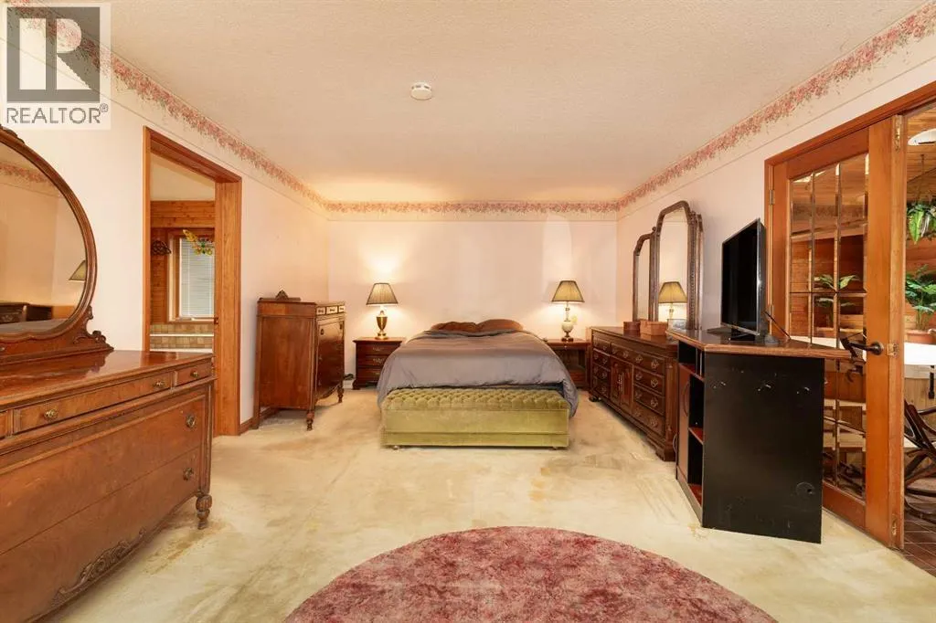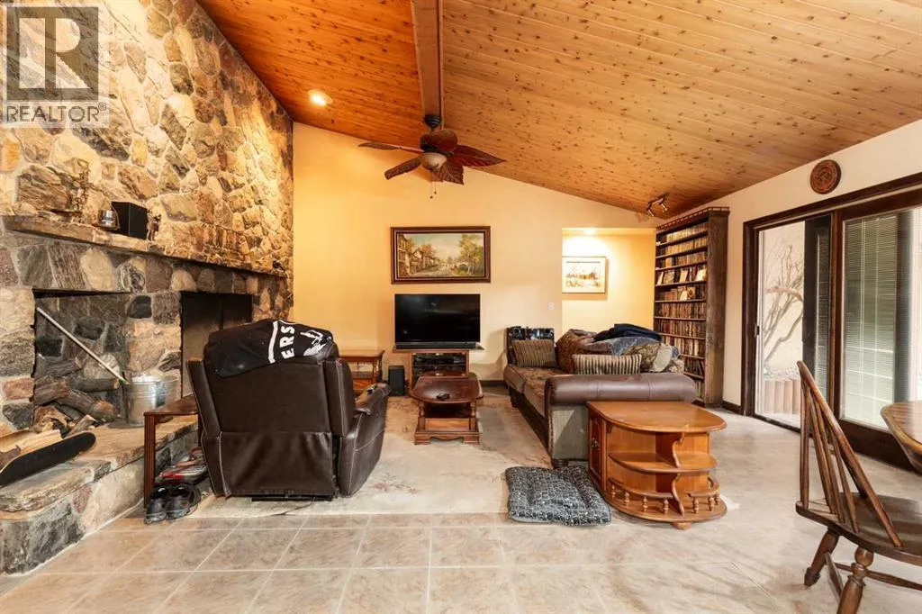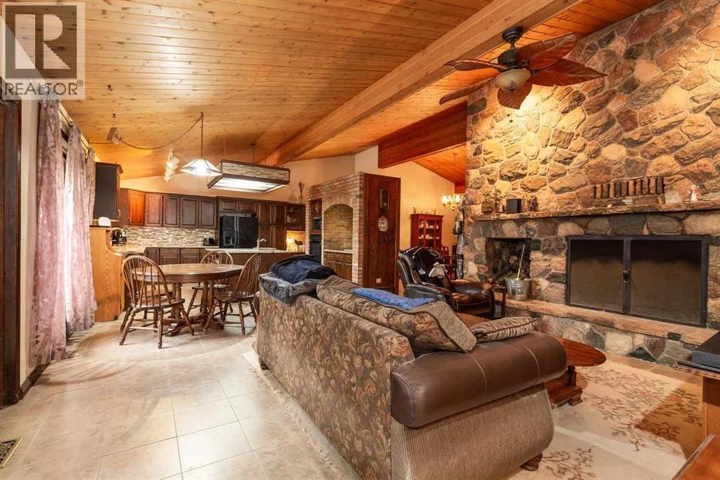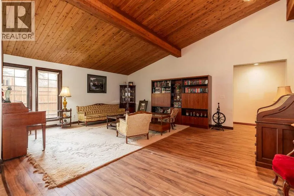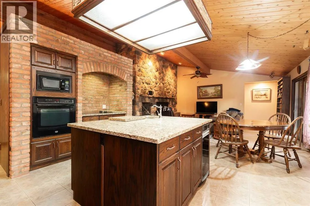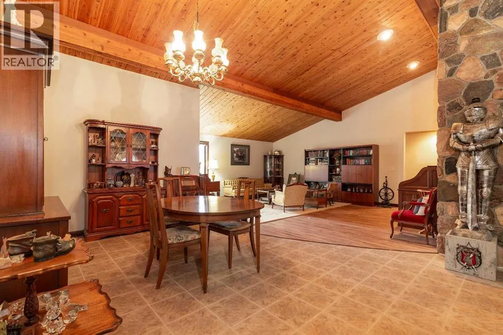 Welcome to 2125 25 St. Tucked away in a quiet cul-de-sac, this impressive 3,420 sq. ft. bungalow offers a rare blend of space, character, and refined design, all set on a beautifully treed 12,775 sq. ft. lot. Showcasing a warm mid-century modern influence, the home features timeless architectural elements, natural materials, and a layout that emphasizes both form and function. The main living area is truly striking, highlighted by soaring beamed cedar vaulted ceilings and a thoughtfully designed layout that balances formal and casual spaces. A floor-to-ceiling custom rock wood-burning fireplace serves as a stunning focal point, gracefully separating the formal living and sitting rooms from the inviting family room, kitchen, and breakfast nook. The expansive kitchen is well-appointed with a large island, built-in oven, and a distinctive brick surround stovetop. The home features 3 bedrooms, a separate office, and 3 full bathrooms, with all 3 bedrooms enjoying direct access to a bathroom, including two bedrooms with private ensuites,. The primary suite is a luxurious retreat, complete with a walk-in closet and a spacious ensuite offering dual vanities, a soaker tub, and a separate shower. Just off the primary bedroom, a private hot tub room with a skylight and sliding glass doors opens to the patioâcreating a serene, spa-like escape. Outdoors, the fully fenced and landscaped yard is framed by mature trees, providing both privacy and a tranquil setting. A double attached garage and space for RV parking compliment this exceptional property. A distinctive home offering timeless appeal in a sought-after Coaldale location. (id:27476)