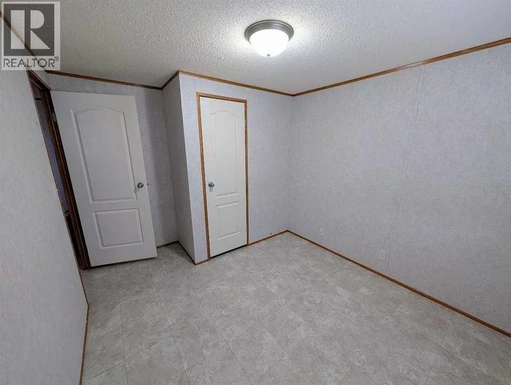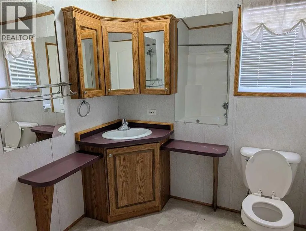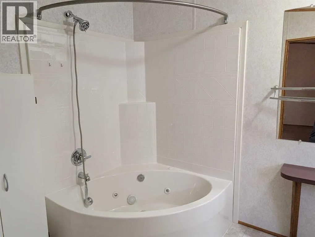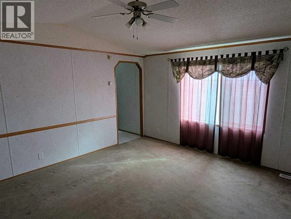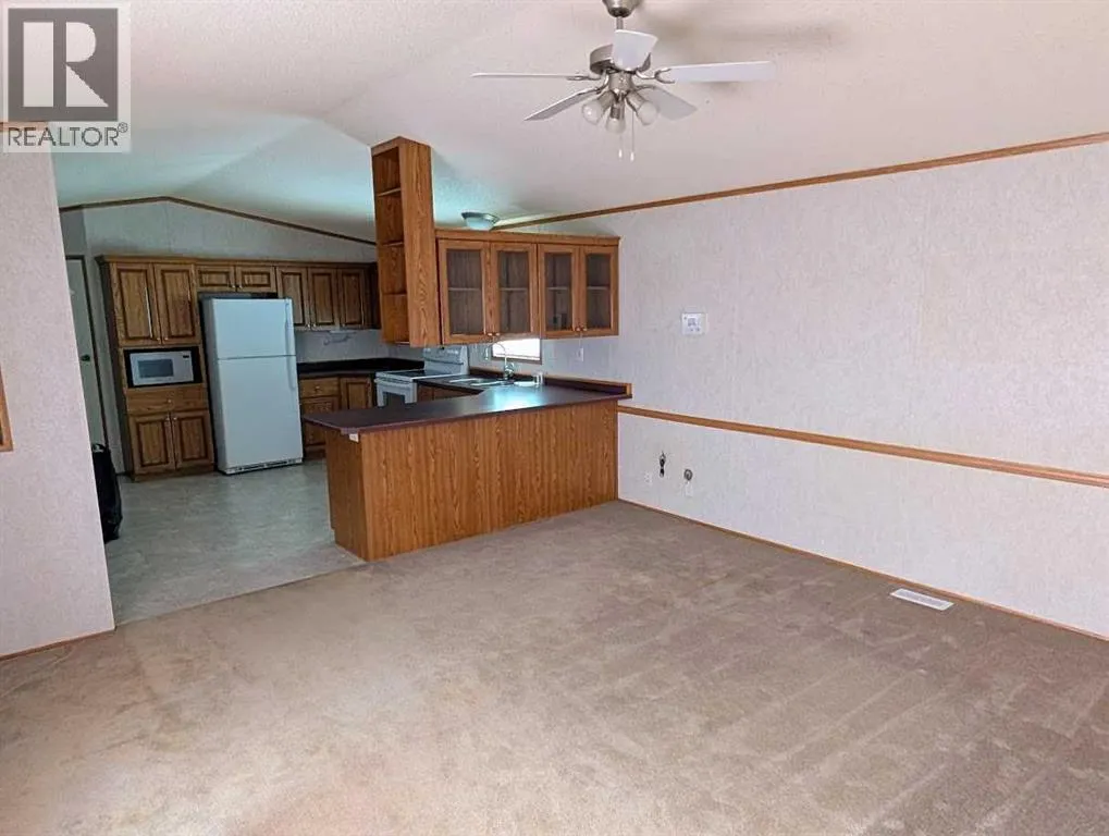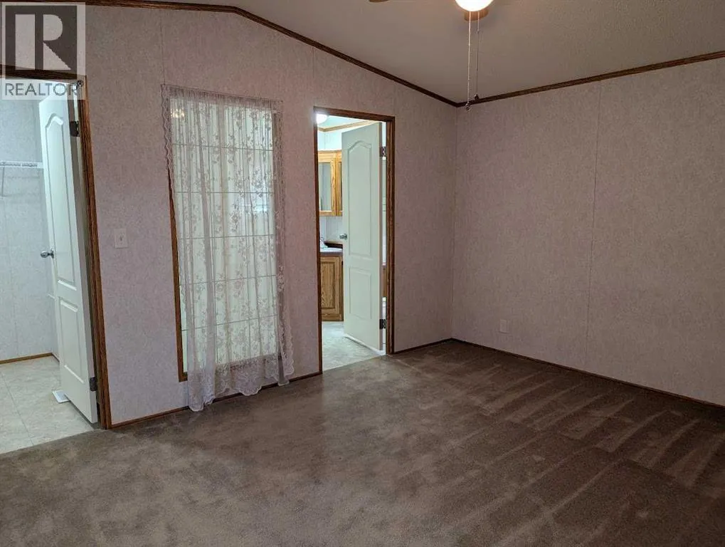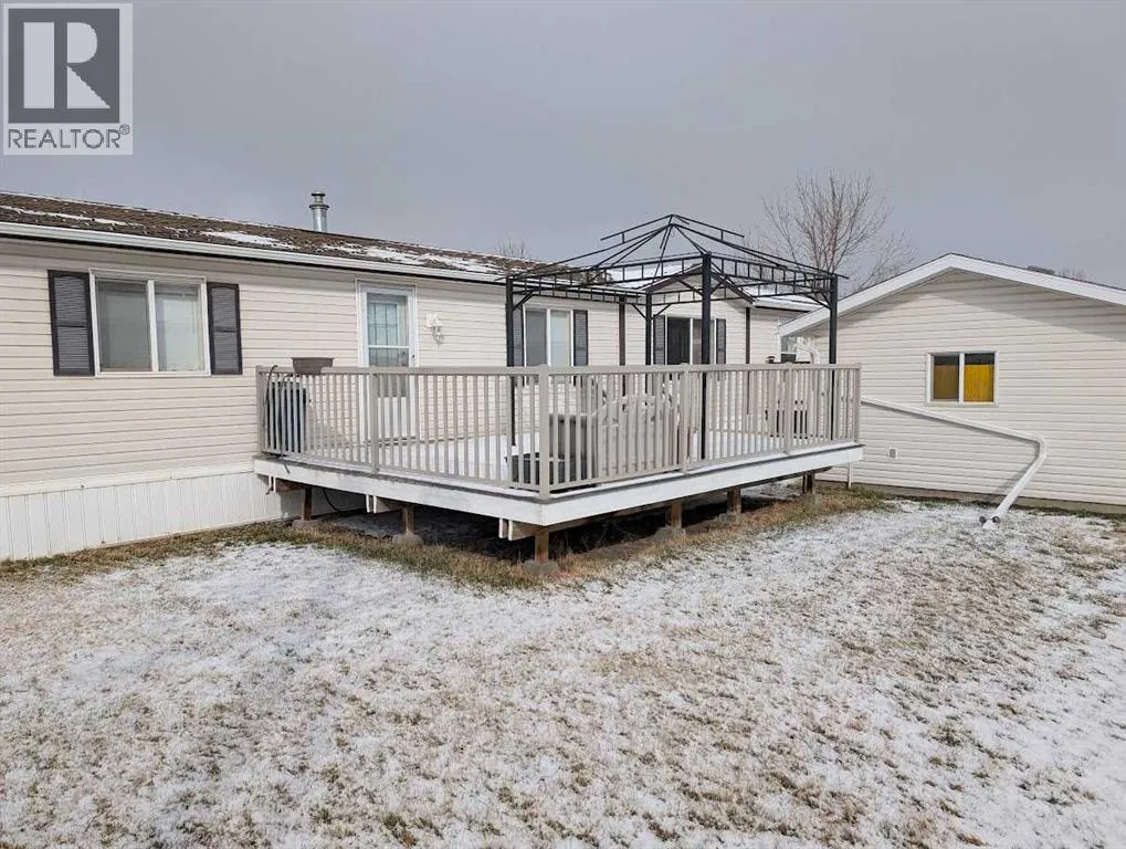 Perfectly positioned on a corner lot, this 1,216-square-foot residence offers an exceptional blend of modern interior efficiency and high-value exterior amenities, headlined by a single detached garage and an expansive deck designed for quintessential outdoor living. The 76' x 16' floor plan is anchored by a central, open-concept kitchen and vaulted living area that serves as a natural privacy buffer between the sleeping wings, ensuring the sprawling master retreatâcomplete with a four-piece ensuite and walk-in closetâremains a secluded sanctuary. Opposite the main living hub, two additional well-proportioned bedrooms and a full guest bath provide the ideal layout for a growing family or a sophisticated home office setup. Beyond the interior's vaulted ceilings and functional utility room, the propertyâs exterior features a clean, neutral-toned facade with professional skirting and a detached garage (14x24)that provides essential shelter and supplemental storage. Perfect for first time buyers or even consider adding this to your portfolio. Contact your Realtor today and schedule your own private viewing. (id:27476)