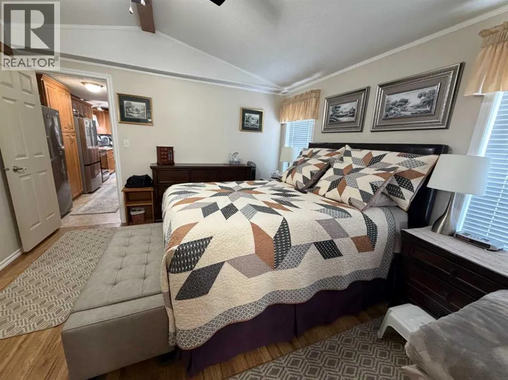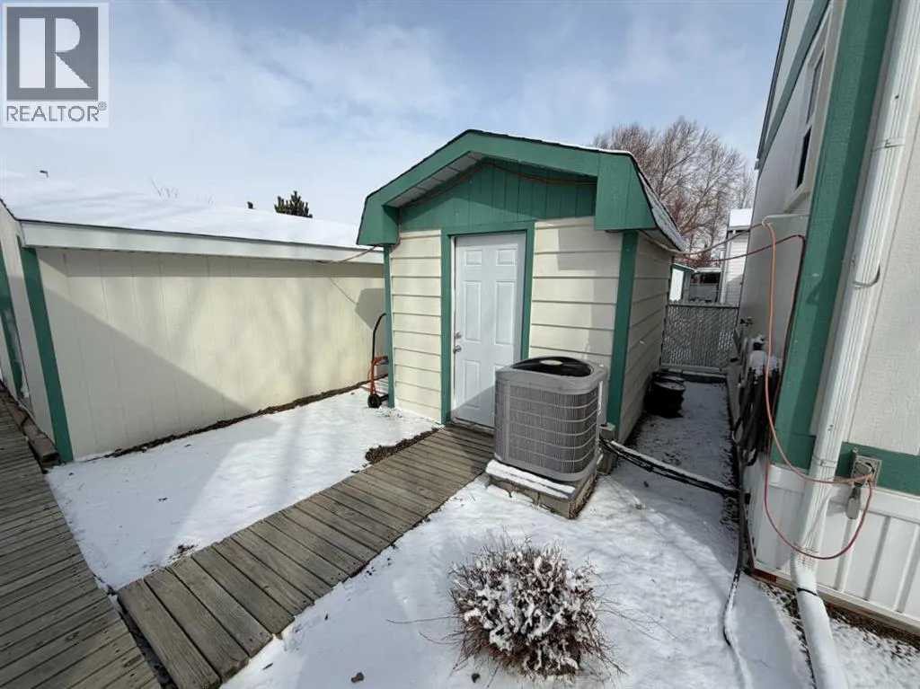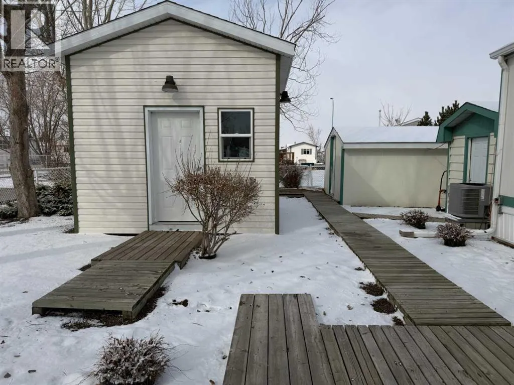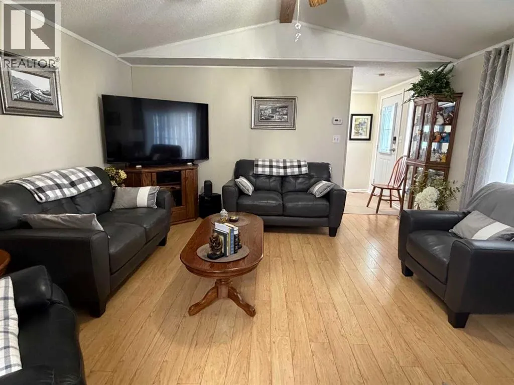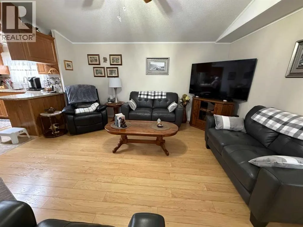 The original owner of this 3 bedroom home has maintained and cared for it over time. Enjoy the rain showers to sunsets and morning coffees on the covered deck or enclosed addition. On one end of this immaculate place you'll find a nice sized primary bedroom featuring a 3pc ensuite with walk in shower and large closet space. The opposite end has 2 bedrooms and a 4pc bathroom. Enjoy the open flow of the living, dining and kitchen spaces where you'll have plenty of cabinetry for all your needs and a kitchen island with electricity for extra countertop. Other features include A/C, updated plumbing, tall toilets, hot water on demand and vaulted ceilings. Outside there are 3 storage sheds with one having electricity to it for more of a workshop. Situated next to a green strip gives you that extra privacy. Fees of $510/month include your garbage, water and sewer costs. (id:27476)