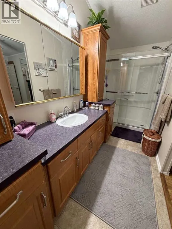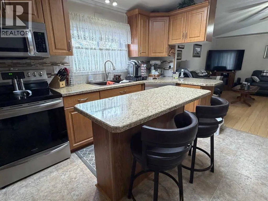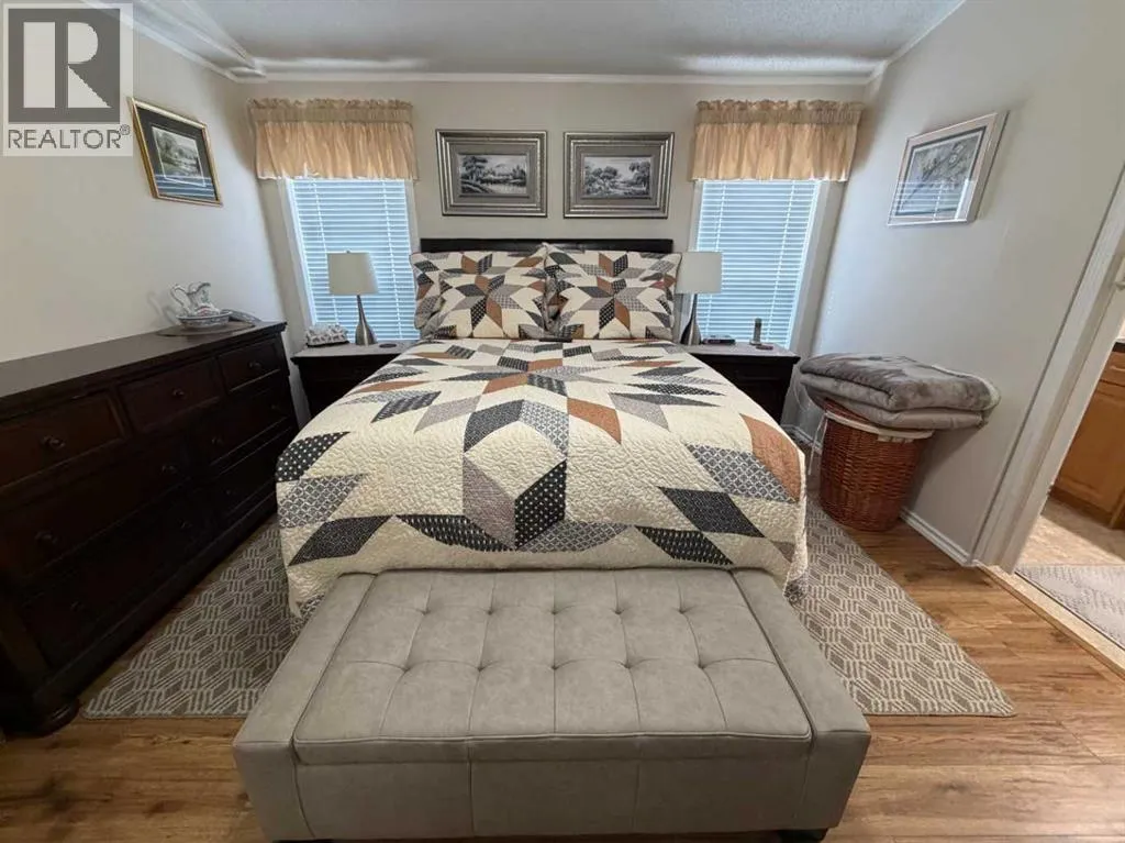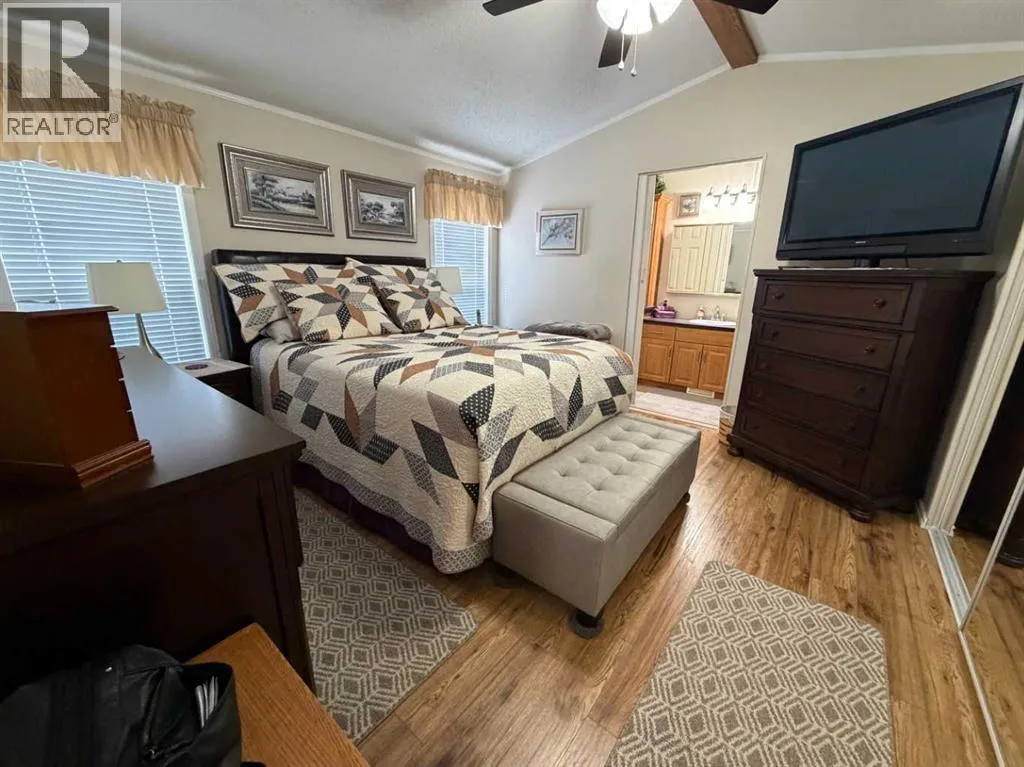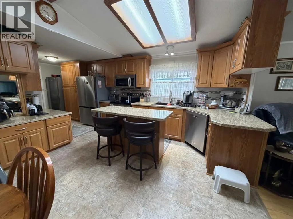 The original owner of this 3 bedroom home has maintained and cared for it over time. Enjoy the rain showers to sunsets and morning coffees on the covered deck or enclosed addition. On one end of this immaculate place you'll find a nice sized primary bedroom featuring a 3pc ensuite with walk in shower and large closet space. The opposite end has 2 bedrooms and a 4pc bathroom. Enjoy the open flow of the living, dining and kitchen spaces where you'll have plenty of cabinetry for all your needs and a kitchen island with electricity for extra countertop. Other features include A/C, updated plumbing, tall toilets, hot water on demand and vaulted ceilings. Outside there are 3 storage sheds with one having electricity to it for more of a workshop. Situated next to a green strip gives you that extra privacy. Fees of $510/month include your garbage, water and sewer costs. (id:27476)