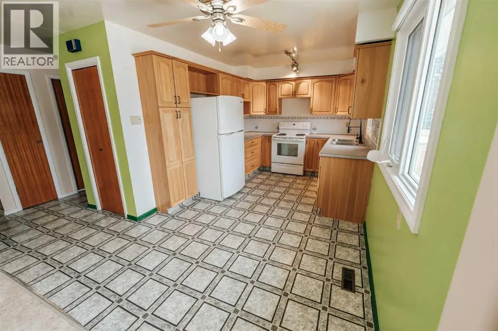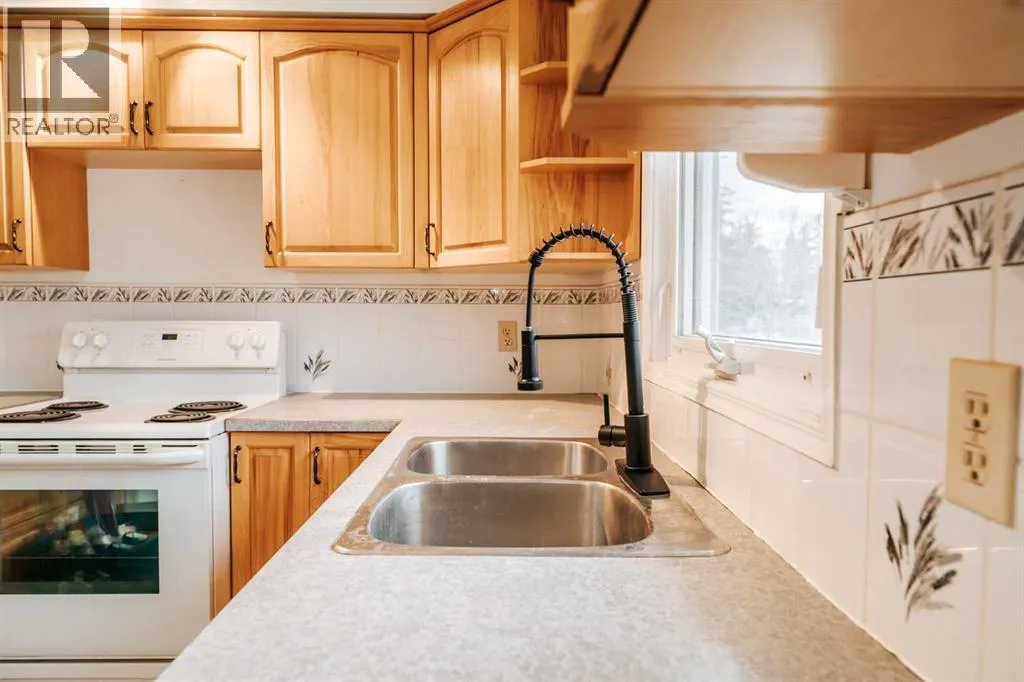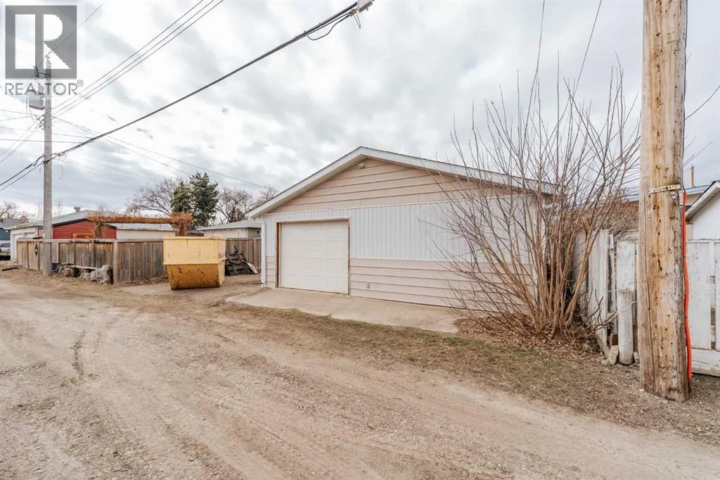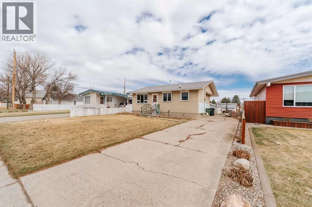This 2 + 2 bedroom bungalow sits on an impressive 7000 sq. ft. lot, with spacious back and front yard that offers plenty of room for outdoor enjoyment, parking and the double heated garage. The main level features lots of natural light and comfortable living and dining areas with roll shutters on the front and maple tree kitchen cabinet. The basement features a functional layout and adds additional living space, along with good storage options. Another stand-out feature is the large 26 x 26 double detached heated garage, equipped with a high - quality heater ideal for projects or extra storage. The house has a concrete side driveway and additional parking space off the alley. Conveniently located close to community facilities, schools and across from Coaldale Mennonite Brethren Church. Shingles were replaced approximately 5 or 6 years ago. Installed underground sprinklers approximately 3 years ago and an apple tree. There is a single vehicle door at the back but we believe it is framed for a possible wider door. We believe hot water tank was replaced in 2022. (id:27476)