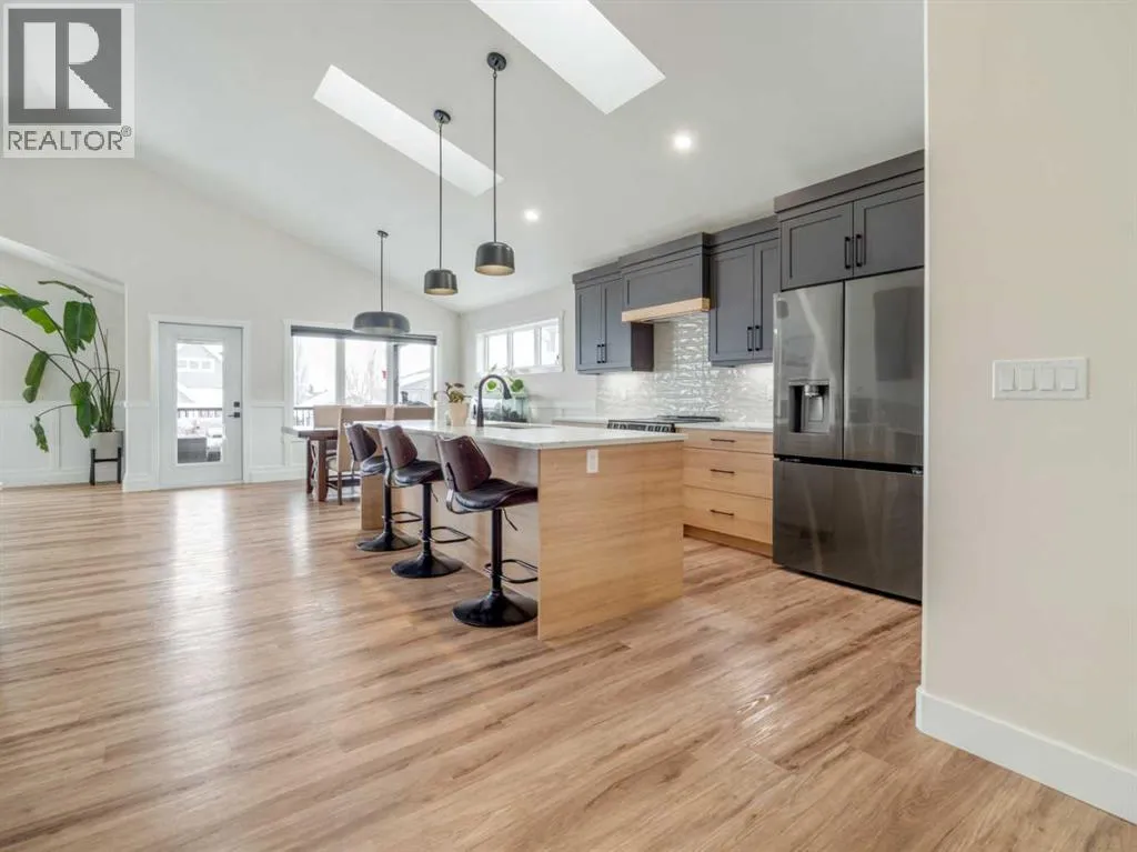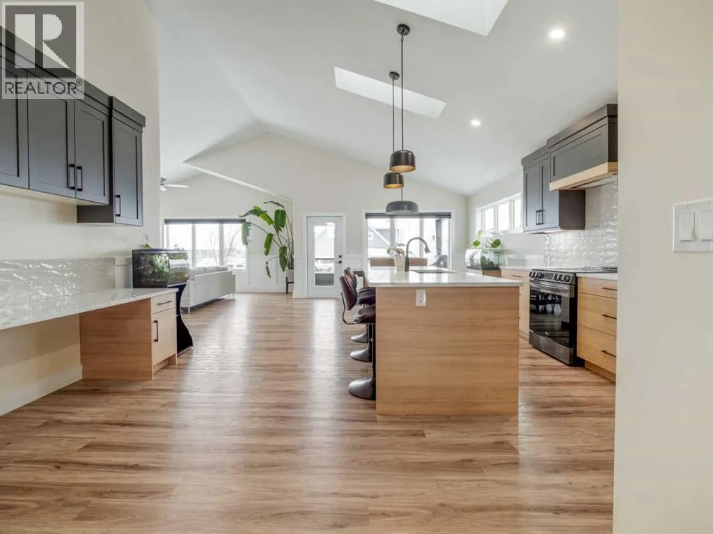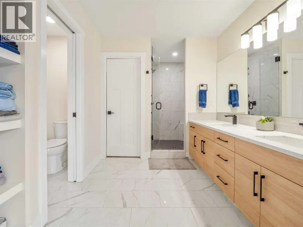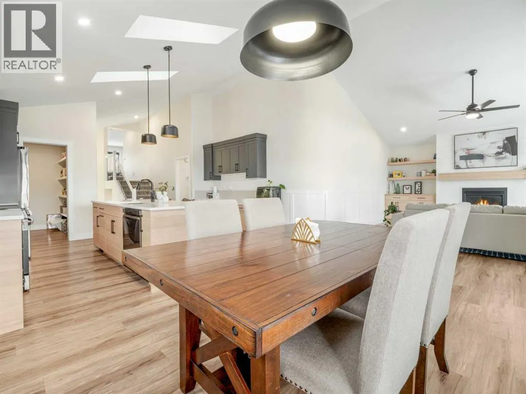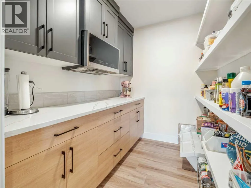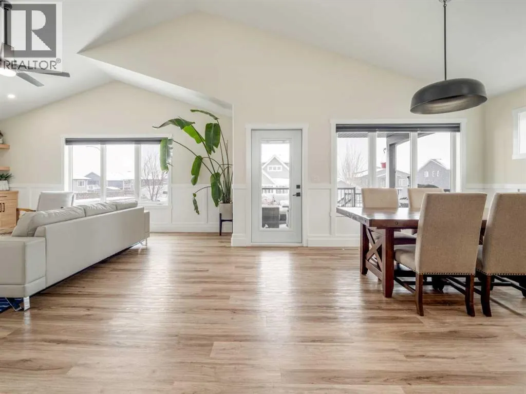 Incredible 2 year old large modified bi-level home in Cottonwood Estates originally built by Grizzly Ridge Developments! This 5 bed, 3.5 bath home has hardiplank exterior siding with stone accents, and a MASSIVE concrete front driveway that fits 6 vehicles! Heated garage is also a 26x29 and easily fits 2 more vehicles. Large welcoming entry. A half staircase to main floor showcases a large vaulted ceiling and vinyl plank flooring. Kitchen has upper grey upper cabinets, and lower lighter wood pattern. Kitchen has quartz counters, stainless steel appliances, and butler pantry with more cabinets and counterspace. Dining room is a good size and has large window and door to covered deck out back with gas line and water tap. Living room has custom built-in shelving and cabinets with gas fireplace and mantle centered on a feature wall with shiplap design. Main floor also has primary bedroom with ensuite that features double sinks, large tiled walk-in shower, separate toilet room, and walk-in closet with laundry machines. There is also another 2 piece bathroom on the main. Upper level above garage features a large bonus room with big hall closet, 2 big bedrooms, and a full bathroom with tub/shower combo. Walk-Out Basement with 9 foot ceilings is fully developed with wet bar featuring space for a full size fridge, family room with feature floor to ceiling stone wall surrounding the gas fireplace, and closet and door to covered patio out back. There are also 2 more large bedrooms each with their own walk-in closet, a full bathroom with tub/shower combo, and a laundry room(currently being used as a small office) with counter and cabinets. Yard is fenced and landscaped with a nice shed. Home has conveniences of central a/c and tankless hot water! This home is turn-key ready to move in and enjoy! (id:27476)
