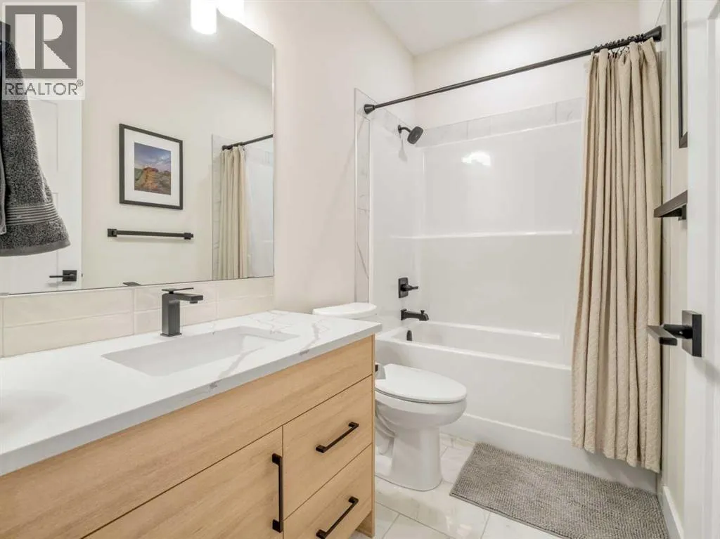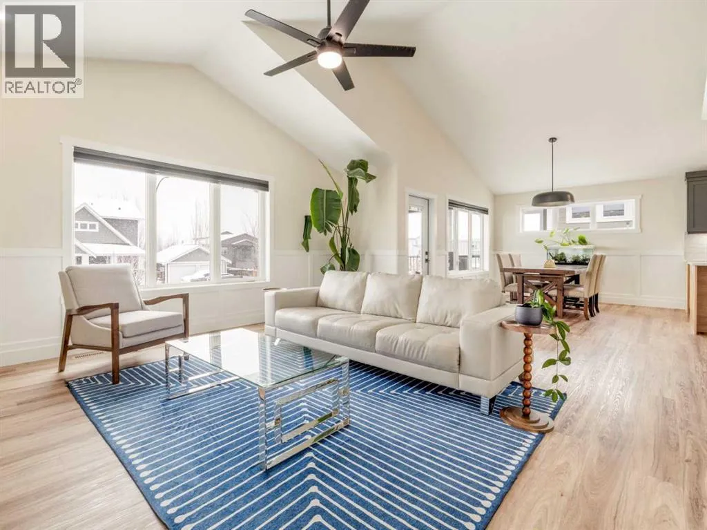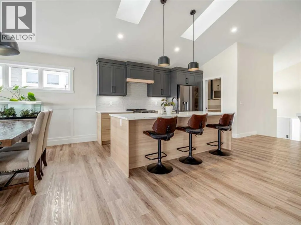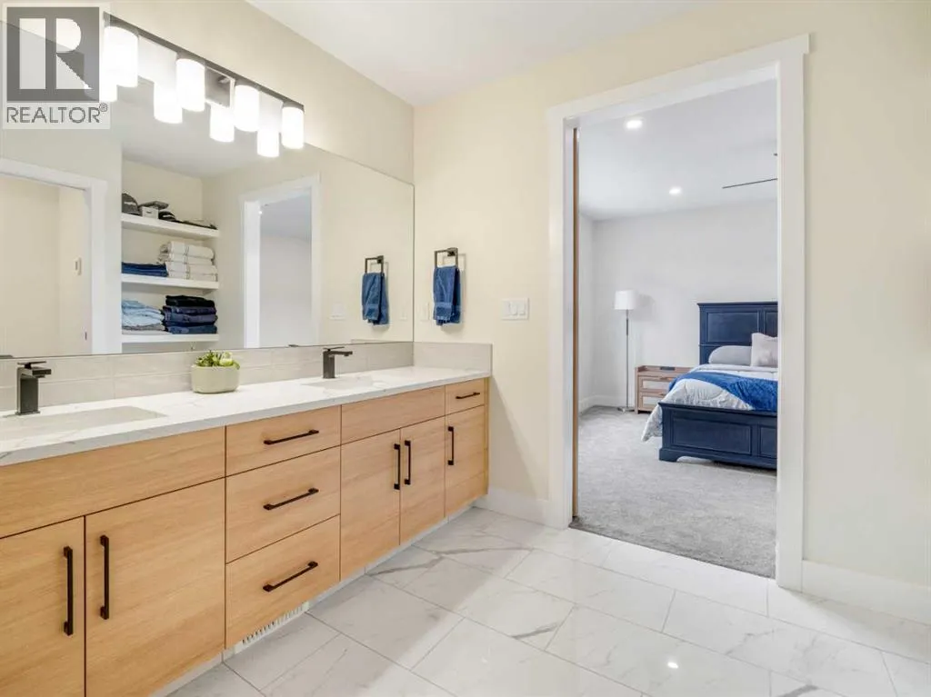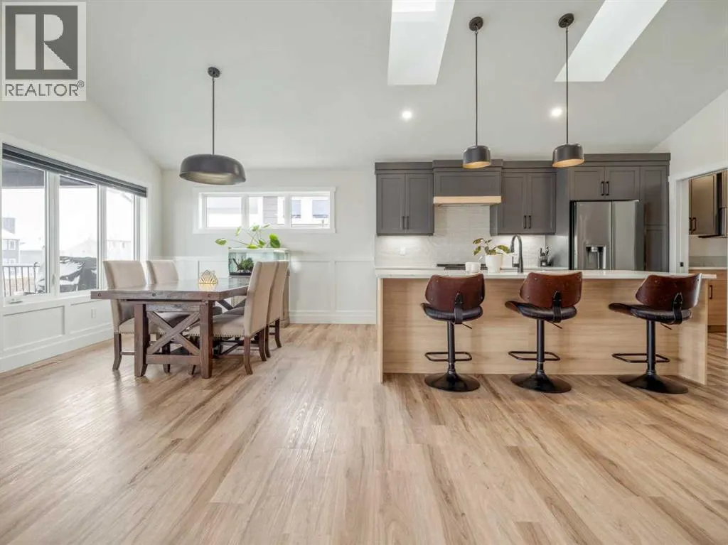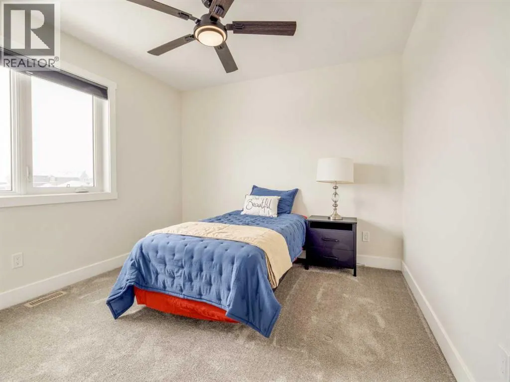 Incredible 2 year old large modified bi-level home in Cottonwood Estates originally built by Grizzly Ridge Developments! This 5 bed, 3.5 bath home has hardiplank exterior siding with stone accents, and a MASSIVE concrete front driveway that fits 6 vehicles! Heated garage is also a 26x29 and easily fits 2 more vehicles. Large welcoming entry. A half staircase to main floor showcases a large vaulted ceiling and vinyl plank flooring. Kitchen has upper grey upper cabinets, and lower lighter wood pattern. Kitchen has quartz counters, stainless steel appliances, and butler pantry with more cabinets and counterspace. Dining room is a good size and has large window and door to covered deck out back with gas line and water tap. Living room has custom built-in shelving and cabinets with gas fireplace and mantle centered on a feature wall with shiplap design. Main floor also has primary bedroom with ensuite that features double sinks, large tiled walk-in shower, separate toilet room, and walk-in closet with laundry machines. There is also another 2 piece bathroom on the main. Upper level above garage features a large bonus room with big hall closet, 2 big bedrooms, and a full bathroom with tub/shower combo. Walk-Out Basement with 9 foot ceilings is fully developed with wet bar featuring space for a full size fridge, family room with feature floor to ceiling stone wall surrounding the gas fireplace, and closet and door to covered patio out back. There are also 2 more large bedrooms each with their own walk-in closet, a full bathroom with tub/shower combo, and a laundry room(currently being used as a small office) with counter and cabinets. Yard is fenced and landscaped with a nice shed. Home has conveniences of central a/c and tankless hot water! This home is turn-key ready to move in and enjoy! (id:27476)