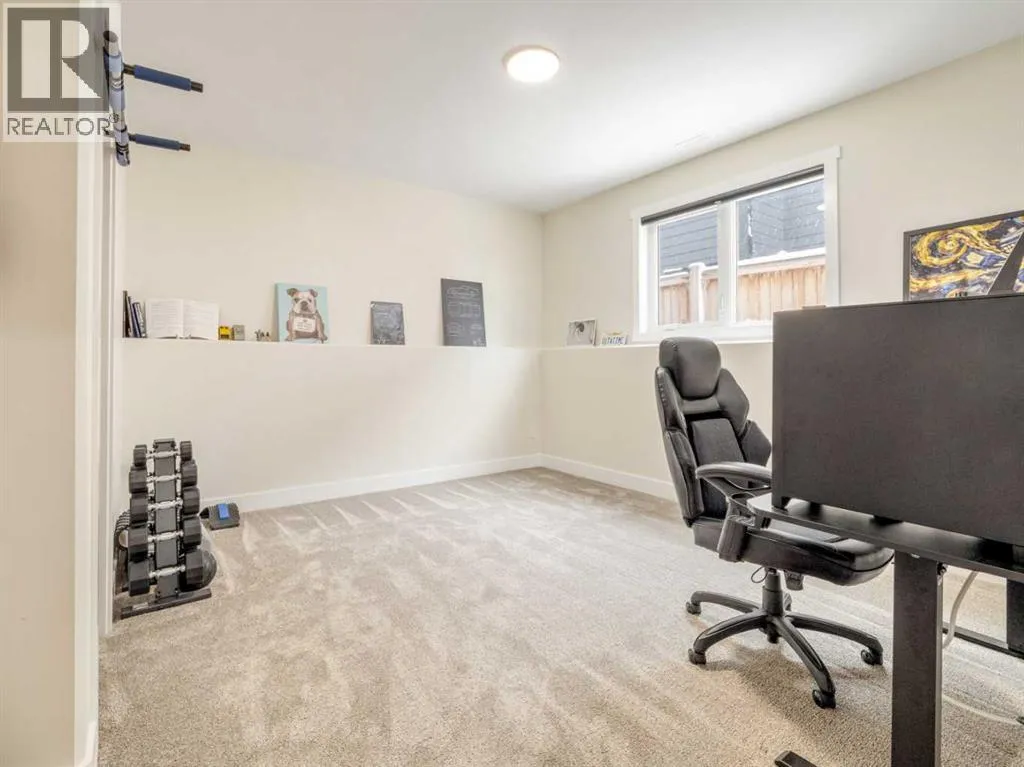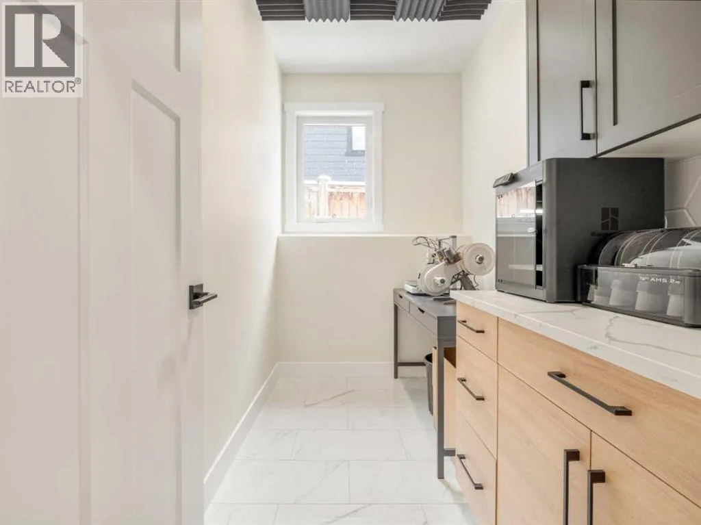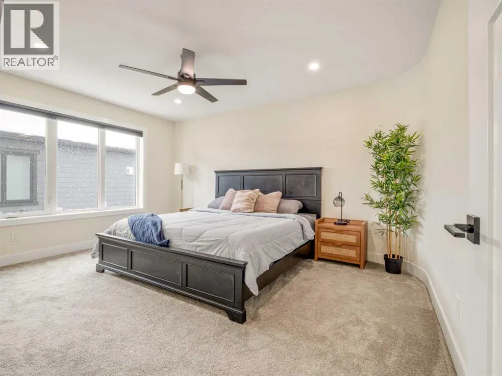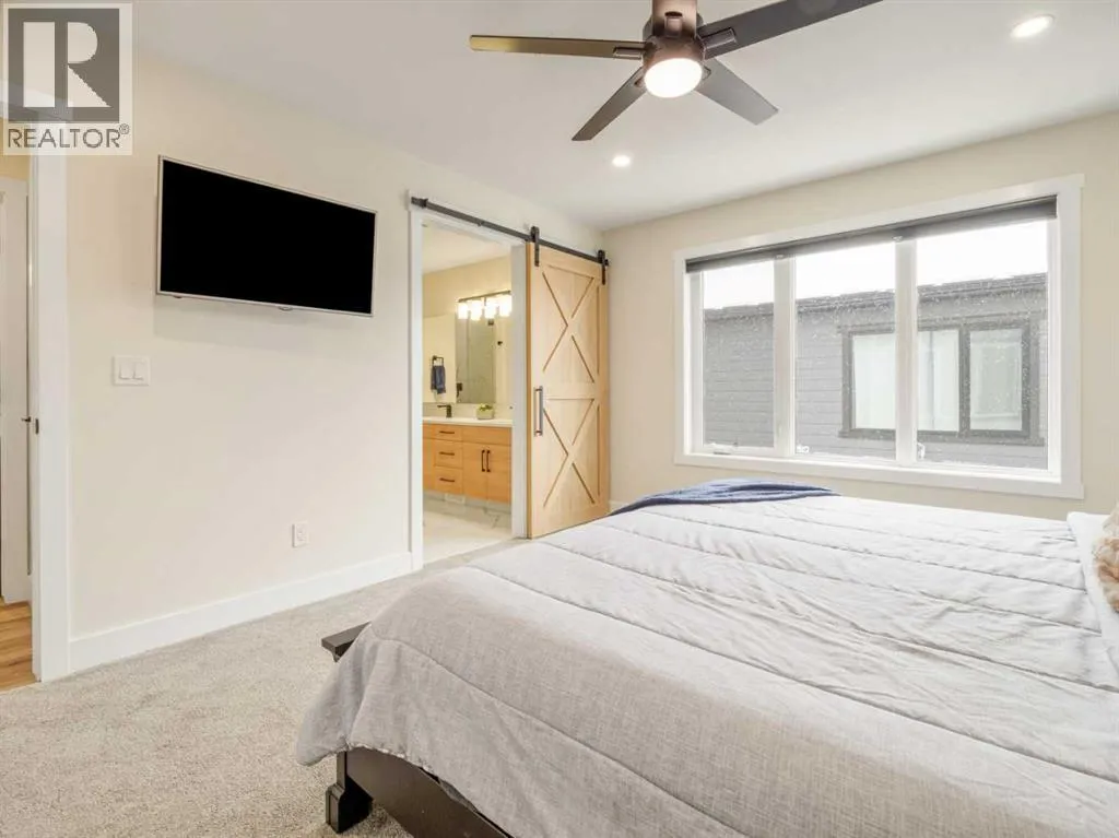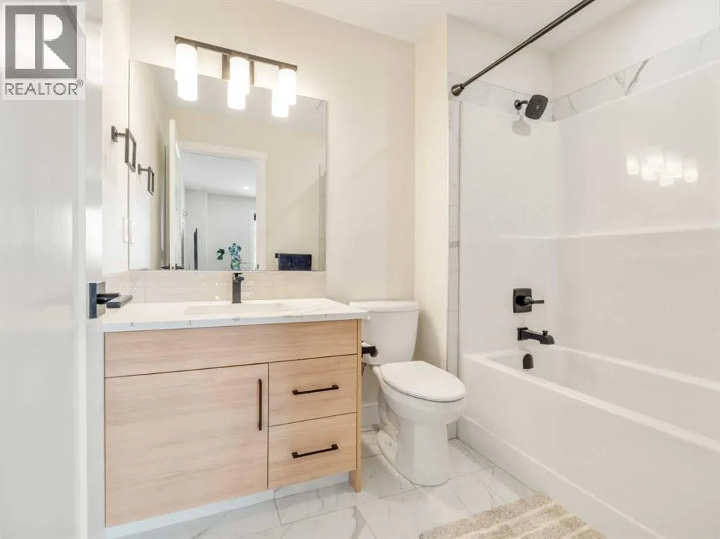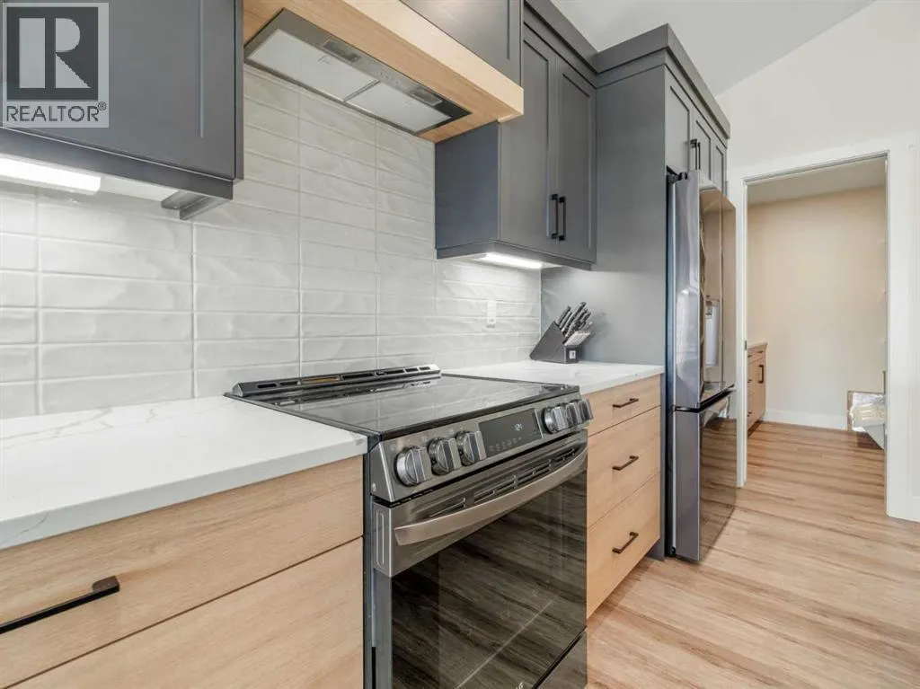 Incredible 2 year old large modified bi-level home in Cottonwood Estates originally built by Grizzly Ridge Developments! This 5 bed, 3.5 bath home has hardiplank exterior siding with stone accents, and a MASSIVE concrete front driveway that fits 6 vehicles! Heated garage is also a 26x29 and easily fits 2 more vehicles. Large welcoming entry. A half staircase to main floor showcases a large vaulted ceiling and vinyl plank flooring. Kitchen has upper grey upper cabinets, and lower lighter wood pattern. Kitchen has quartz counters, stainless steel appliances, and butler pantry with more cabinets and counterspace. Dining room is a good size and has large window and door to covered deck out back with gas line and water tap. Living room has custom built-in shelving and cabinets with gas fireplace and mantle centered on a feature wall with shiplap design. Main floor also has primary bedroom with ensuite that features double sinks, large tiled walk-in shower, separate toilet room, and walk-in closet with laundry machines. There is also another 2 piece bathroom on the main. Upper level above garage features a large bonus room with big hall closet, 2 big bedrooms, and a full bathroom with tub/shower combo. Walk-Out Basement with 9 foot ceilings is fully developed with wet bar featuring space for a full size fridge, family room with feature floor to ceiling stone wall surrounding the gas fireplace, and closet and door to covered patio out back. There are also 2 more large bedrooms each with their own walk-in closet, a full bathroom with tub/shower combo, and a laundry room(currently being used as a small office) with counter and cabinets. Yard is fenced and landscaped with a nice shed. Home has conveniences of central a/c and tankless hot water! This home is turn-key ready to move in and enjoy! (id:27476)