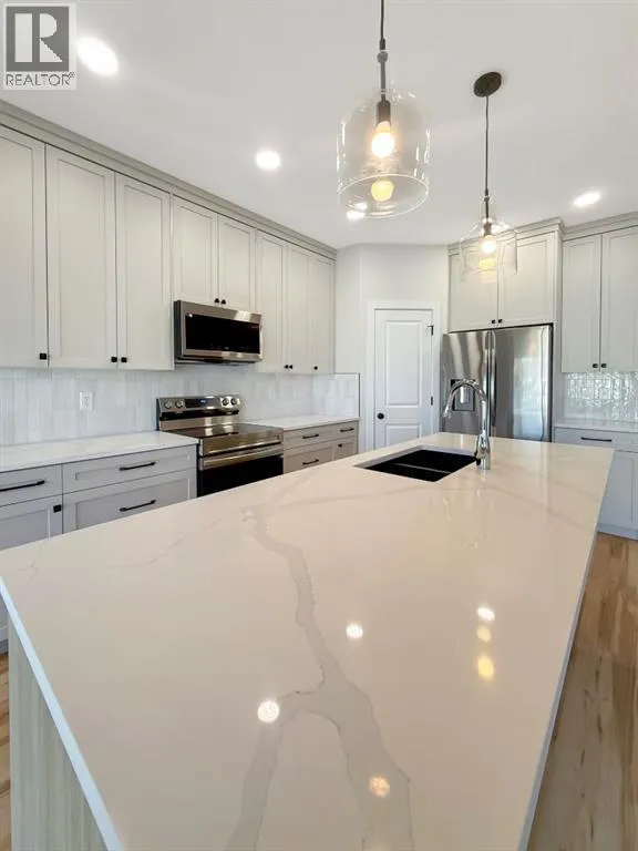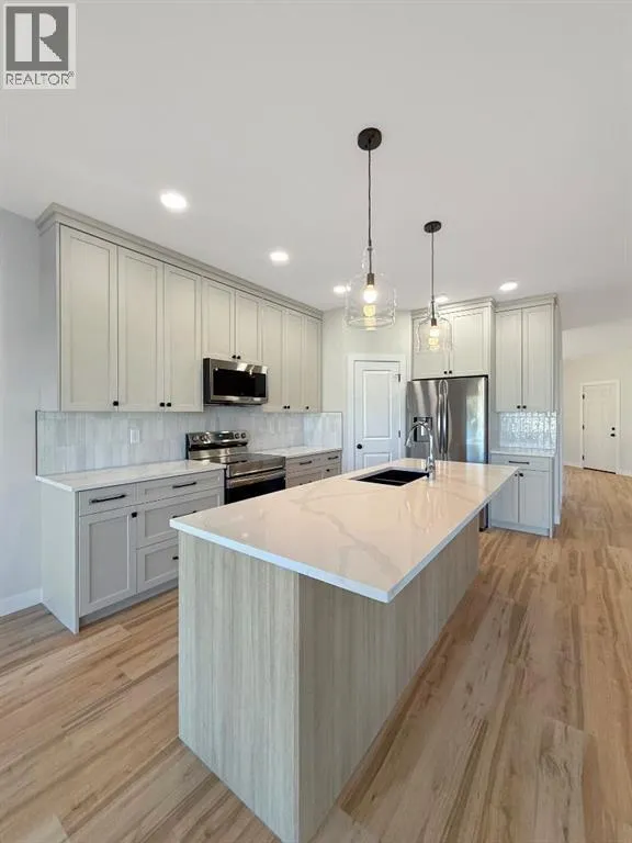 Welcome to 233 Greenwood Road! This exceptional brand new raised bungalow in the welcoming community of Coalhurst â where quiet small-town living meets unbeatable convenience just 10 minutes from downtown. Boasting 5 spacious bedrooms and 3 full bathrooms, this thoughtfully designed home offers incredible space for growing families or those who love to entertain. The bright, open-concept main floor is filled with natural light from large windows and features stylish, modern finishes throughout. The contemporary kitchen offers abundant cabinetry, generous counter space, and a functional layout perfect for hosting gatherings or everyday living. The primary suite is a private retreat complete with a full ensuite and ample closet space. Two additional bedrooms and a full bathroom complete the main level. Downstairs, the fully developed lower level expands your living space with a large family room, two additional bedrooms, and another full bathroom â providing flexibility for guests, a home office, or multi-generational living. Car enthusiasts and hobbyists will appreciate the massive double attached garage, offering plenty of room for vehicles, storage, and workspace. Located in a quiet, family-friendly neighbourhood, this move-in ready home delivers space, comfort, and quality craftsmanship in one of the areaâs most desirable communities. Donât miss your chance to own this stunning new 5-bedroom home in beautiful Coalhurst! (id:27476)