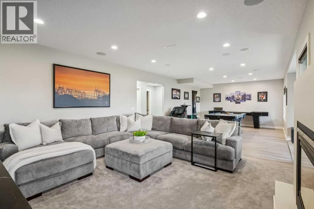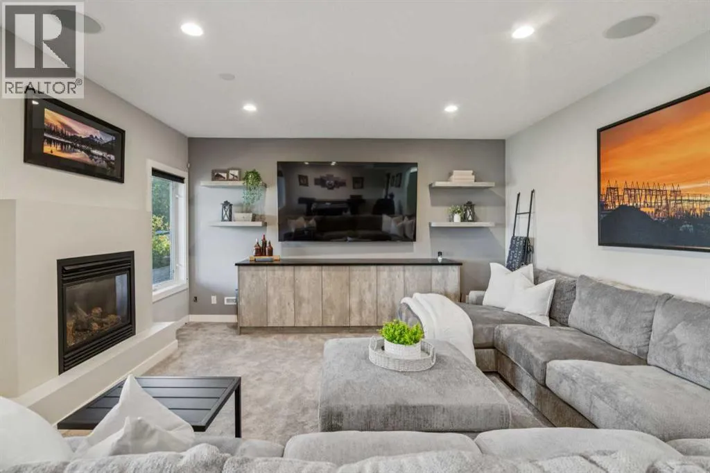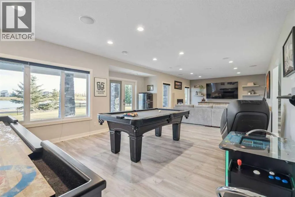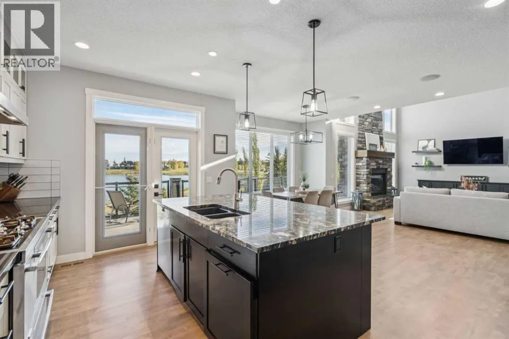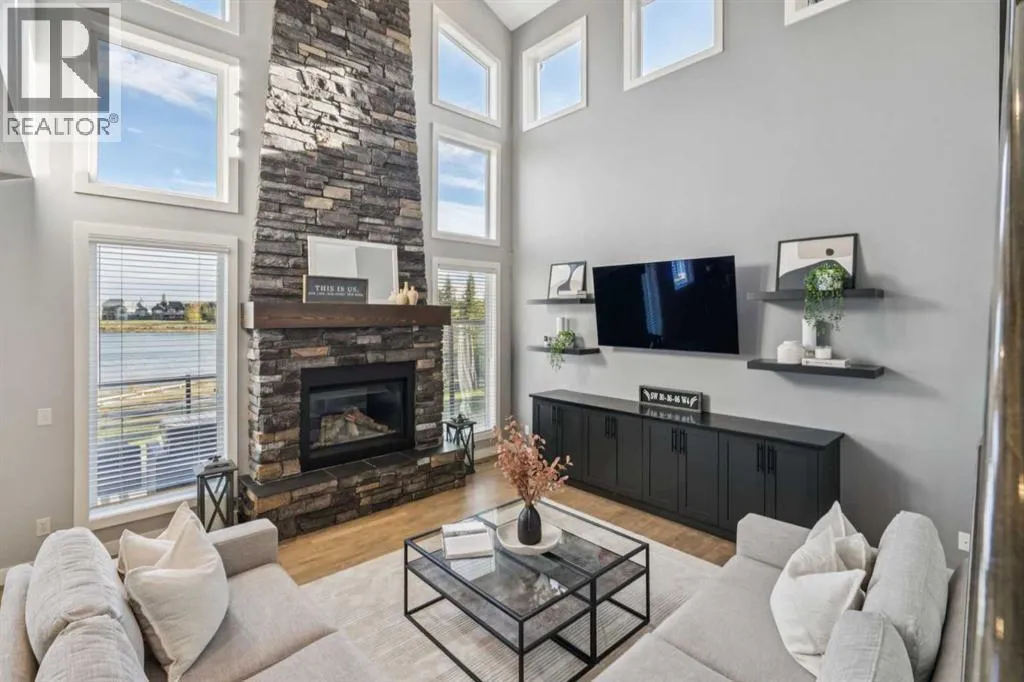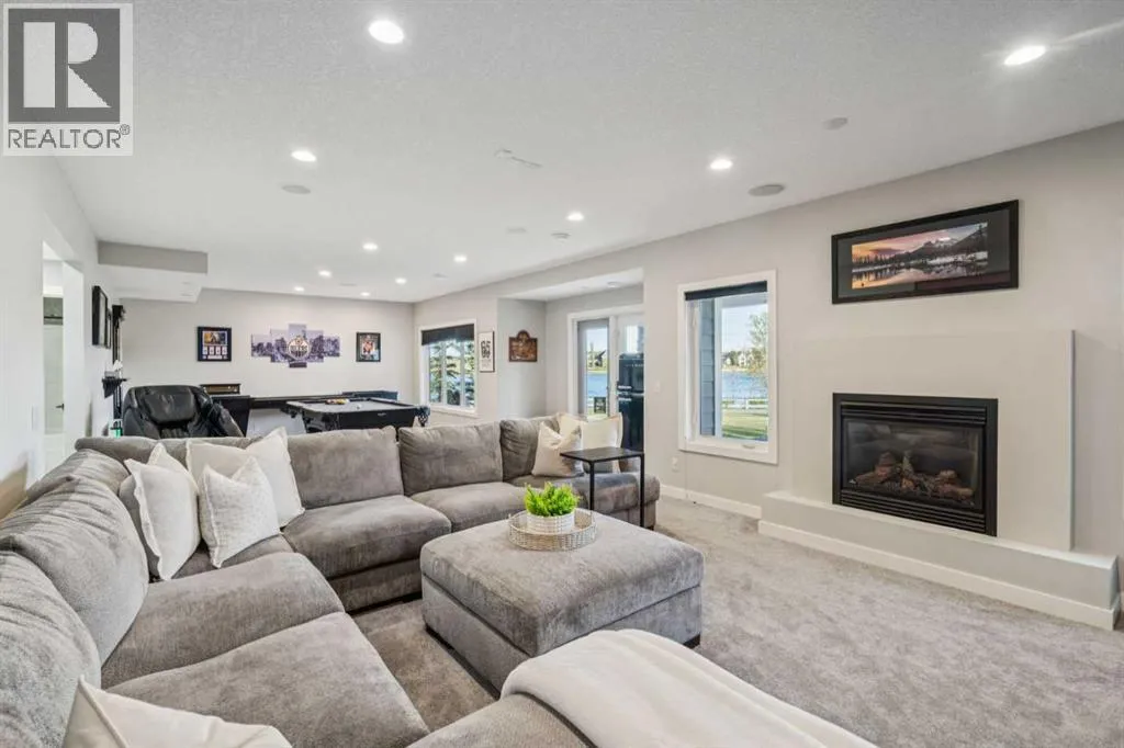 Welcome to this fully renovated LAKEFRONT GEM in the prestigious community of Monterra! Perfectly situated on a spacious PIE LOT, this property offers luxurious upgrades, stunning craftsmanship, and serene waterfront living at its finest.The exterior has been meticulously updated from top to bottom â featuring RE-LANDSCAPED FRONT and BACK YARDS with an OPEN IRRIGATION SYSTEM, PROFESSIONALLY REPAINTED COMPOSITE SIDING, refreshed trims and cedar accents, and a NEW RUBBER SLATE SHINGLE ROOF complete with UPDATED FLASHING and EAVESTROUGHS. The BACKYARD SHED has been refinished to match, while LED LIGHTING now highlights the homeâs impressive curb appeal day and night.Step inside to a grand foyer with OPEN-TO-BELOW CEILINGS and elegant GREGIO NATURAL TILE FLOORS that set the tone for the rest of the home. The dining room features beautiful WAINSCOTING and NEW LIGHTING, while the gourmet kitchen shines with QUARTZ COUNTERTOPS, CUSTOM CABINETRY, new shelving, a BUTLERâS PANTRY with COFFEE BAR, and PREMIUM APPLIANCES â including a Frigidaire PROFESSIONAL SERIES FRIDGE, Bosch MICROWAVE SPEED OVEN, Frigidaire GAS STOVE, and HIGH-END WINE/BEER FRIDGE. The inviting living room centres around a FLOOR-TO-CEILING STONE GAS FIREPLACE and opens to an expansive EAST-FACING DECK with GLASS RAILING and BREATHTAKING LAKE VIEWS.Upstairs, NEW CARPETS (2023) with 10 lb UNDERLAY lead to four spacious bedrooms, each enhanced with CUSTOM CALIFORNIA CLOSETS. The primary bedroom impresses with VAULTED CEILINGS, a BUILT-IN DESK, FIREPLACE, and a spa-inspired ENSUITE showcasing QUARTZ COUNTERS, DOUBLE SINKS, a JETTED TUB, and a TILED SHOWER. The RENOVATED GUEST BATH offers QUARTZ COUNTERS, DOUBLE SINKS, and a BUILT-IN LINEN CLOSET, while the laundry room adds extra cabinetry and counters for everyday convenience.The FULLY FINISHED WALKOUT BASEMENT provides even more space to enjoy â featuring a 5th bedroom with CALIFORNIA CLOSET, UPDATED BATHROOM, GAS FIREPLACE, and NEW FLOORING throughou t. The REC ROOM comes complete with a POOL TABLE and RACK (new 2024) and a CUSTOM SHUFFLEBOARD, making it the perfect spot for entertaining family and friends.Additional highlights include DUAL FURNACES, DUAL HUMIDIFIERS, BUILT-IN SPEAKERS, and a HEATED TRIPLE GARAGE with EPOXY FLOORS, NEW windows, doors, rails, and hardware.This move-in-ready lakefront retreat is a rare find that perfectly blends luxury, comfort, and style â a true Monterra masterpiece! (id:27476)