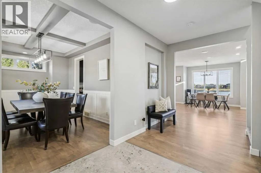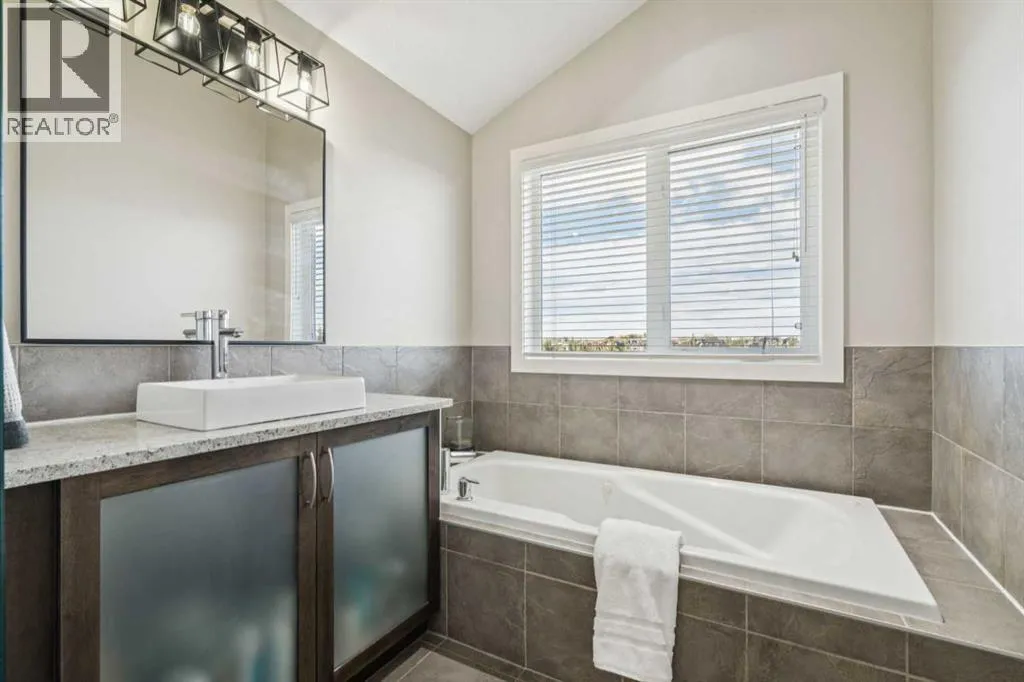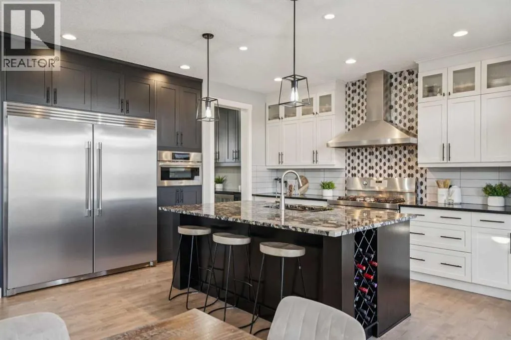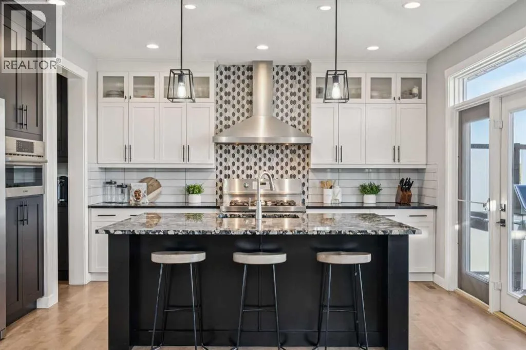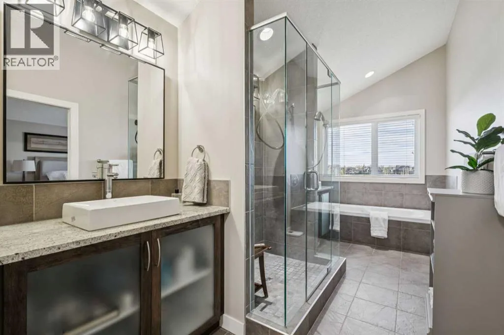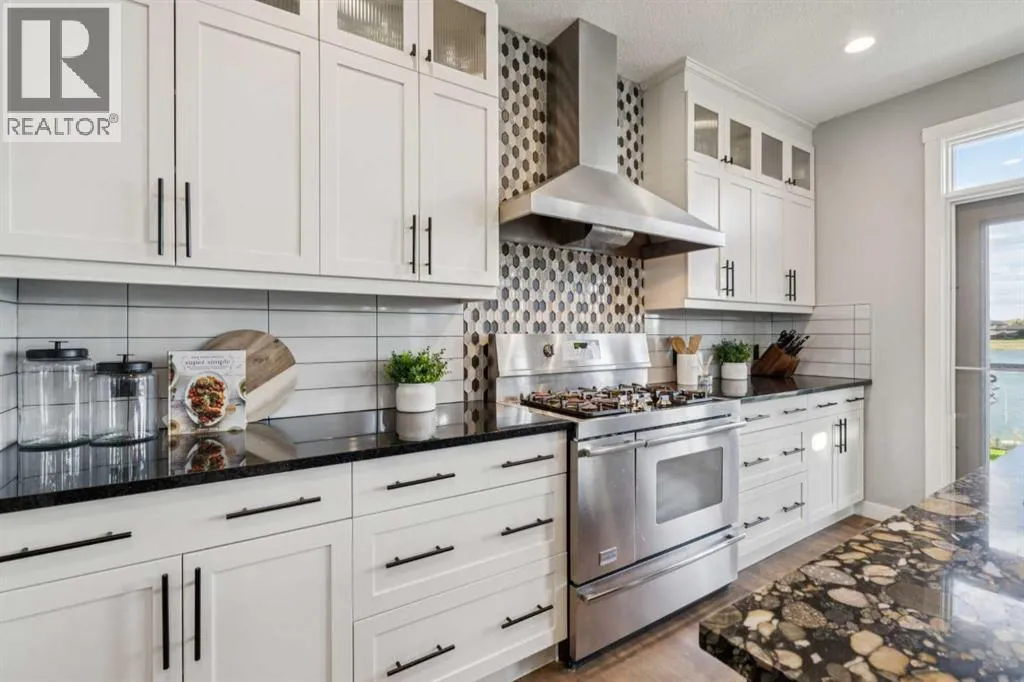 Welcome to this fully renovated LAKEFRONT GEM in the prestigious community of Monterra! Perfectly situated on a spacious PIE LOT, this property offers luxurious upgrades, stunning craftsmanship, and serene waterfront living at its finest.The exterior has been meticulously updated from top to bottom â featuring RE-LANDSCAPED FRONT and BACK YARDS with an OPEN IRRIGATION SYSTEM, PROFESSIONALLY REPAINTED COMPOSITE SIDING, refreshed trims and cedar accents, and a NEW RUBBER SLATE SHINGLE ROOF complete with UPDATED FLASHING and EAVESTROUGHS. The BACKYARD SHED has been refinished to match, while LED LIGHTING now highlights the homeâs impressive curb appeal day and night.Step inside to a grand foyer with OPEN-TO-BELOW CEILINGS and elegant GREGIO NATURAL TILE FLOORS that set the tone for the rest of the home. The dining room features beautiful WAINSCOTING and NEW LIGHTING, while the gourmet kitchen shines with QUARTZ COUNTERTOPS, CUSTOM CABINETRY, new shelving, a BUTLERâS PANTRY with COFFEE BAR, and PREMIUM APPLIANCES â including a Frigidaire PROFESSIONAL SERIES FRIDGE, Bosch MICROWAVE SPEED OVEN, Frigidaire GAS STOVE, and HIGH-END WINE/BEER FRIDGE. The inviting living room centres around a FLOOR-TO-CEILING STONE GAS FIREPLACE and opens to an expansive EAST-FACING DECK with GLASS RAILING and BREATHTAKING LAKE VIEWS.Upstairs, NEW CARPETS (2023) with 10 lb UNDERLAY lead to four spacious bedrooms, each enhanced with CUSTOM CALIFORNIA CLOSETS. The primary bedroom impresses with VAULTED CEILINGS, a BUILT-IN DESK, FIREPLACE, and a spa-inspired ENSUITE showcasing QUARTZ COUNTERS, DOUBLE SINKS, a JETTED TUB, and a TILED SHOWER. The RENOVATED GUEST BATH offers QUARTZ COUNTERS, DOUBLE SINKS, and a BUILT-IN LINEN CLOSET, while the laundry room adds extra cabinetry and counters for everyday convenience.The FULLY FINISHED WALKOUT BASEMENT provides even more space to enjoy â featuring a 5th bedroom with CALIFORNIA CLOSET, UPDATED BATHROOM, GAS FIREPLACE, and NEW FLOORING throughou t. The REC ROOM comes complete with a POOL TABLE and RACK (new 2024) and a CUSTOM SHUFFLEBOARD, making it the perfect spot for entertaining family and friends.Additional highlights include DUAL FURNACES, DUAL HUMIDIFIERS, BUILT-IN SPEAKERS, and a HEATED TRIPLE GARAGE with EPOXY FLOORS, NEW windows, doors, rails, and hardware.This move-in-ready lakefront retreat is a rare find that perfectly blends luxury, comfort, and style â a true Monterra masterpiece! (id:27476)