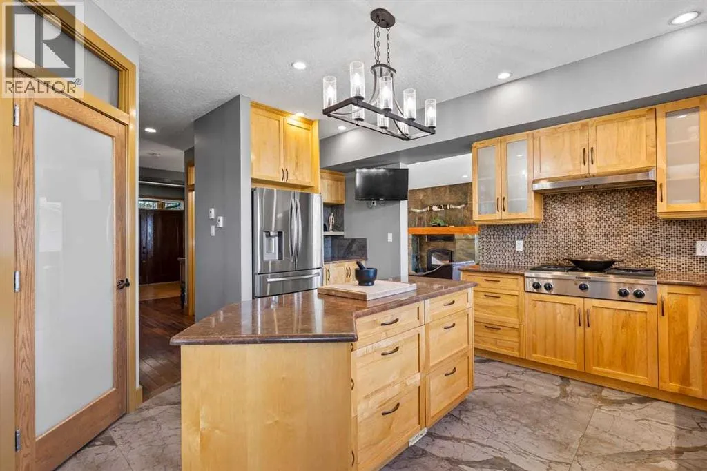 Experience refined luxury and versatility in this immaculately maintained, spotless, and exceptionally designed detached home, featuring a triple oversized attached garage and one bedroom walk-out basement. Designed with sophistication and comfort in mind, this home is the perfect blend of timeless elegance and modern convenience â ideal for multigenerational living.Set on a beautifully landscaped and fully fenced lot, this home captures attention with its architectural excellence and thoughtful layout across three meticulously finished levels.Step through the grand front entrance into a sun-filled open-concept main floor, where gleaming floors, high ceilings, expansive windows create an atmosphere of openness and light.At the heart of the home lies a chef-inspired gourmet kitchen, featuring high-end appliances, a sleek gas cooktop, and abundant cabinetry that combines function with flair. Complementing this is a large pantry and a kitchen island, ideal for preparing elaborate meals while spending time with family and friends.A custom-designed mudroom seamlessly connects the home to the garage, providing exceptional organization with built-in storage â a true luxury for active family living.Upstairs, discover a stunning primary bedroom, complete with its own private ensuite with a steam shower room and walk-in closet, ensuring unparalleled comfort and privacy. On this level you will also find the other 2 bedrooms and a 4 piece bathroom. A bonus room offers flexible space for a media lounge, home office, or playroom, while the convenient upper-level laundry adds ease to everyday routines.The professionally developed basement features a private entrance, offering a spacious and bright bedroom (with its own full ensuite), a bright open-concept family/game area, and a gym/flex area with beautiful views of the lake. The landscaped backyard features a beautiful stone patio and a gazebo, perfect for summer barbecues, evening gatherings, or simply relaxing in a peace ful outdoor setting. This rare offering combines space, luxury, and versatility in one exceptional property, perfect for anyone seeking an elevated lifestyle in a serene lakeside community. Situated conveniently close to Cochrane (5 minutes away) for easy access to shopping and schools, while still providing a relaxed retreat to unwind after a busy day, this location is one of the most suitable in Rocky View County. (id:27476)