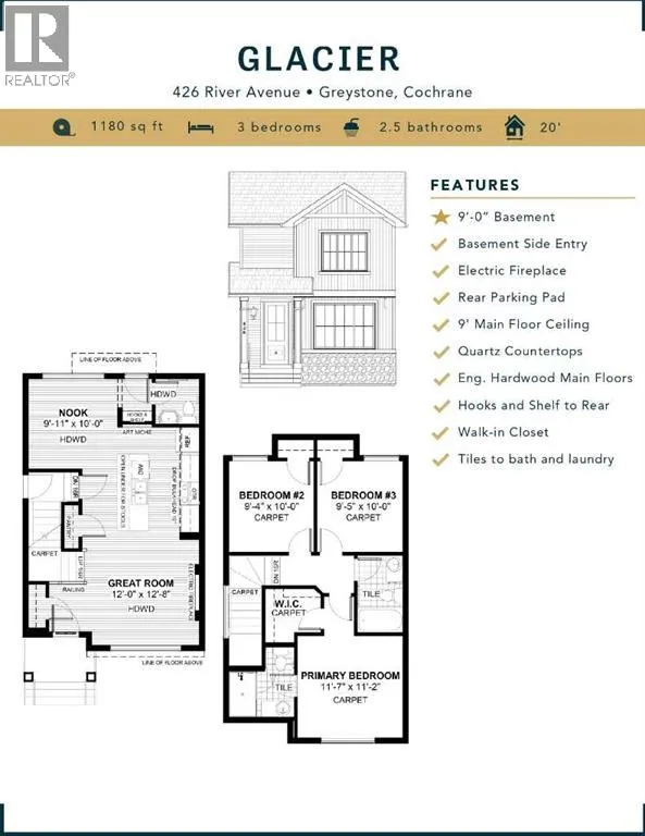 NEW PRICE! ** Open House at 500 River Avenue - October 1 -2, 6 - 9, 14- 16, 20 - 23, 27 - 30 from 2:15 PM - 7:45 PM & October 4-5, 11 - 13, 18 - 19, 25- 26 from 12:15 PM to 4:30 PM ** IMMEDIATE POSSESSION - CONFIRMED BY THE BUILDER. BRAND NEW HOME by Douglas Homes, Master Builder in central Greystone, short walking distance to parks, the Bow River, major shopping & interconnected pathway system. Featuring the Glacier with separate side entry on an R-MX zoned home site for POTENTIAL future lower level suite. NOTE: a secondary suite would be subject to approval and permitting by the city/municipality. This gorgeous 3 bedroom, 2 & 1/2 half bath home offers 1180 sq ft of living space. This home is located on a River Avenue which provides immediate access to the interconnective pathway system, perfect for those looking for a outdoor lifestyle. Loads of upgraded, DESIGNER features in this beautiful, open floor plan. The main floor greets you with a grand, glazed 8' front door & side lite, soaring 9' ceilings, oversized windows , & 8' 0" passage doors. Distinctive Engineered Hardwood floors flow through the Foyer, Hall, Great Room, Kitchen & Nook adding a feeling of warmth & style. The Kitchen is completed with an oversized entertainment island & breakfast bar, closet pantry, Quartz Countertops, 42" Cabinet Uppers accented by closed-in, painted bulkhead above, Bank of Pots & Pans Drawers, soft close doors & drawers throughout, new stainless appliance package including Fridge, Microwave/Hood Fan combo over the stove, smooth top electric Range, & built-in Dishwasher. The main floor is completed with an open Great Room & Nook finished with over height windows, full French Door rear entry & 1/2 bath. Great Room is complimented by a Napoleon "Entice" fireplace. Upstairs you'll find a good sized Primary Bedroom with 3 piece Ensuite including undermounted sink & drawer, Quartz vanity, oversized 5'0" x 3'0" shower with tile accented walls & ceramic tile flooring. There is also a nice sized, walk-in closet accessed from the bedroom. The 2nd floor is completed with two additional good sized bedrooms with roomy double door closets. The 2nd & 3rd bedrooms have easy access to the main the bath with Quartz countertop, undermounted sink with drawer & tile flooring. This is a very popular plan, great for young families, investors or the down sizing crowd. Spacious, Beautiful and Elegant! The perfect place for your perfect home with the Perfect Fit. Call today! Photos are from prior build & are reflective of fit, finish & included features. Note: Front elevation of home & interior photos are for illustration purposes only. Actual elevation style, interior colors/finishes, & upgrades may be different than shown & the Seller is under no obligation to provide them as such. (id:27476)