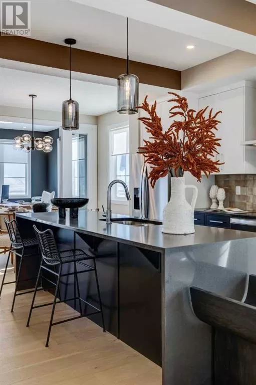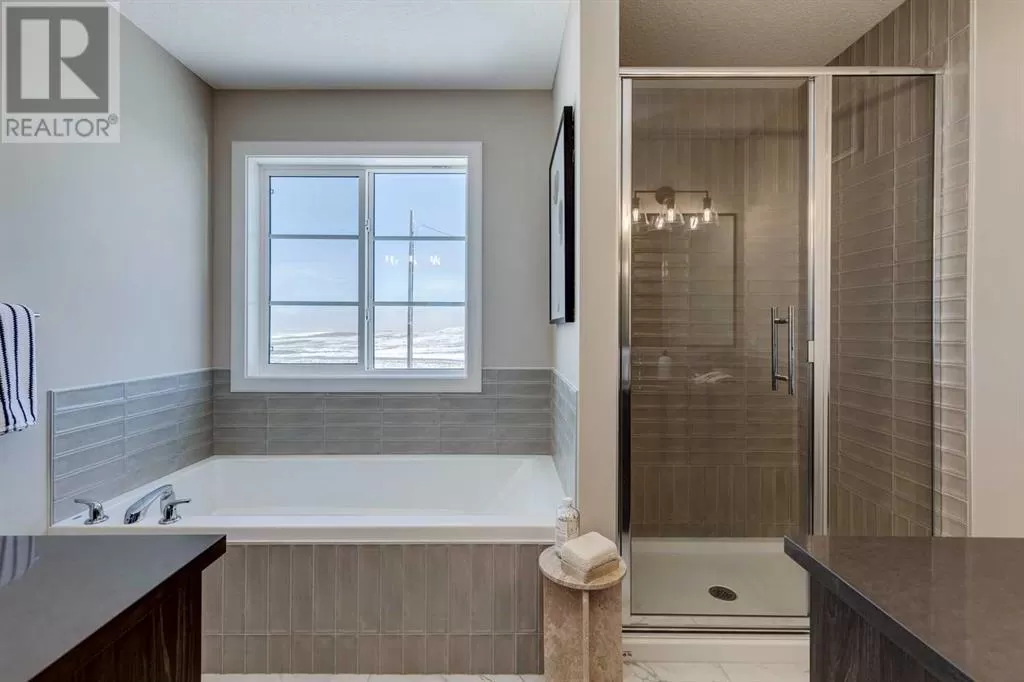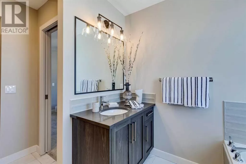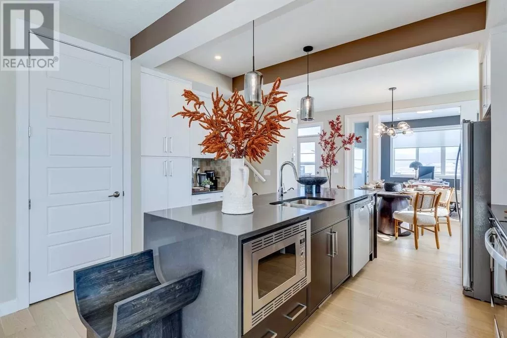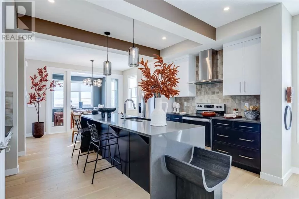 NEW PRICING! IMMEDIATE POSSESSION - CONFIRMED BY THE BUILDER. BRAND NEW HOME by Douglas Homes, Master Builder in central Greystone, short walking distance to parks, the Bow River, major shopping & interconnected pathway system. Featuring the Fernie 3 with main floor rear enclosed Flex Room & separate side entry on an R-MX zoned home site for POTENTIAL future lower level suite. NOTE: a secondary suite would be subject to approval and permitting by the city/municipality. This gorgeous 3 bedroom, 2 & 1/2 half bath home offers over 1510 sq ft of living space. This home is located on a River Avenue which provides immediate access to the interconnective pathway system, perfect for those looking for a outdoor lifestyle. Loads of Designer & upgraded features in this beautiful, open floor plan. The main floor greets you with 8' front door, soaring 9' ceilings, oversized windows, built-in niches & fireplace. Gleaming Hardwood floors flow through the kitchen, hall & nook adding a feeling of warmth & style. The two sided Kitchen is completed with Quartz Countertops, two tone Kitchen Cabinets, 42" uppers with decorative enclosed bulkhead, plenty of drawers including Pots & Pan drawers, twin accented beam ceiling detail, soft close doors & drawers, convenient tech space/desk with twin drawers & new stainless steel Kitchen appliance package. At the rear of the home you'll find an enclosed bright Flex Room with double 8'0" French Doors for the work from home crowd. Upstairs you'll find a generous Primary Bedroom with Ensuite - Quartz Counters with double vanities, 6'0" soaker tub with large window above & tiled skirting/trim, 5' shower with Designer tiled walls, private water closet all completed with ceramic tile flooring & large walk-in closet. The 2nd floor is completed by two good size additional bedrooms, main bath tub/shower combination with tiled walls, Quartz countertop, undermounted sink & ceramic tile flooring. You will love the convenience of 2nd Floor Laundry for sid e by side laundry completed with ceramic floor tile. This is a very popular plan, great for young families, investors or the down sizers. Spacious, Beautiful and Elegant! The perfect place for your perfect home. Call today! Photos are from prior build & are reflective of fit, finish & included features. Note: Front elevation of home & interior photos are for illustration purposes only. Actual elevation style, interior colors/finishes, & upgrades may be different than shown & the Seller is under no obligation to provide them as such.Directions: Directions: Come to the Show Home first located at 500 River Avenue. Showings only during Show Home hours & days. THIS HOME IS UNDER CONSTRUCTION (id:27476)