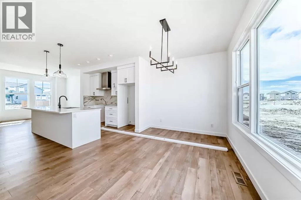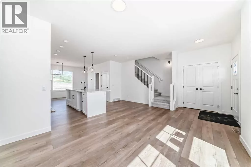 PRICE NOW INCLUDES 40K INCENTIVE AND LOT REBATE OF 5K !! ~Welcome to 430 Heartland Way in Cochrane, a bright and inviting home offering over 1,500 square feet of well-designed living space in the desirable community of Heartland. Built by Daytona Homes, this property combines comfort, flexibility, and value, perfect for first-time buyers, young families, or those looking to downsize without compromising on quality.As you step through the front door, you're welcomed into a charming foyer that sets the tone for the homeâs warm and open layout. To your left, a comfortable great room offers the perfect space to relax or entertain, with natural flow into the kitchen and rear dining nook. Whether you're cooking up a weeknight dinner or gathering with friends, the open-concept design keeps everyone connected. At the back of the main floor, a two-piece bathroom and convenient storage space add practical touches that make daily living easier.Upstairs, the thoughtful layout continues with a flex space at the top of the stairs, ideal for a cozy reading corner, a homework station, or even a small office setup. The primary bedroom is tucked privately at one end, complete with a four-piece ensuite and a walk-in closet, offering a peaceful retreat from the rest of the home. Two additional bedrooms sit at the other end of the floor and share their own four-piece bathroom, with a dedicated laundry room placed right between them for added convenience and efficiency.Downstairs, the undeveloped basement offers a blank canvas for future expansion, already equipped with a bathroom rough-in, giving you the freedom to customize the space however you like, whether itâs a guest suite, media room, or home gym. A side entrance opens up the possibility of future legal suite development, offering flexibility and long-term potential.While this home does not currently include a garage, a rear parking pad is already in place, leaving room for future development to suit your needs.Located in th e growing community of Heartland, known for its beautiful views, family-friendly streets, and quick access to Cochraneâs amenities, 430 Heartland Way delivers more than just a comfortable layout, itâs a smart investment in a thriving neighborhood. Limited Time Bonus ! (id:27476)