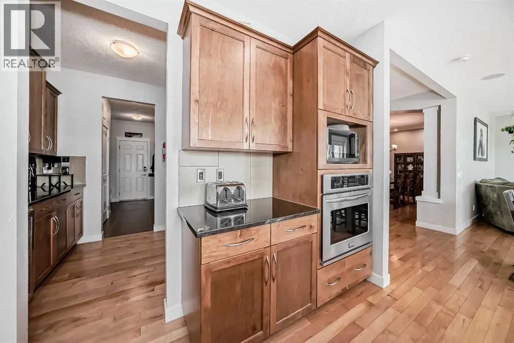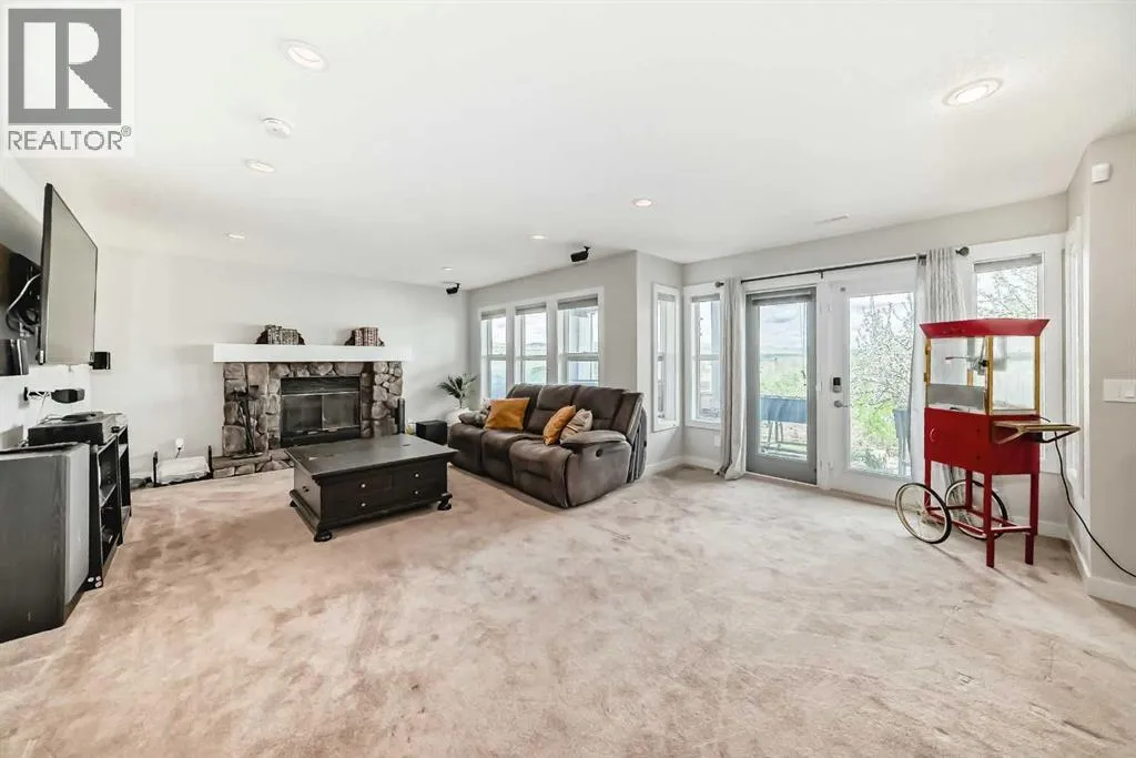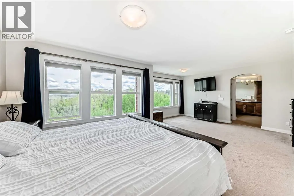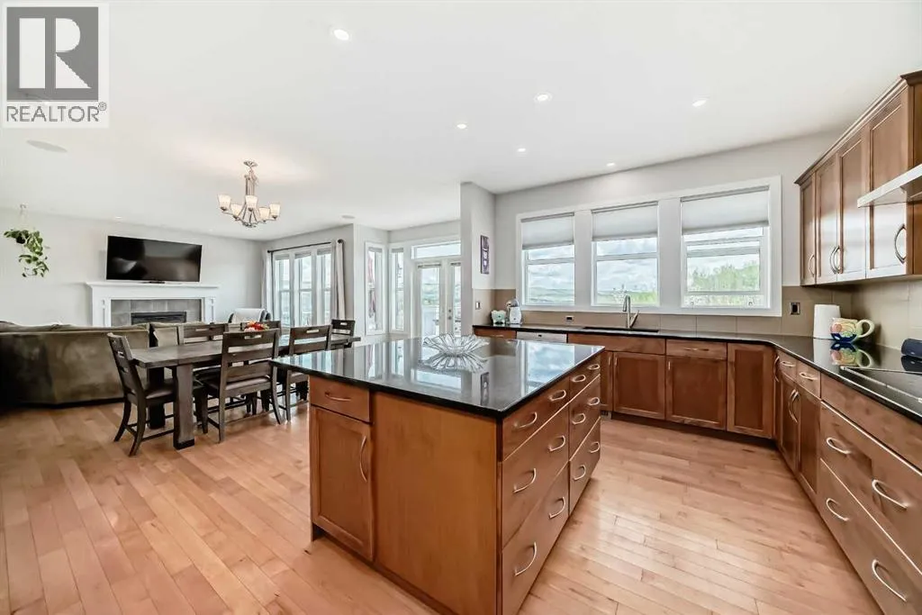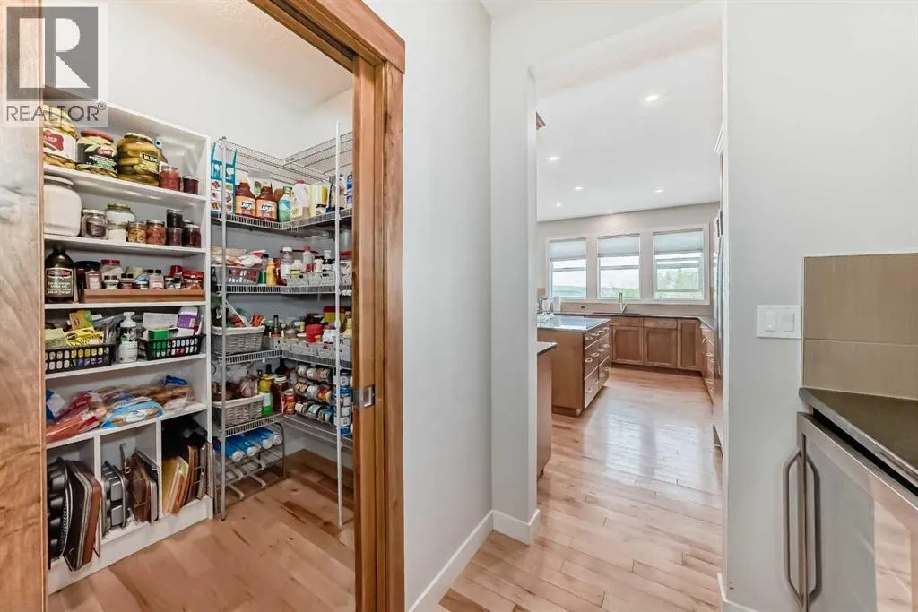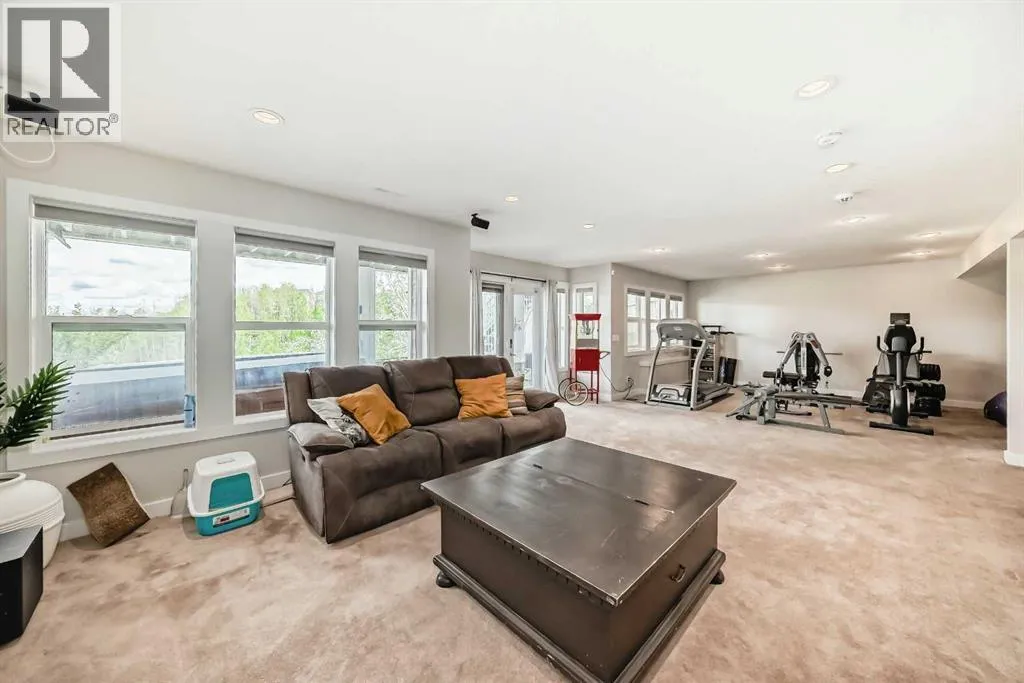 Welcome to 18 Ridge View Place, one of the most beautiful streets in the lovely community of RIVERSONG. Such GREAT VALUE (shop and compare price per sq foot) for this home with almost 5000 sq feet of developed space, boasting 5 BEDROOMS (each with itâs own walk-in closet) and 5 BATHROOMS - including 2 PRIVATE ENSUITES. Location is prime, backing onto a NATURAL RAVINE, with no homes directly behind you. Youâll love the abundant, large windows with gorgeous VIEWS from all 3 levels. The MAIN floor welcomes you with a large FRONT OFFICE, a Formal Dining Room and Living Room. You will be drawn in with the views. This beautiful kitchen is spacious and elegant, with a large ISLAND and quartz countertops, an Electric Cooktop and CHEFâs hood fan, a built-in oven, and an oversized fridge with DOUBLE DOORS. Enjoy the full length BALCONY for your peaceful, outdoor viewing pleasure. The kitchen wraps around to a BUTLERâS PANTRY for prepping and coffee & beverage station, plus another large walk-in PANTRY for all your food storage needs. A seamless transition to the MUD ROOM with custom built-in shelving/cubicles, and the well sized Garage. The UPPER level has high/vaulted ceilings, a bright & sunny LAUNDRY ROOM, a full main bathroom, and 4 Bedrooms. PRIMARY BEDROOM is huge, with a lovely 5 piece ENSUITE, including a rainfall shower head and jetted tub â VIEWS from here are breathtaking!!! Youâll love the massive, walk-in closet with CUSTOM BUILT-INS, a CLOSET ISLAND, and natural light. Uniquely, the BONUS ROOM has been professionally converted into a 5th BEDROOM, with itâs own PRIVATE ENSUITE and WALK-IN closet. This would be an ideal Nanny quarters, teenagers or guests. The LOWER, WALK-OUT level is 1357 square feet - mostly wide open FLEX space, with a cozy, WOOD-BURNING fireplace, another LARGE BEDROOM and full BATHROOM, and a mechanical/utility room with abundant STORAGE space. FRENCH DOORS lead out to the PATIO where you can enjoy the HOT TUB and NATURE at itâs best! This well-built home has HARDWOOD flooring, tile, carpet and QUARTZ countertops (with exception of 2nd ensuite) throughout. It is wired for SURROUND SOUND, has CENTRAL AIR Conditioning on Upper level, LOTS of STORAGE and linen closets, HIGH, knockdown ceilings, Pot Lights, two FIREPLACES â one gas and the other wood-burning. A 24â 5â x 20' Double GARAGE with Hanging Storage Racks & Composite siding. The Yard is fully FENCED, and is nicely landscaped, with apple trees and fruit shrubs. This is a large, family home with a TON of STORAGE! Walking distance to Bow Valley High School and future K-8 School in Rivercrest (projected for Sept 2027). Walking and biking path system right out the back yard. Close proximity to Spray Lakes Sawmills Recreation Center! (id:27476)