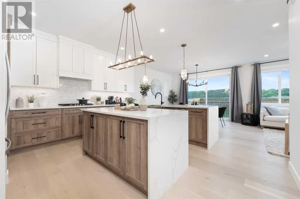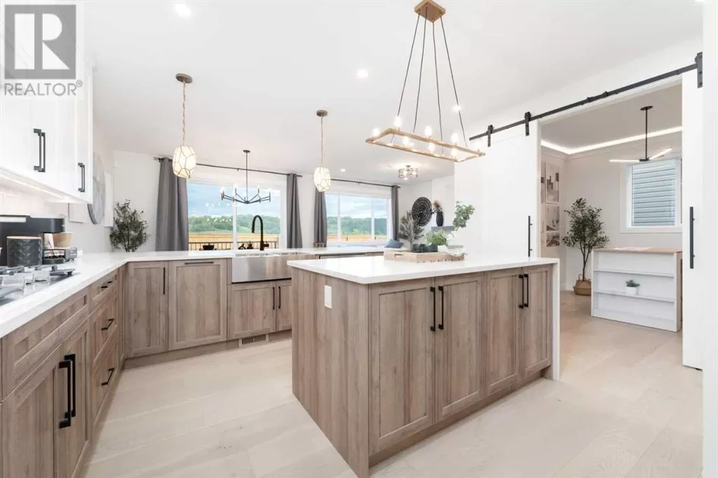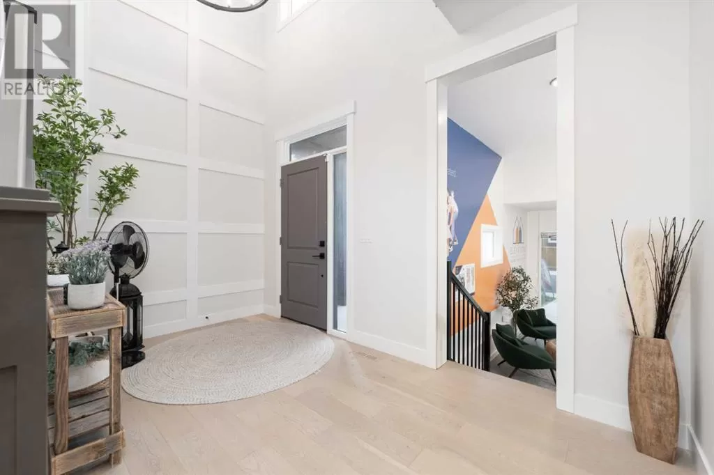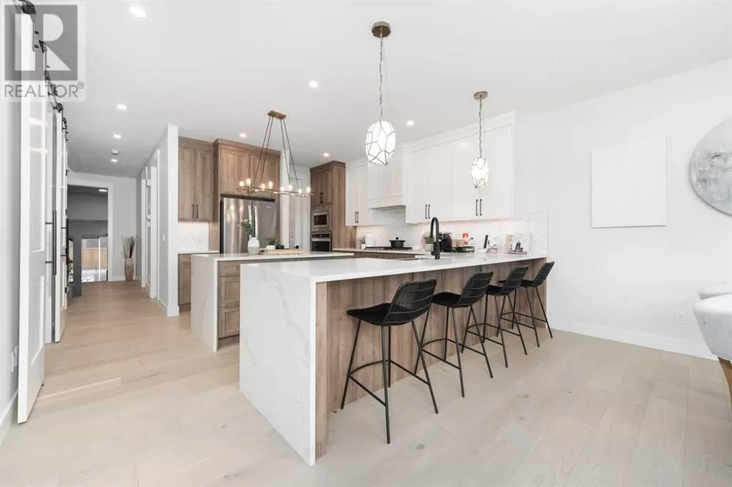 ***** SHOWHOME FOR SALE*****In the heart of scenic Cochrane, this stunning home is a masterclass in contemporary design and elevated comfort, offering a refined lifestyle across three beautifully curated levels. From its gleaming hardwood floors to expansive stone countertops, every detail has been intentionally crafted for both form and function.Step through the grand foyer into a main floor that breathes openness and sophistication. Anchored by a striking fireplace, the living room seamlessly merges with the dining area and a sleek, modern kitchen â a perfect canvas for culinary creativity and effortless entertaining. A dedicated home office, tucked discreetly on this level, allows for productivity without compromising style. Smart design touches like a walk-through pantry, mudroom, and 2-piece powder room ensure convenience is never an afterthought. The attached garage adds practical luxury, offering ample room for storage and daily use.Upstairs, serenity takes center stage. The primary suite is a true retreat â generously sized and bathed in natural light, it boasts a spa-inspired 5-piece ensuite and a walk-in closet that feels more boutique than storage. Two additional bedrooms and a stylishly appointed 4-piece bath round out the sleeping quarters, while a comfortable family lounge and dedicated laundry room elevate the homeâs everyday livability.The fully finished lower level extends the homeâs versatility. With a spacious rec room, custom bar area, and two additional bedrooms, itâs ideal for hosting guests or creating a private entertainment haven. A full 4-piece bathroom and a well-organized utility room ensure functionality meets finesse.Balancing modern architecture with warm, livable design, this home is more than a place to live â itâs a statement in comfort, craftsmanship, and contemporary living. (id:27476)