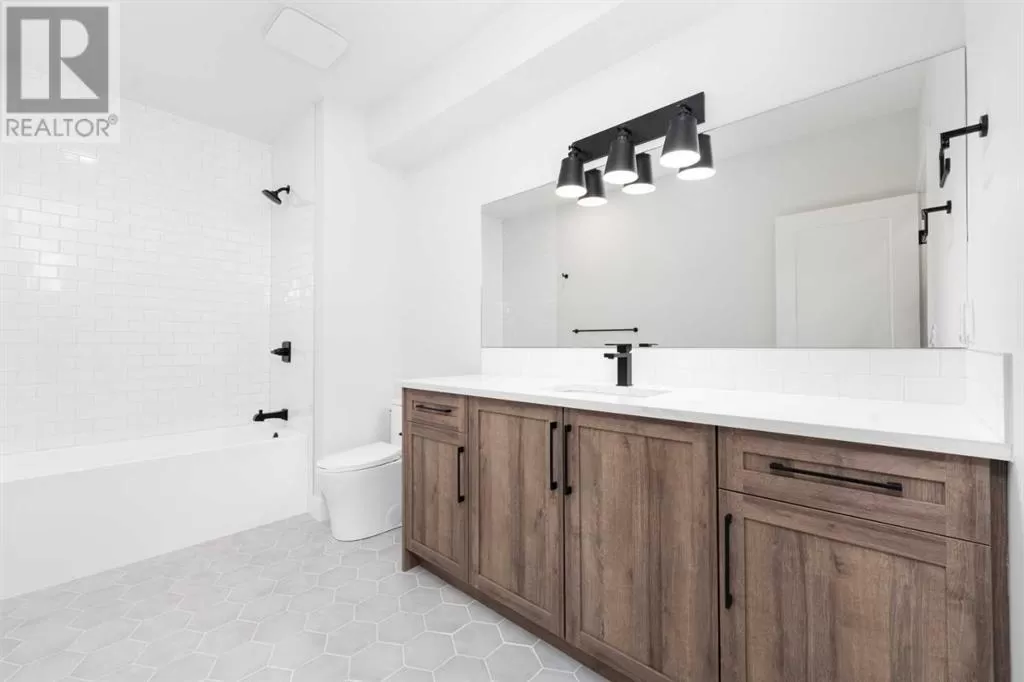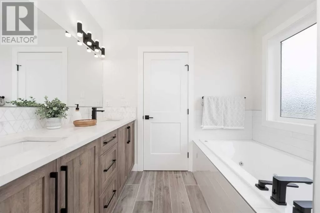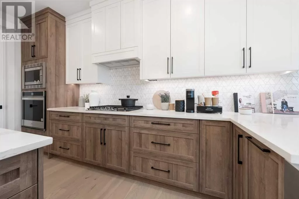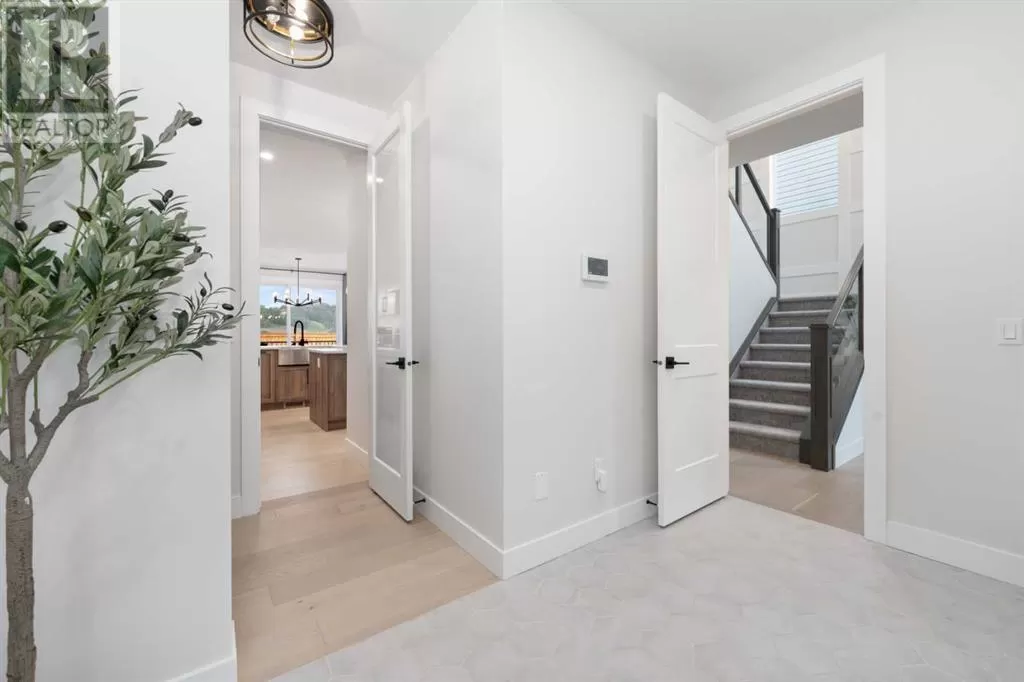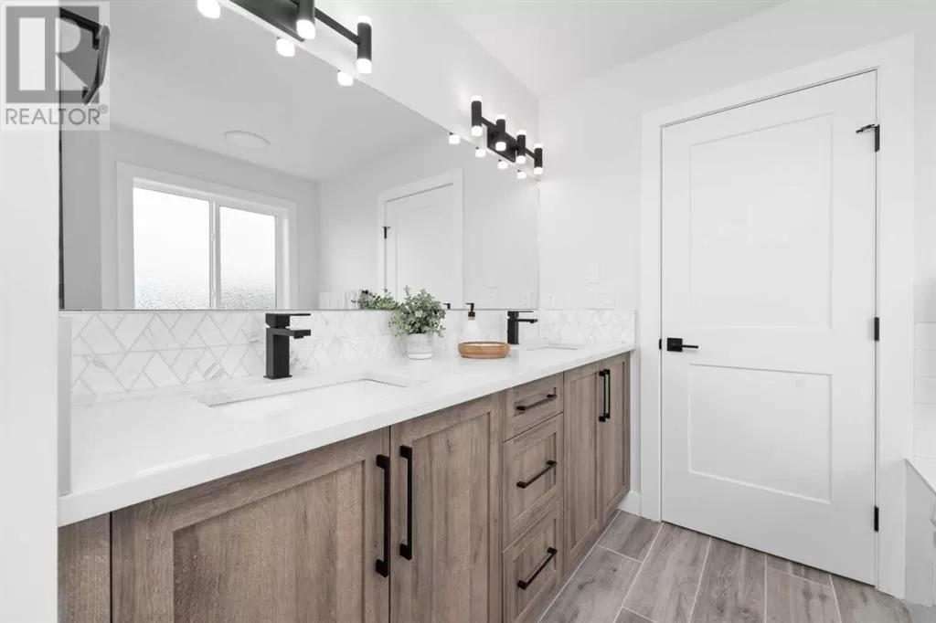 ***** SHOWHOME FOR SALE*****In the heart of scenic Cochrane, this stunning home is a masterclass in contemporary design and elevated comfort, offering a refined lifestyle across three beautifully curated levels. From its gleaming hardwood floors to expansive stone countertops, every detail has been intentionally crafted for both form and function.Step through the grand foyer into a main floor that breathes openness and sophistication. Anchored by a striking fireplace, the living room seamlessly merges with the dining area and a sleek, modern kitchen â a perfect canvas for culinary creativity and effortless entertaining. A dedicated home office, tucked discreetly on this level, allows for productivity without compromising style. Smart design touches like a walk-through pantry, mudroom, and 2-piece powder room ensure convenience is never an afterthought. The attached garage adds practical luxury, offering ample room for storage and daily use.Upstairs, serenity takes center stage. The primary suite is a true retreat â generously sized and bathed in natural light, it boasts a spa-inspired 5-piece ensuite and a walk-in closet that feels more boutique than storage. Two additional bedrooms and a stylishly appointed 4-piece bath round out the sleeping quarters, while a comfortable family lounge and dedicated laundry room elevate the homeâs everyday livability.The fully finished lower level extends the homeâs versatility. With a spacious rec room, custom bar area, and two additional bedrooms, itâs ideal for hosting guests or creating a private entertainment haven. A full 4-piece bathroom and a well-organized utility room ensure functionality meets finesse.Balancing modern architecture with warm, livable design, this home is more than a place to live â itâs a statement in comfort, craftsmanship, and contemporary living. (id:27476)