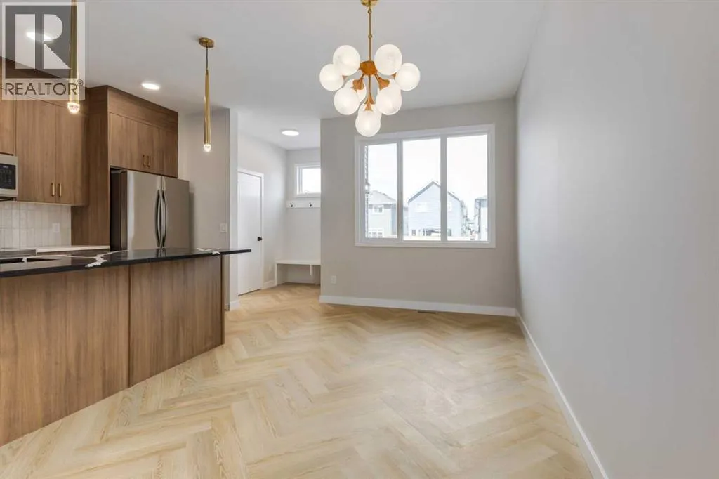 ** Open House at Greystone showhome - 498 River Ave, Cochrane - November 11th 3â6pm, November 14th 2-4pm, November 15th 1-4pm, November 16th 1-4pm and November 18th 2-5pm ** Welcome home to the Talo by Rohit Homesâan intelligently designed 1,506 sq ft side-by-side duplex located in a thoughtfully planned community. This well-appointed home offers a spacious and functional layout, ideal for families, first-time buyers, or anyone looking for modern comfort and style.The main floor features a large kitchen with a central island that comfortably seats four, perfect for casual dining or entertaining. A rear entry with built-in coat hooks and a bench adds practical everyday convenience.Upstairs, the layout is thoughtfully arranged for privacy, with the primary suite on one side and two secondary bedrooms on the other, separated by a central flex room and a convenient laundry area. Whether used as a home office, playroom, or reading nook, the flex space adds versatility to your lifestyle.Additional highlights include a separate side entrance, unfinished basement, and front and back landscaping included. A rear parking pad provides dedicated off-street parking.Please note: Photos are representative and interior finishes/colours may vary. (id:27476)
