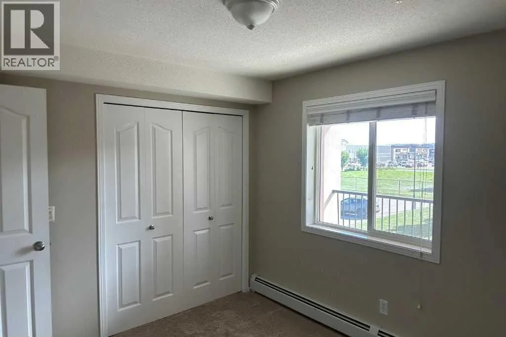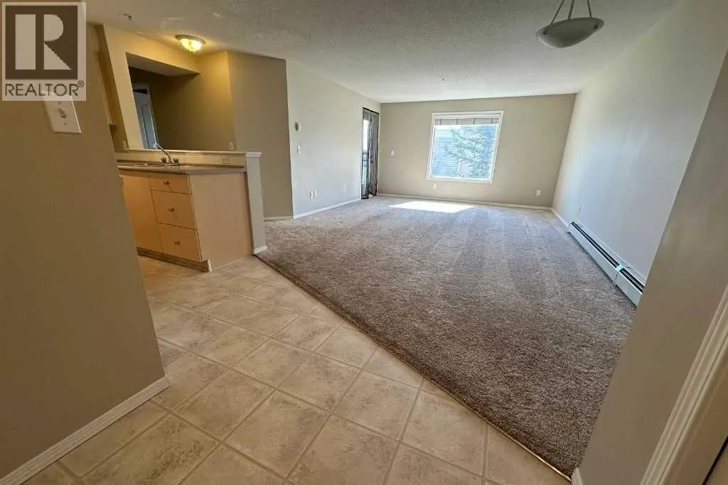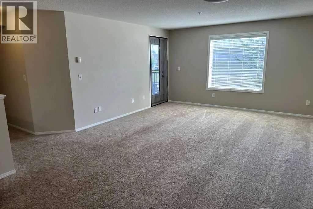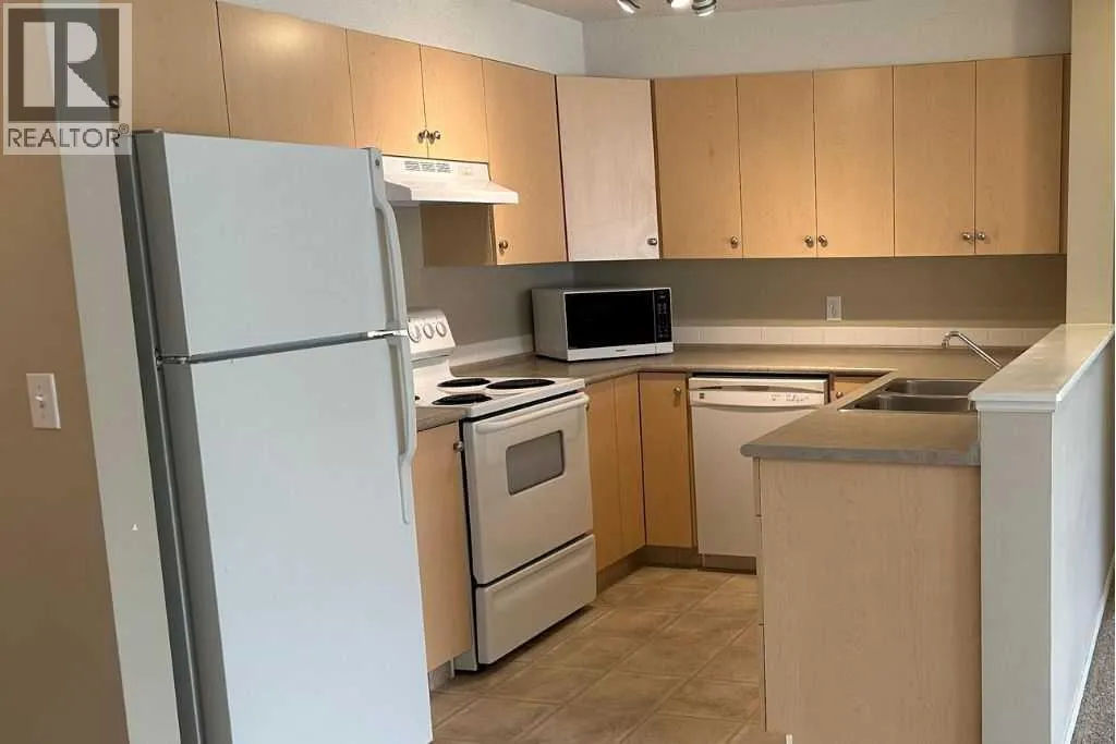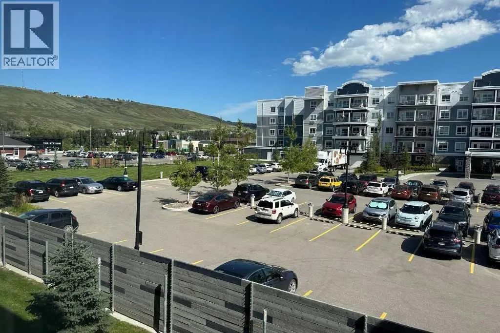 Click brochure link for more details. Bright and spacious condo is conveniently located in the heart of Cochrane close to many amenities. This clean 2 bedroom corner unit offers lots of space and a great layout, one of the larger floor plans available in the building. Generous sized kitchen with plenty of storage and breakfast bar overlooking a dining area and spacious living room. The bathroom has a fresh tub surround and floor tile, and a door into the master as well as the hallway. Updated carpet in living room and bedrooms makes this unit move in ready. In suite laundry with washer and dryer. Large (12 x 7) south facing balcony with plenty of sunlight and private facing and mountain views. Room for a BBQ and table and chairs. Master has an east facing window with a beautiful view of the Big Hill and double closets to accommodate your storage needs. This professionally managed, well maintained building is in walking distance to the library, grocery stores, restaurants, coffee shops, medical facilities, fitness centers, bowling and the movies. This unit comes with a conveniently located assigned surface parking stall (#107) across from the main doors. (id:27476)