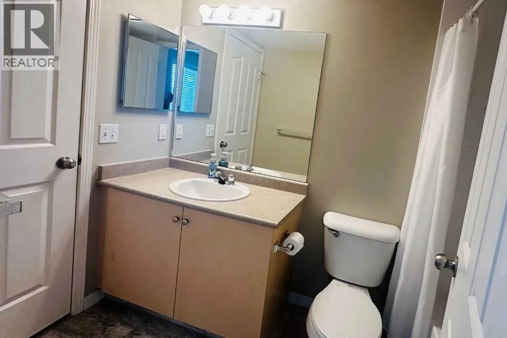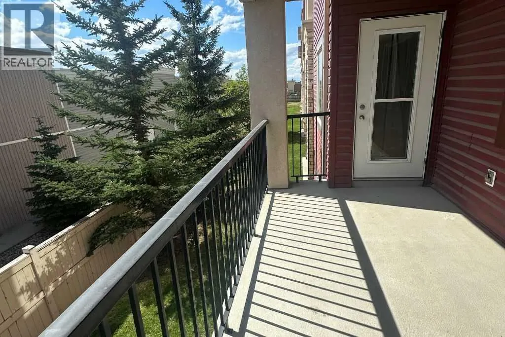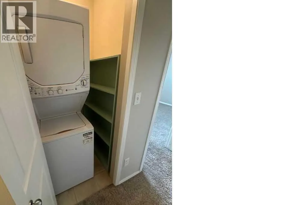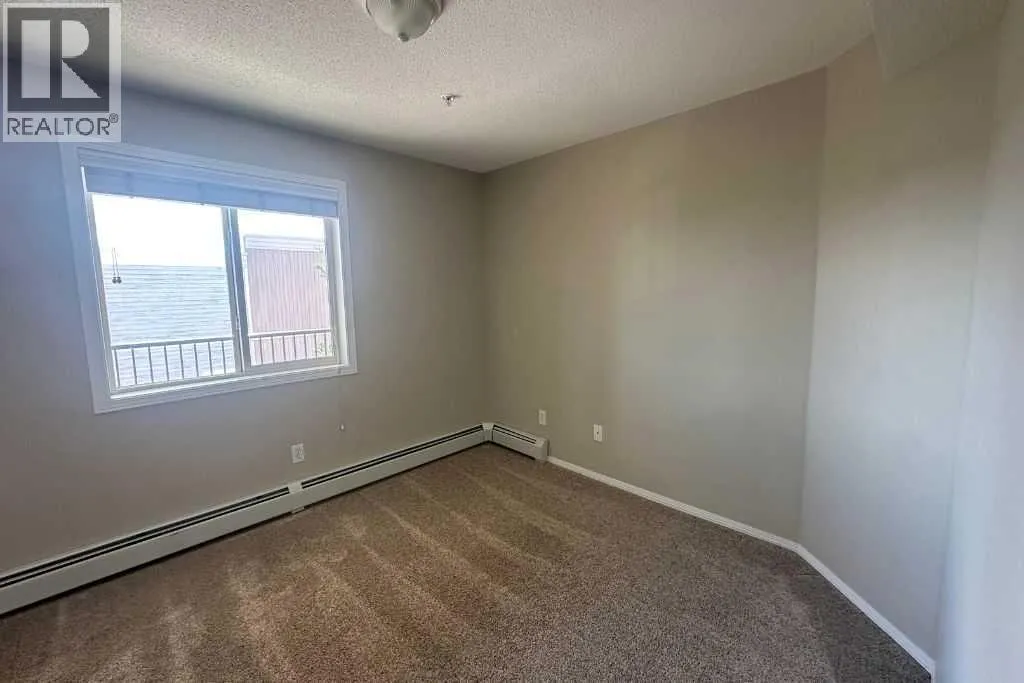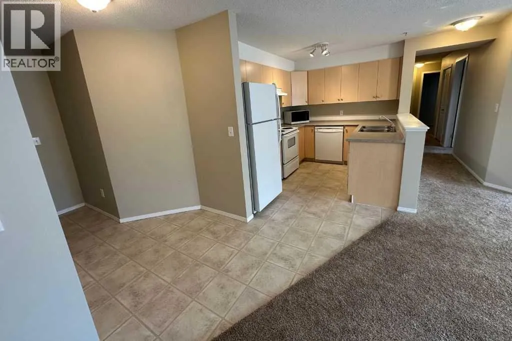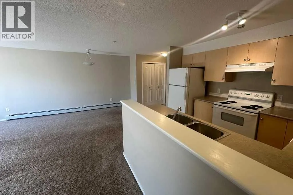 Click brochure link for more details. Bright and spacious condo is conveniently located in the heart of Cochrane close to many amenities. This clean 2 bedroom corner unit offers lots of space and a great layout, one of the larger floor plans available in the building. Generous sized kitchen with plenty of storage and breakfast bar overlooking a dining area and spacious living room. The bathroom has a fresh tub surround and floor tile, and a door into the master as well as the hallway. Updated carpet in living room and bedrooms makes this unit move in ready. In suite laundry with washer and dryer. Large (12 x 7) south facing balcony with plenty of sunlight and private facing and mountain views. Room for a BBQ and table and chairs. Master has an east facing window with a beautiful view of the Big Hill and double closets to accommodate your storage needs. This professionally managed, well maintained building is in walking distance to the library, grocery stores, restaurants, coffee shops, medical facilities, fitness centers, bowling and the movies. This unit comes with a conveniently located assigned surface parking stall (#107) across from the main doors. (id:27476)