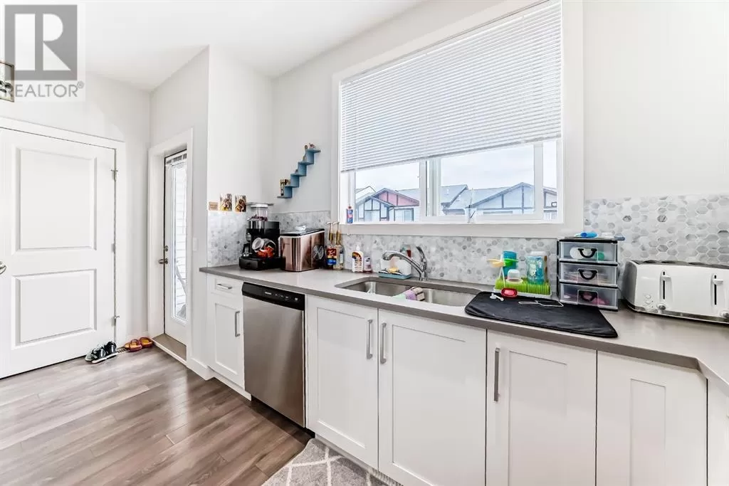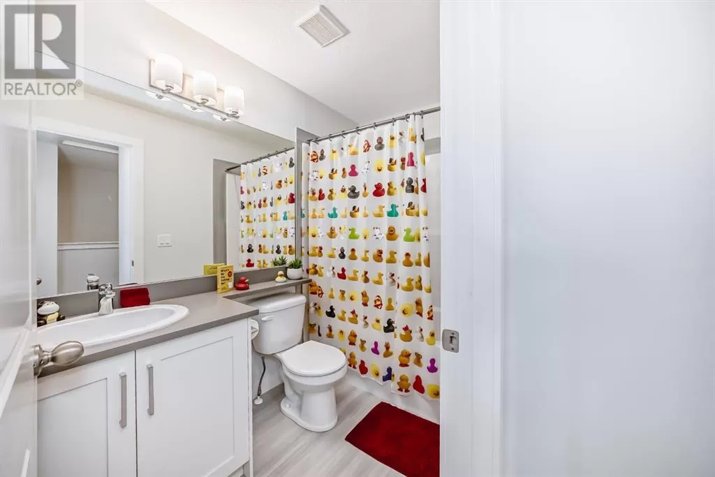 Nestled in the serene community of Jumping Pound Ridge, this beautifully appointed 3-bedroom, 2 full bathroom, and 2 half bathroom townhome offers the perfect blend of modern comfort and natural beauty. Spanning three levels, the home features an oversized single attached garage and private driveway, ensuring ample parking. The ground floor welcomes you with a bright and versatile recreation room/home gym/guest bedroom/home office, generous storage space, and a convenient half bathroom. Upstairs, the open-concept second level is ideal for both everyday living and entertaining, showcasing a spacious soaring 10ft ceilings, updated white and bright kitchen featuring quartz countertops and tiled back splash, SS appliances, dining area, and inviting living room. There are two decks to enjoy the sunshine and nature all day long! One is located off the kitchen, perfect access for outdoor cooking. The second large deck is just off the living room, enjoy the Mountain views to the west as well as your friendly neighbourhood cows roaming the serene field behind. The top floor hosts three comfortable bedrooms, including a primary suite with its own en-suite featuring a walk-in shower, while an additional full bathroom with a shower-tub combo serves the remaining bedrooms. The laundry room is conveniently located on the upper level. Set against the breathtaking backdrop of the foothills and overlooking the Mountains and the Jumping Pound Creek, this townhome offers a tranquil lifestyle, complete with a nearby playground for children and easy access to outdoor adventuresâall just a short drive from the city. (id:27476)