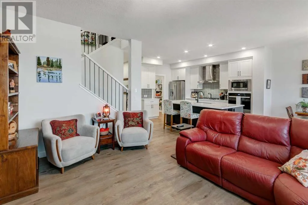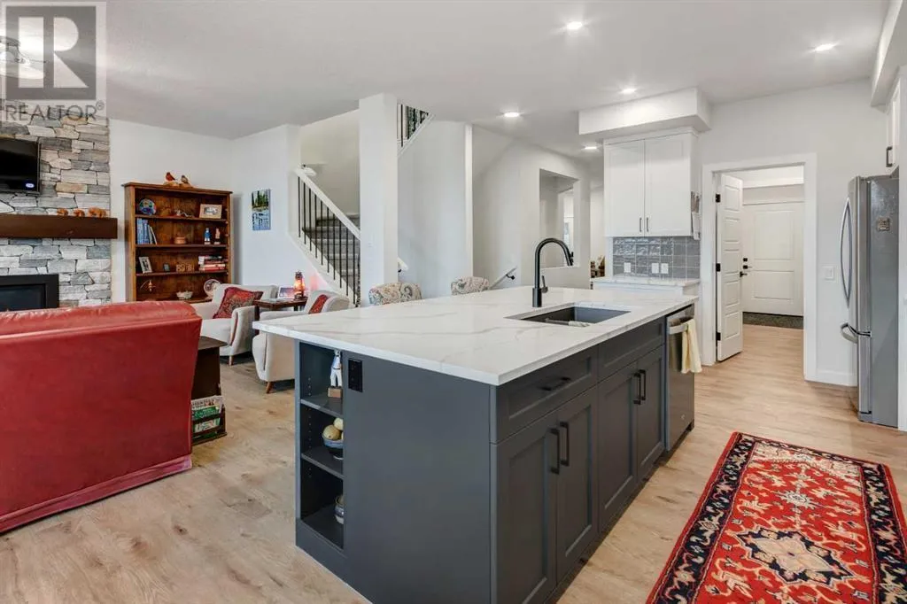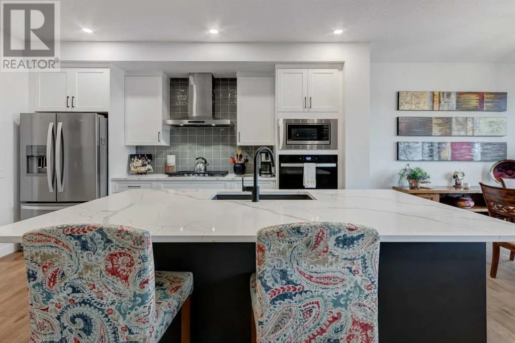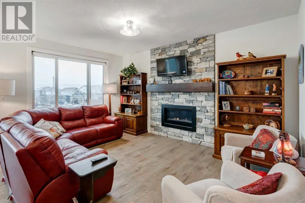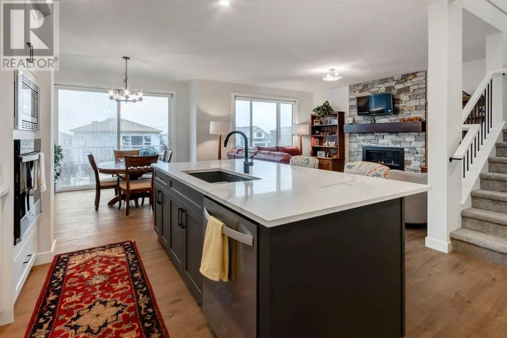 Discover your dream home in the heart of Rivercrest, Cochrane, with this stunning 2024-built, 2-storey detached home, offering 2,266 sq ft of modern elegance. Perfectly situated between Calgary and Banff for quick mountain getaways, this spacious 2.5-bath residence features 4 generous bedrooms upstairs, a versatile bonus room ideal for a playroom or media space, and a gourmet kitchen with quartz countertops, two-tone cabinetry, high-end stainless steel appliances, and a convenient walk-through pantry for effortless storage. The main level boasts chic luxury vinyl flooring and soaring 9-foot ceilings, while the unfinished walkout basement offers a blank canvas for your personal touch. Cozy up with two beautifully designed fireplaces, adding warmth and ambiance. The bathrooms feature elegant quartz countertops, with the primary ensuite showcasing a luxurious double vanity, and an upper-level laundry room adds everyday convenience. Step outside to a treated deck, perfect for enjoying the scenic surroundings. Ideally located across from a future school and nestled in one of Cochraneâs most sought-after communities, this home combines luxury, functionality, and an unbeatable locationâready to welcome you home! (id:27476)