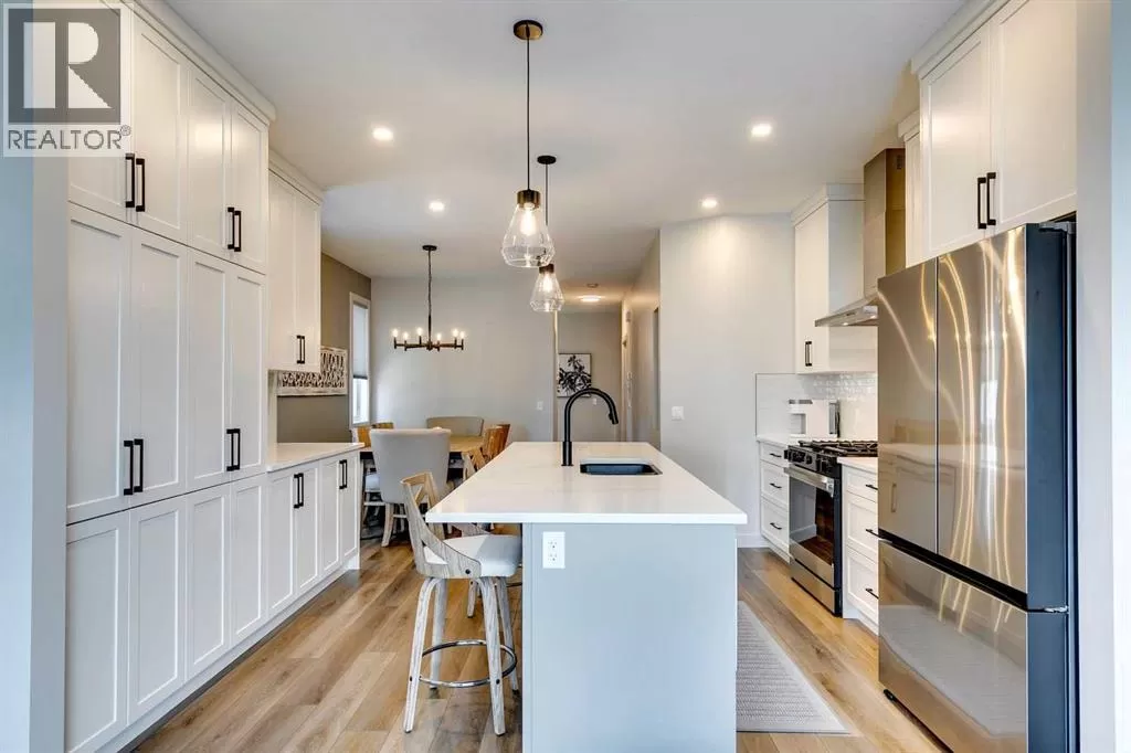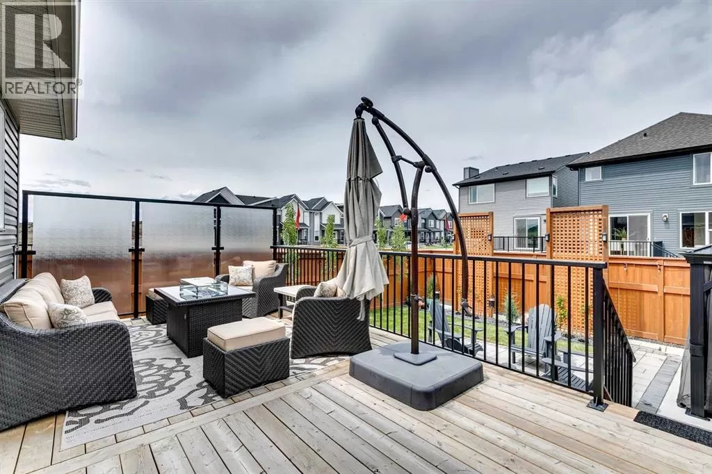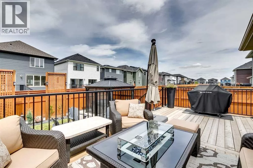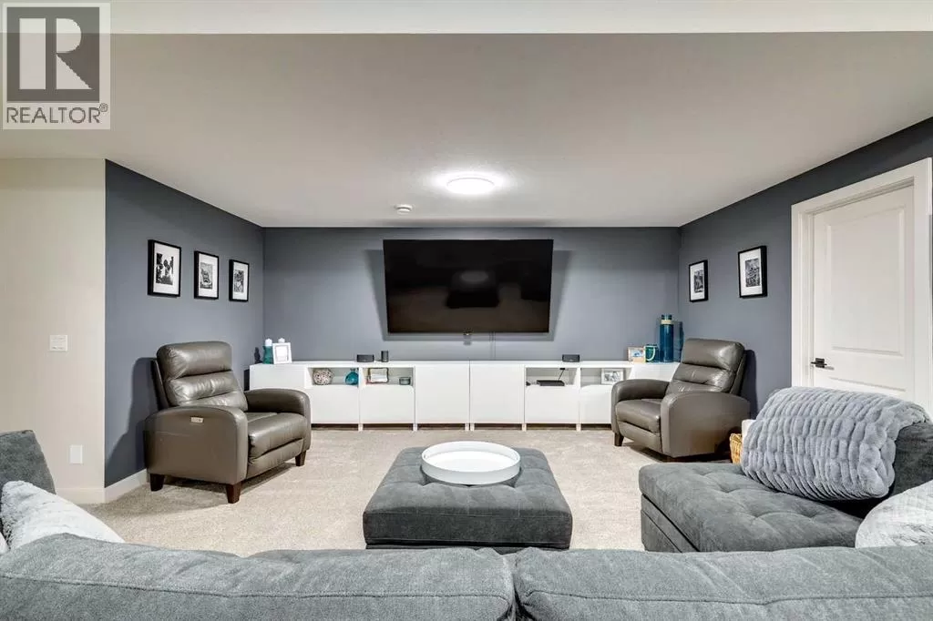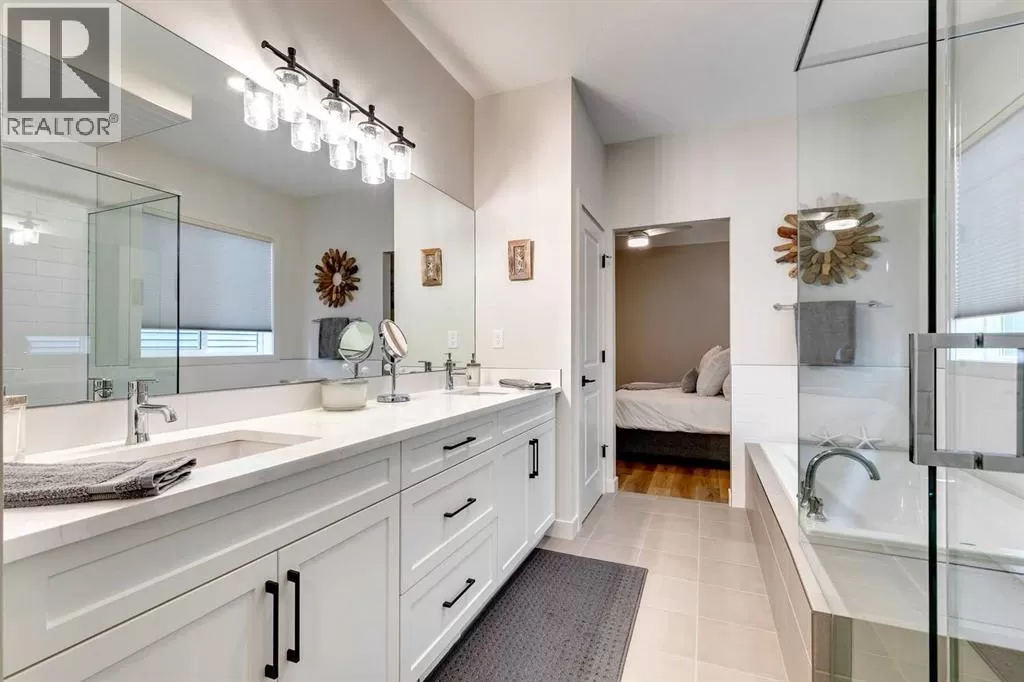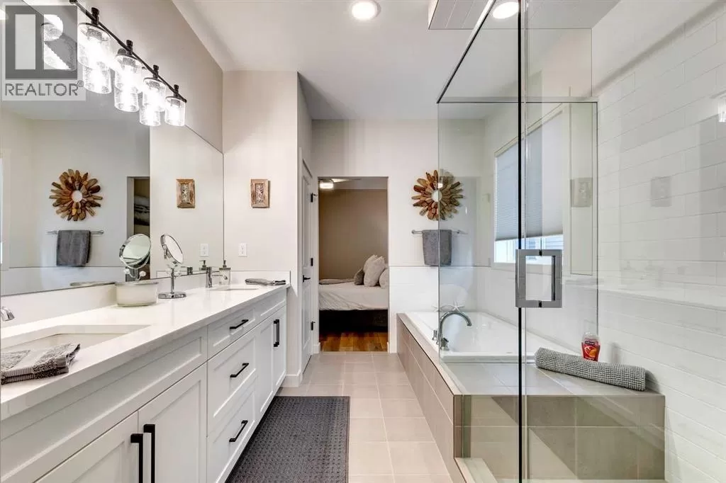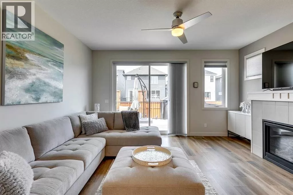 OPEN HOUSE August 30th 12-2pm!!! AN EXCEPTIONAL HOME with Over $65,000 in Upgrades... Like New and Move-in Ready!This impressive residence is truly extraordinary, showcasing over $65,000 in beautiful post-builder renovations and upgrades. The main floor boasts a gourmet kitchen featuring a striking TILE backsplash, elegant QUARTZ countertops, and floor-to-ceiling kitchen cabinets. Experience top-of-the-line Samsung Bespoke appliances including a gas range with convection and air fryer, and a refrigerator with self-filling water and double ice dispenser. The kitchen also shines with a new Anthracite double sink paired with a sleek Delta Trinsic faucet. The inviting living room centres around a Napoleon gas fireplace with fan, accented by a TILE surround and mantle.The spacious main floor master suite impresses with a luxurious ensuite featuring a double vanity with QUARTZ countertops, heated floors, soaking tub, standalone shower with tile surround, and a massive walk-in closet with convenient laundry access. Step outside to the newly landscaped, low-maintenance backyard oasis, packed with premium features including a fenced yard, gazebo, hot tub with warranty, stone patio, glass wind wall, deck skirting, privacy screening, and ambient lighting throughout; collectively valued at $50,000.The basement is perfect for teenagers or guests, offering two bedrooms and a stylish bathroom with TILE flooring and QUARTZ countertops.ADDITIONAL BONUSES include: a storage shed, custom Hunter Douglas window coverings throughout, Hunter Douglas ceiling fans in bedrooms and family room, upgraded sink and faucet, keyless entry, appliance upgrades, ceiling fans, a gas BBQ line, pull-out drawer garage and recycling bins, a full home inspection with all minor issues builder-rectified, and a 10-year Alberta new home warranty plus an extended builder warranty. This home is also located 1/2 block from a future off leash dog park and extensive walking paths. Central Park is also half a block away. This spectacular home truly looks and feels like a showhome...move in and enjoy! (id:27476)