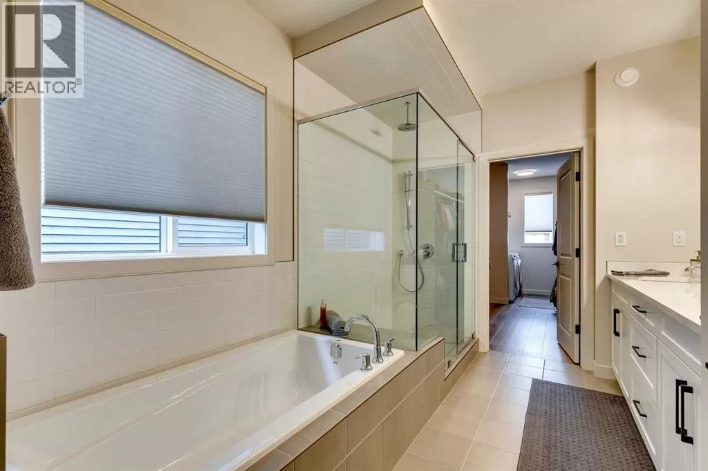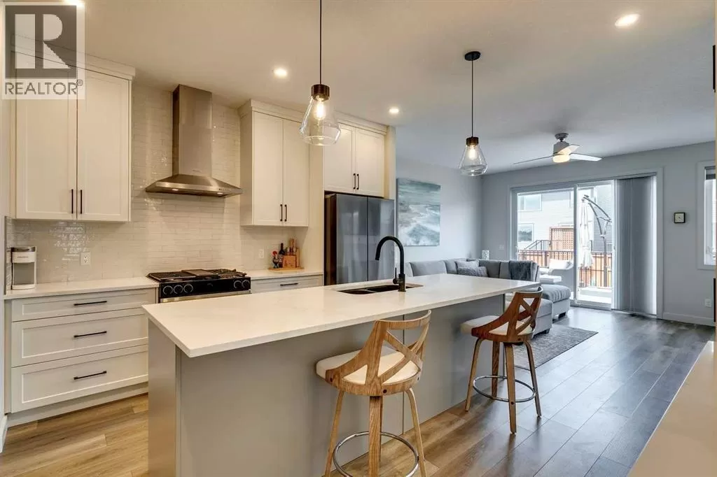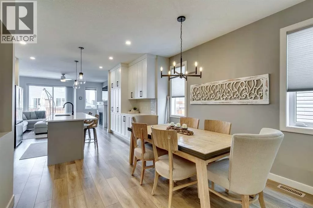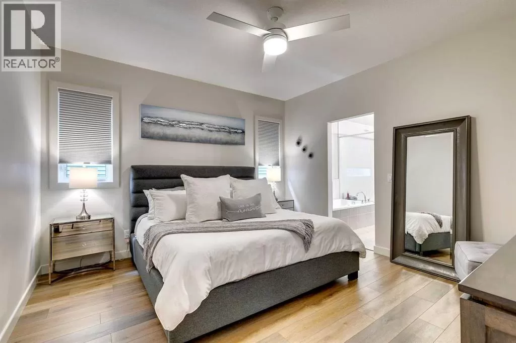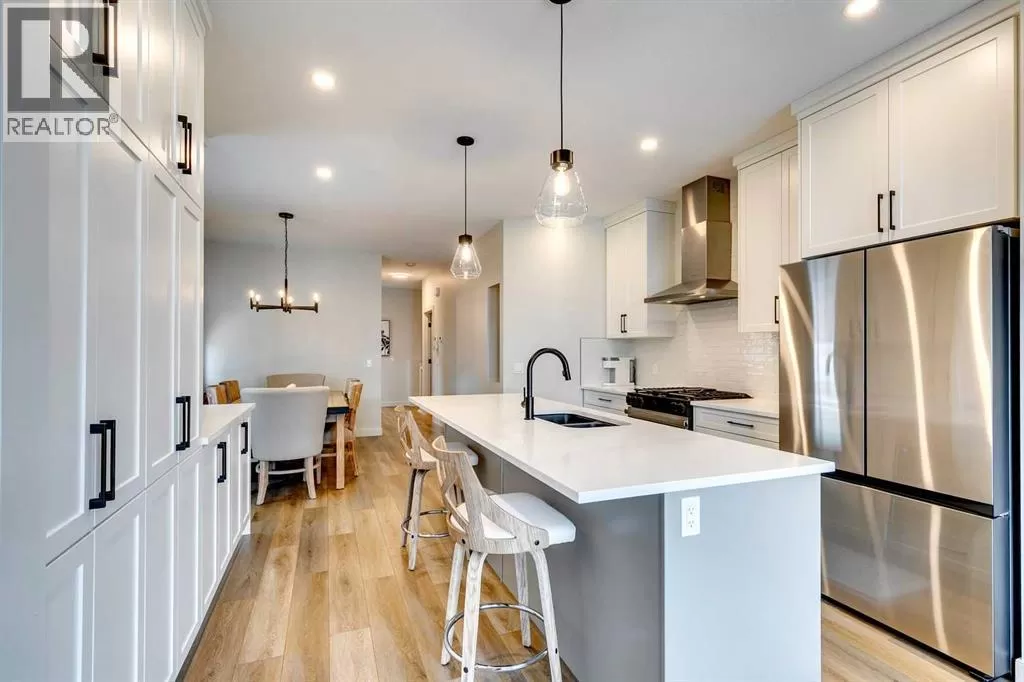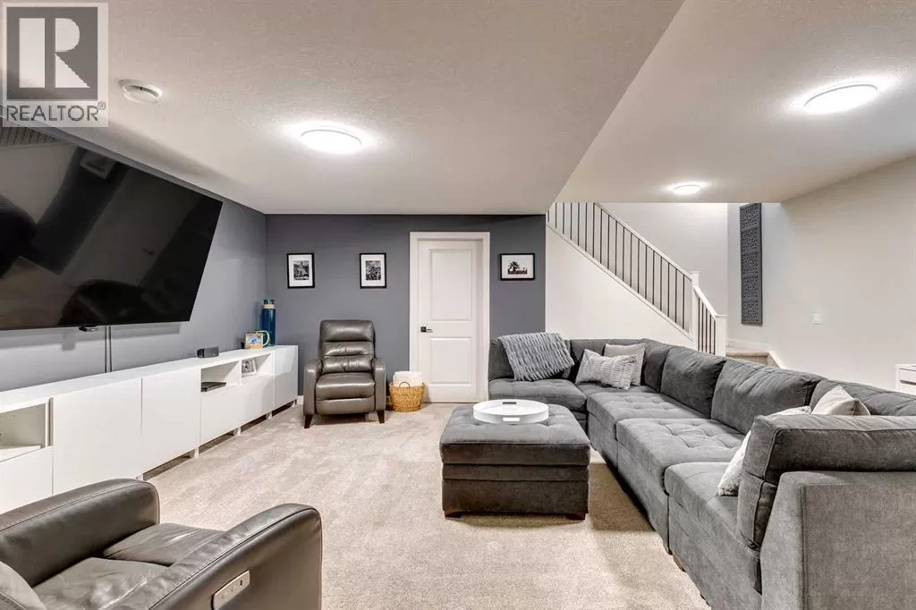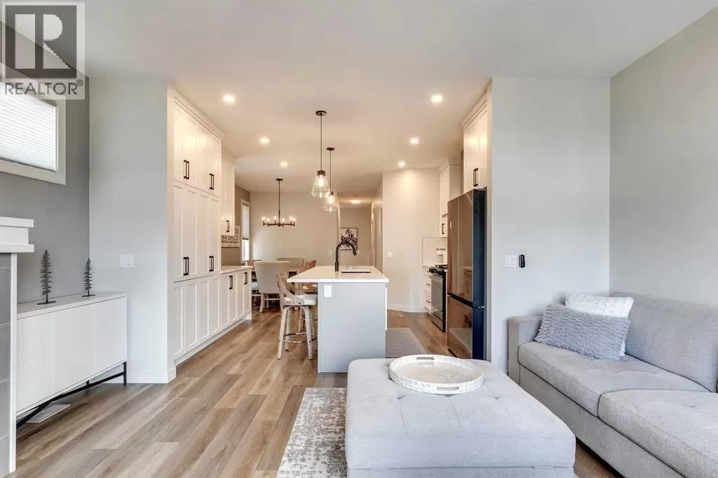 OPEN HOUSE August 30th 12-2pm!!! AN EXCEPTIONAL HOME with Over $65,000 in Upgrades... Like New and Move-in Ready!This impressive residence is truly extraordinary, showcasing over $65,000 in beautiful post-builder renovations and upgrades. The main floor boasts a gourmet kitchen featuring a striking TILE backsplash, elegant QUARTZ countertops, and floor-to-ceiling kitchen cabinets. Experience top-of-the-line Samsung Bespoke appliances including a gas range with convection and air fryer, and a refrigerator with self-filling water and double ice dispenser. The kitchen also shines with a new Anthracite double sink paired with a sleek Delta Trinsic faucet. The inviting living room centres around a Napoleon gas fireplace with fan, accented by a TILE surround and mantle.The spacious main floor master suite impresses with a luxurious ensuite featuring a double vanity with QUARTZ countertops, heated floors, soaking tub, standalone shower with tile surround, and a massive walk-in closet with convenient laundry access. Step outside to the newly landscaped, low-maintenance backyard oasis, packed with premium features including a fenced yard, gazebo, hot tub with warranty, stone patio, glass wind wall, deck skirting, privacy screening, and ambient lighting throughout; collectively valued at $50,000.The basement is perfect for teenagers or guests, offering two bedrooms and a stylish bathroom with TILE flooring and QUARTZ countertops.ADDITIONAL BONUSES include: a storage shed, custom Hunter Douglas window coverings throughout, Hunter Douglas ceiling fans in bedrooms and family room, upgraded sink and faucet, keyless entry, appliance upgrades, ceiling fans, a gas BBQ line, pull-out drawer garage and recycling bins, a full home inspection with all minor issues builder-rectified, and a 10-year Alberta new home warranty plus an extended builder warranty. This home is also located 1/2 block from a future off leash dog park and extensive walking paths. Central Park is also half a block away. This spectacular home truly looks and feels like a showhome...move in and enjoy! (id:27476)