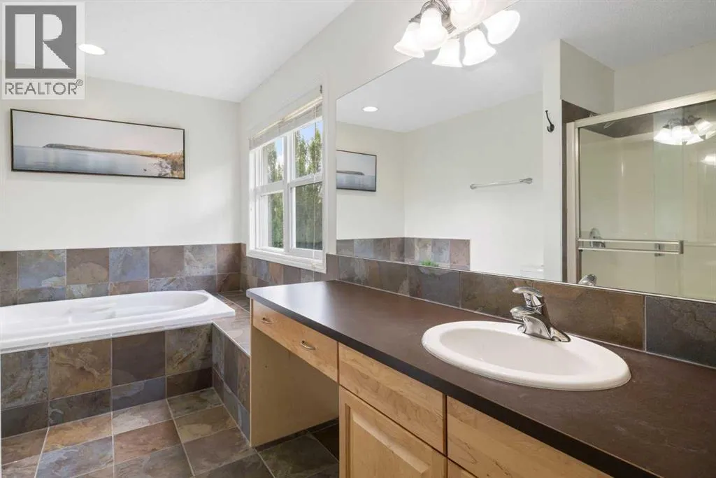Welcome to Sunset Ridge â Where Lifestyle Meets Location. Ideally situated just steps from scenic pathways leading to Cochrane Ranch and within walking distance to St. Timothy Jr/Sr High School, this beautifully maintained home offers the perfect blend of comfort, space, and convenience. Featuring a rare 4 bedrooms above grade, this home has nearly 2,000 sq ft of light-filled living space, complemented by a newly developed basement adding almost 900 sq ft of versatile space for family fun or entertaining. The kitchen highlights are, a large island, walk in pantry, plenty of storage, and the appliances have all been replaced in the last year. The dining space is bright and cheery, and the spacious living room is anchored by a beautiful gas fireplace. The office, main floor laundry, and powder room complete your main floor living. The second level offers 3 large secondary bedrooms, a large family washroom and a fantastic primary suite. The generous primary bedroom is complete with a 4-piece ensuite and large walk-in closet. Step outside to a private backyard oasis with a deckâperfect for relaxing or hosting summer gatherings. Enjoy all that Cochrane has to offer, from excellent schools and amenities to easy access to the mountains, you wonât look back! (id:27476)