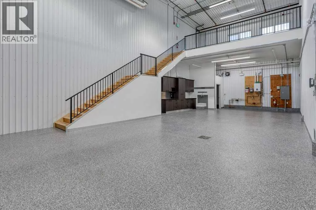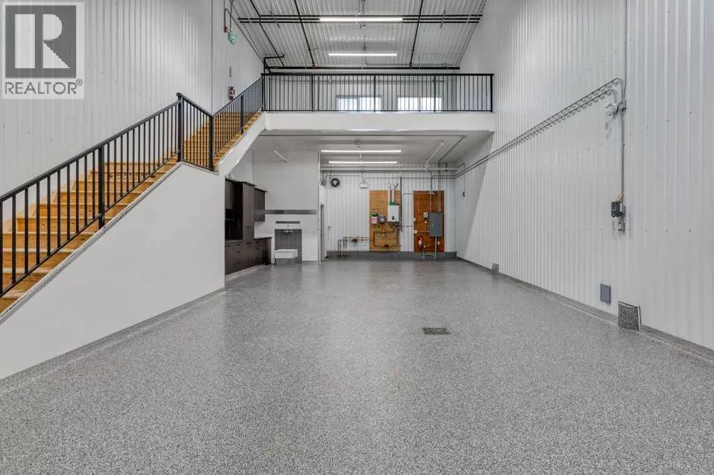 This exceptional 1,750 sq. ft. condominium storage bay offers the ultimate flexibilityâperfect for running a business or providing secure, climate-controlled storage for cars, boats, business inventory, and more. Located in a gated, secure compound just off Highway 22 on the south side of Cochrane, this property combines functionality with high-end finishes.The main level (24' x 50') features a 14â overhead door plus man door for easy access, soaring 24â ceilings, and abundant natural light. A finished 2-piece bathroom, forced air gas furnace, and hydronic in-floor heating with a high-end boiler ensure year-round comfort. The epoxy floors, custom cabinets, workbench, mop sink, and bright, open space make it ready for immediate use.Upstairs, the mezzanine (24' x 16') offers an open railing overlooking the main floor, an unspoiled loft with bathroom rough-in, and endless possibilitiesâoffice space, lounge area, or additional storage.Whether youâre seeking a secure place for valuable equipment and vehicles or a versatile commercial workspace, this bay delivers premium features, exceptional access, and a prime Cochrane location. (id:27476)