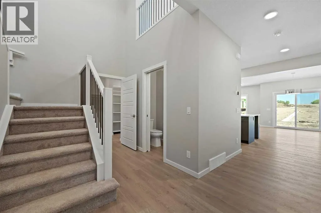 **OPEN HOUSE Sunday, November 2nd from 1-3pm** The Hadley by Bedrock Homes offers a thoughtfully crafted open-concept layout designed for modern living with west-facing mountain views from the upper floor, perfect for enjoying Albertaâs natural beauty. From the moment you step inside, the open-to-above foyer sets an impressive tone, leading to a functional walk-through mudroom and pantry. At the heart of the home, the central kitchen showcases a large island that overlooks a bright great room and dining area, ideally situated at the rear for seamless entertaining and everyday comfort. Upstairs, youâll find a spacious bonus room, two additional bedrooms, and a full bathroom. A striking bridge hallway over the foyer leads to the private primary suite, featuring a luxurious ensuite and a walk-through closet with direct access to the laundryâcombining style with smart design. This home also includes a separate entrance to the basement, offering excellent potential for future development. **Please note: Photos and measurements are of 15 Heritage Link, Cochrane. While the floor plan is identical, finishes, selections, and colours are different. (id:27476)