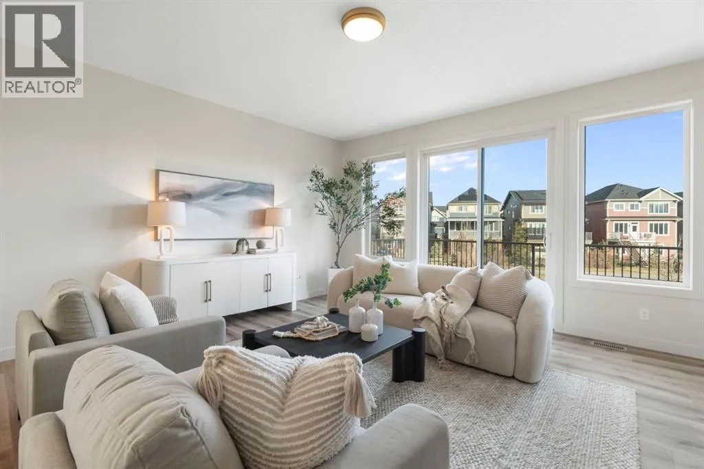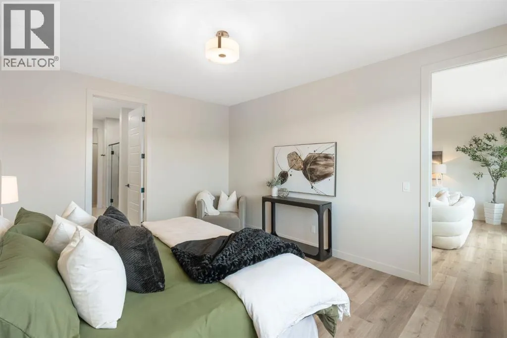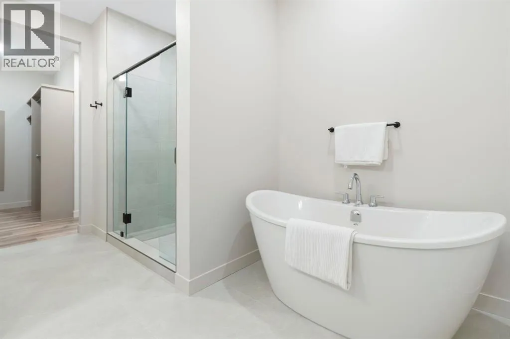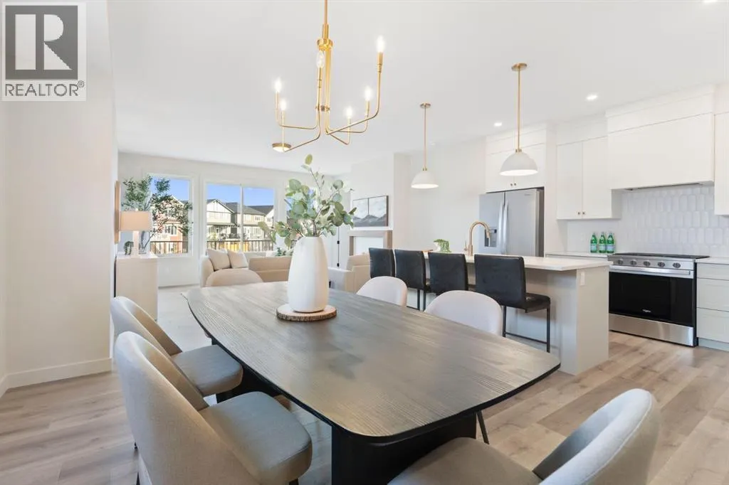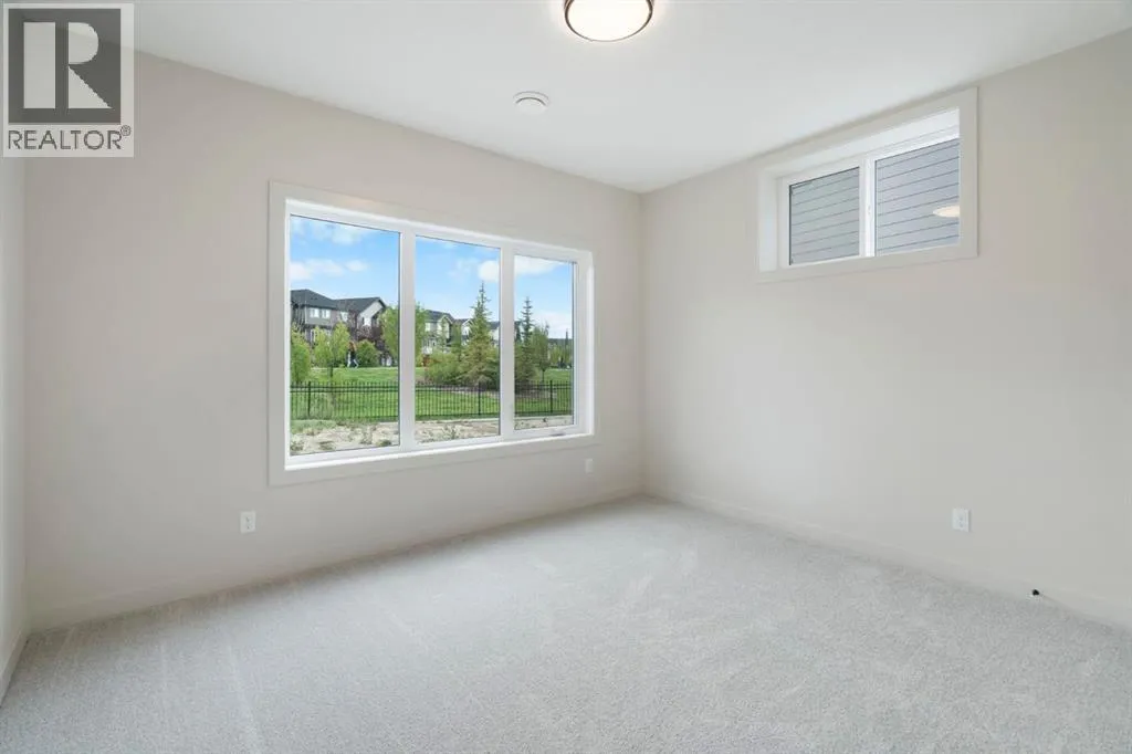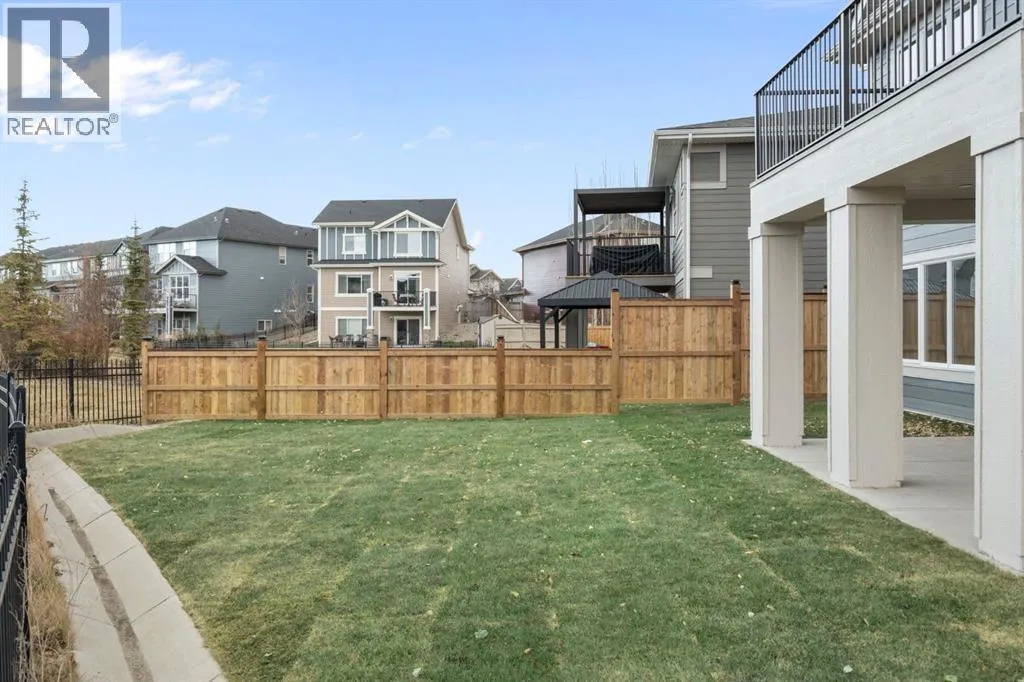 Step into the perfect blend of location, luxury, and lifestyle in this fully developed walkout bungalow in Sunset Ridge, one of Cochraneâs most sought-after family-friendly communities. Nestled on a pie-shaped lot backing a green-space pathway and playground, this home is ready for you to move in. Award-winning Aspen Creek Designer Homes presents the Ethan model, showcasing quality craftsmanship and thoughtful design at every turn. The open-concept main floor is anchored by a stunning kitchen featuring quartz countertops, a large island, custom cabinetry, and stainless steel appliances. The adjoining living room, complete with a cozy fireplace, opens onto a 17x10 deck, ideal for your morning coffee!The primary suite is a true retreat. Detailed with elegant wainscotting, it features a stand-alone soaking tub, spacious walk-in shower, dual vanities, and a custom walk-in closet with built-in shelving that conveniently connects to the walk-through laundry room. Neutral tones throughout create a timeless, sophisticated atmosphere.The walkout lower level offers room for everyone with a family/games area, a stylish wet bar, two additional bedrooms with a 4-piece bath in between, with plenty of storage and utility space. Outside is your east-facing backyard, perfect for soaking in the morning sun or enjoying the evening air. The yard has been completely sodded and ready for your personalized touches.Sunset Ridge is known for its family-first amenities, including RancheView School (K-8) and St. Timothyâs High School, multiple playgrounds, and an extensive network of walking paths that make weekend strolls and bike rides a breeze. With downtown Cochrane and the Bow River just minutes away, you can have both a peaceful neighbourhood lifestyle and easy access to everything the town offers. Book your showing today! (id:27476)