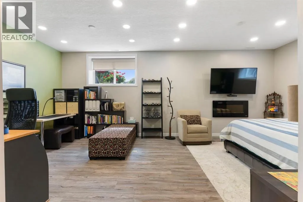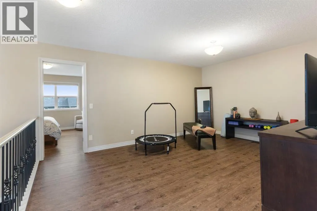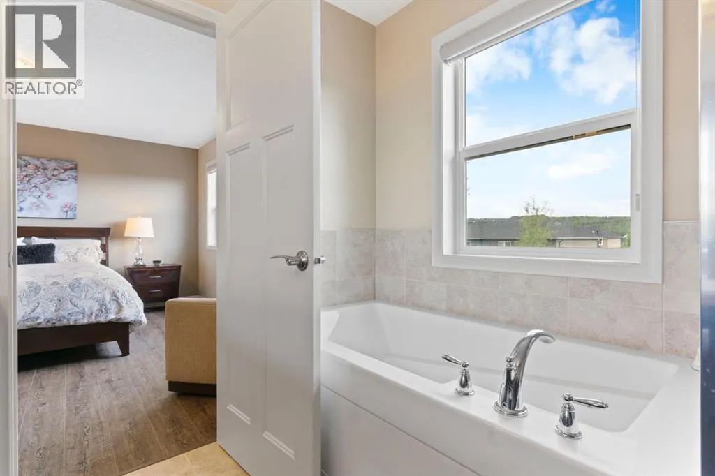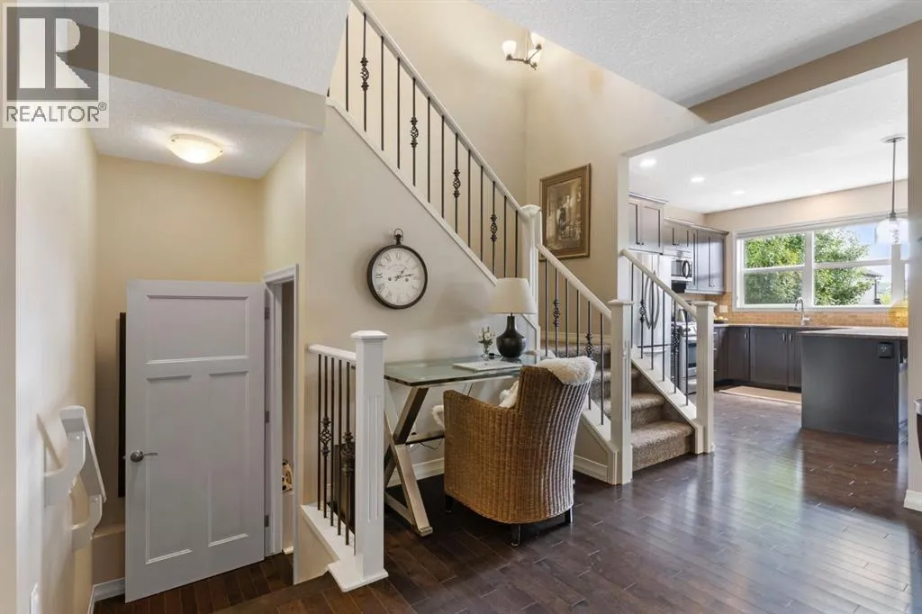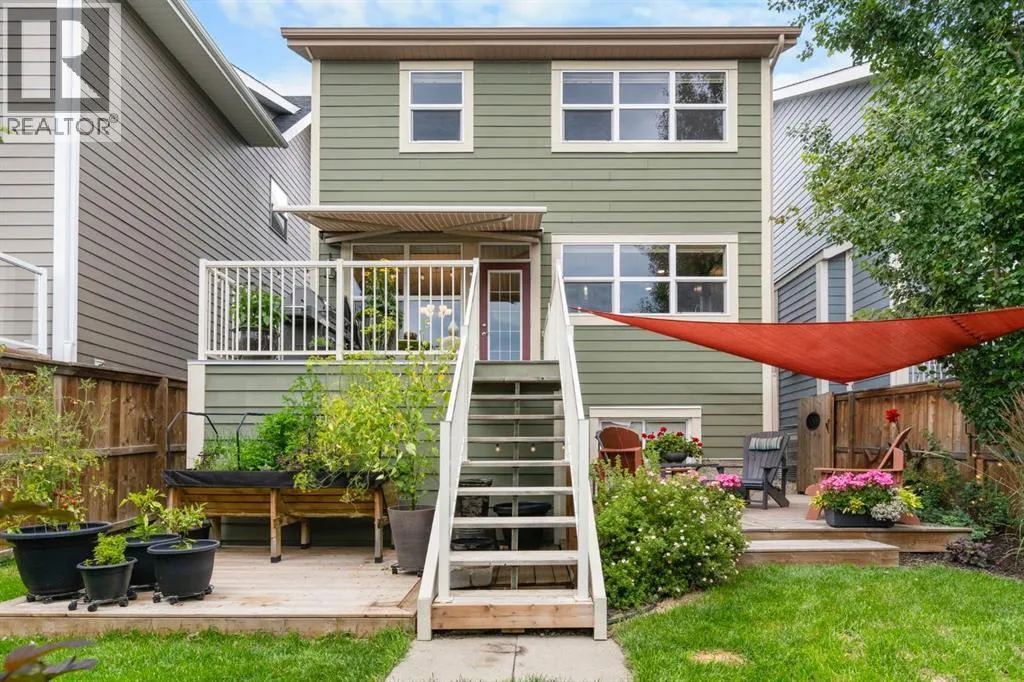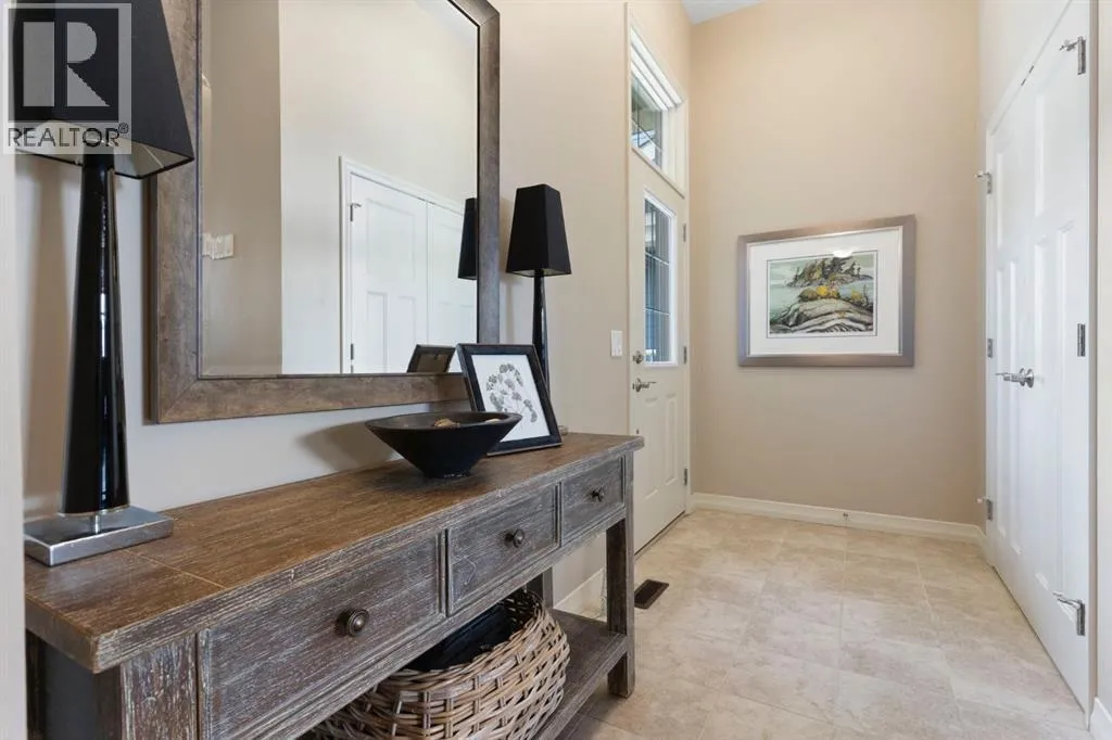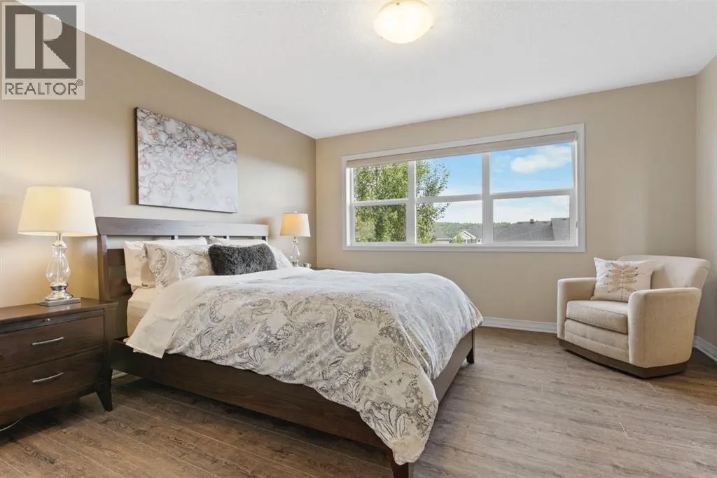 Welcome to 33 Sundown Grove â a beautifully upgraded and thoughtfully designed two-storey home with over 2475 sq ft of living and storage space in the highly sought-after community of Sunset Ridge in Cochrane, Alberta. Boasting stunning curb appeal, this turn-key home impresses from the moment you arrive with its charming architectural details and tasteful landscaping. Ideally located just steps from the neighbourhood's K-8 School, scenic pond, playgrounds, walking paths, and shopping amenities, this home offers the perfect blend of comfort, elegance, and convenience.As you step inside, you're greeted by a grand front foyer with soaring ceilings that make a striking first impression. Elegant in-stair lighting and a cozy fireplace in the main living area create a warm and welcoming atmosphere that instantly feels like home. The open-concept layout is beautifully illuminated by natural light streaming through oversized windows, enhancing the home's inviting charm. The gourmet kitchen and living areas overlook a gorgeous south-facing backyard oasis filled with lush greenery and breathtaking landscaping.The backyard features three private decks, a remote-controlled awning with automatic wind sensors, and integrated LED lighting â creating a magical evening ambiance. An additional 110 sq ft of outdoor storage is conveniently located under the enclosed deck, perfect for gardening tools or seasonal items.Upstairs, you'll find a spacious bonus room with new luxury vinyl plank flooring â ideal for use as a family room, home office, or media space. The primary bedroom is a true retreat, featuring a walk-in closet with built-in storage, motion-sensor lighting, and a spa-like 5-piece ensuite. Two additional bedrooms, a second full 3-piece bathroom, and a laundry room with built-in cabinetry complete the second floor.With 388 sq ft of living space, the professionally finished and permitted basement is thoughtfully configured for a future fourth bedroom. It also features a k itchenette, a third full 3-piece bathroom, a recreation room, an electric heated fireplace, and a dedicated 152 sq ft of storage with a utility sink. This opportune space is perfect for guests, extended family, or future rental potential.Additional features include a finished and heated double attached garage with new epoxy flooring, recessed lighting with motion sensors, and numerous thoughtful upgrades and high-end finishes throughout. This move-in-ready home is perfect for families, professionals, or anyone looking to enjoy a peaceful lifestyle in one of Cochraneâs most vibrant and scenic communities. Donât miss your opportunity to own this Sunset Ridge gem â schedule your private showing today! (id:27476)