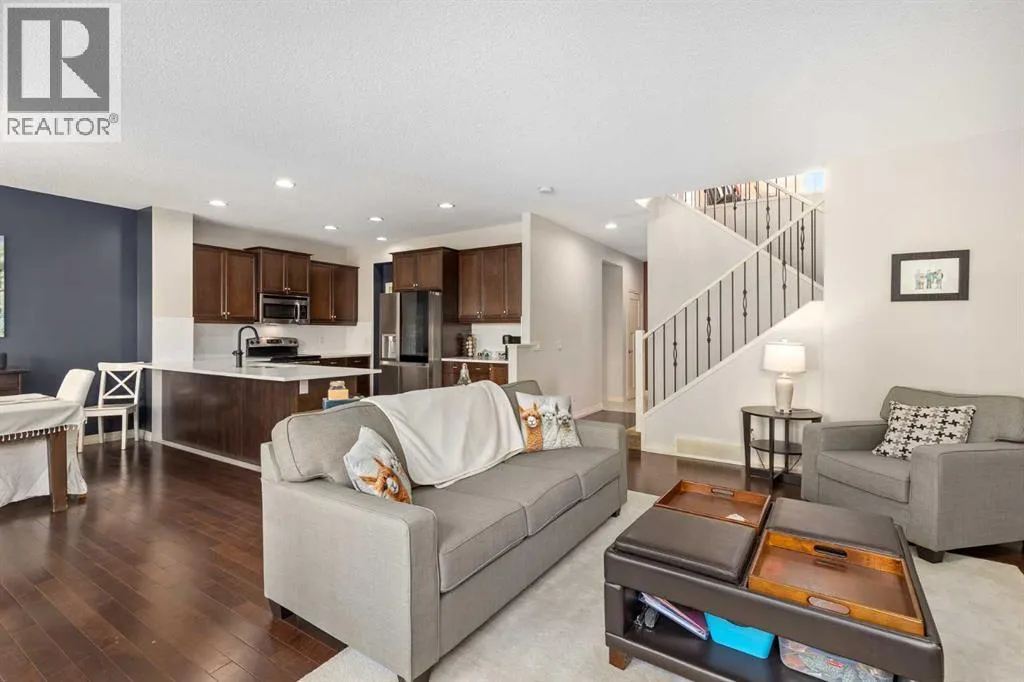 OPEN HOUSE - Saturday November 15th, 1:00 - 3:00. Welcome to this perfect family home in the quiet and coveted family friendly neighbourhood of Sunset Ridge in Cochrane! Enjoy access just across the street to a gorgeous greenspace. Take in sweeping vista views of the valley, mountains to the west, and of course the sunset! This park has kilometres of walking paths, and bike trails, with connections to Cochraneâs extensive trail system. This well designed home has everything you need, the large main entrance leads to your beautifully updated open concept kitchen. The double sink in the peninsula overlooks the family dining area, and gives you a great view of the backyard. The main floor living room is focused around the cozy gas fireplace, and oversized windows bring in great natural light. The 9 foot ceilings throughout the main floor create a welcoming and open living space. The entrance from the attached double garage leads to a large mudroom with a double storage closet. The mudroom is followed by an oversized kitchen pass-through pantry, making the task of putting groceries away a breeze! The main floor is rounded out with a powder room. On the upper level there is an abundance of flexible living space. These two spaces can be used as a den, home office, playroom, or library. Closets in this area have lots of room for storage. The light-filled primary bedroom features 2 separate walk in closets with plenty of built-in shelving. The ensuite bathroom includes double sinks, a soaker tub, and a large shower. The additional 2 upstairs bedrooms have great closets, and share a 4-piece bathroom. The upstairs laundry room is super convenient, and includes space for folding and sorting! The fully finished basement features a great gym space, and family lounging area that features a projector and screen. A large bedroom and bathroom make this a perfect space for guests or children. There is great storage in the utility room, and built in under the stairs. A ti ered deck, mature trees, and a private hot tub make this gorgeous backyard the perfect oasis!This amazing family home is within walking distance to schools, playgrounds, and stunning views. A definite must see home nestled in a vibrant neighbourhood! (id:27476)