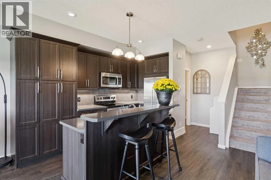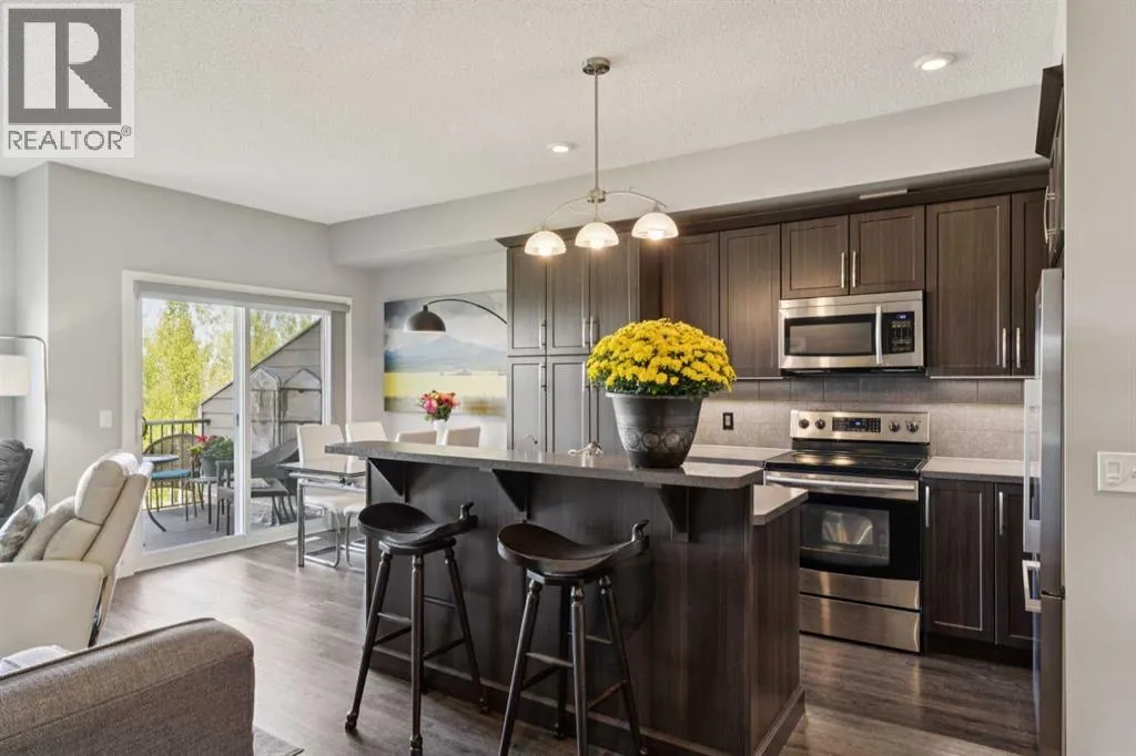 COMMERCIALLY ZONED LOT!!! EXECUTIVE CONDO | ATTACHED GARAGE | 3 BED + HOME OFFICE | MOUNTAIN VIEWS This three-bedroom executive condo offers the perfect balance of comfort and convenience in a quiet, established part of Cochrane. The community has a relaxed feel with friendly neighbours, nearby parks and walking paths, and schools and amenities only minutes away. Zoned commercial (C-SC), the home also allows you to run your business from a dedicated office with insulated walls, memory-foam underlay, fibre optic internet, and full privacy for meetings.Upgrades include QuietRock acoustic drywall, upgraded fridge, expanded pantry with lazy Susan, under cabinet lighting, cork flooring, bathrooms on every level, a full water softener system, reverse osmosis drinking water, custom blinds, and an upgraded HVAC with humidity control. The attached garage features FastTrack storage, an electric bike hoist. From every level youâll enjoy Rocky Mountain views and gorgeous sunsets from your main floor deck.This home is more than a place to live, itâs a lifestyle where you can work from home, enjoy the outdoors, and settle into a welcoming community (id:27476)