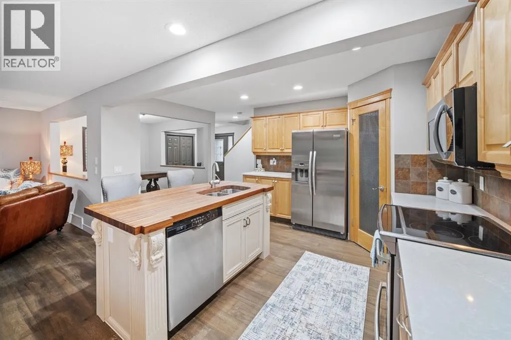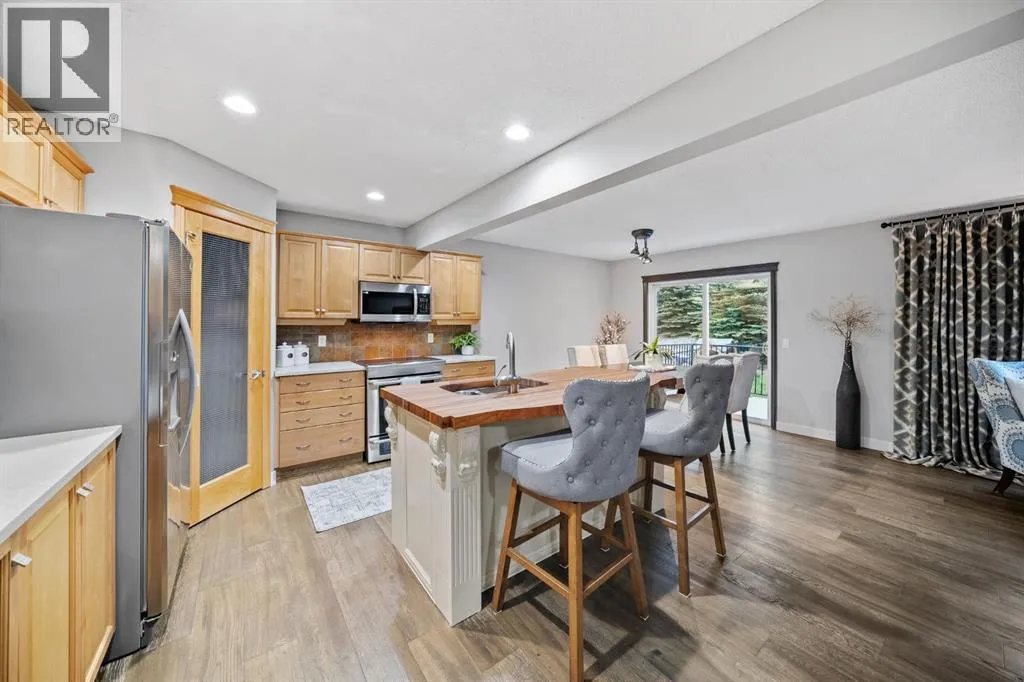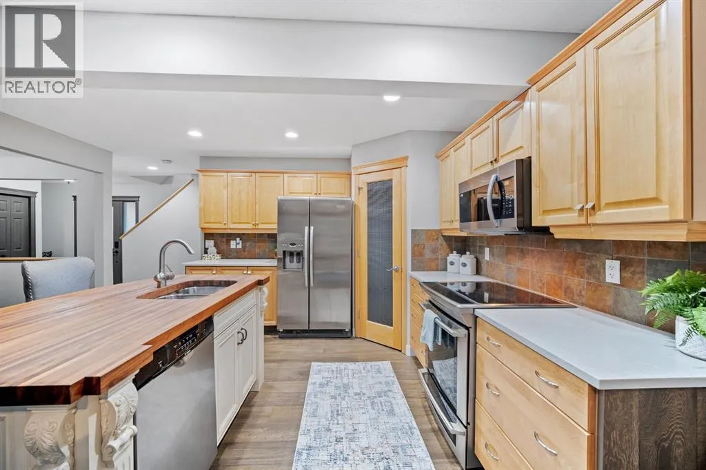 Imagine your new home in one of Cochraneâs most welcoming, family-friendly neighbourhoods â Sunset, voted Cochraneâs Best Neighbourhood for the second year in a row! Here, morning sunlight streams through triple-pane windows, and laughter from kids and pets fills the backyard. This charming home offers over 1,670 sq.ft. of living space with 3 bedrooms, 2.5 bathrooms, an oversized garage, and an unfinished basement ready to become your dream space â the perfect canvas for the life youâve been imagining.Completely updated in 2023, every corner feels fresh and inviting. Engineered hardwood flows through the main floor, walls are freshly painted, bathrooms feature granite counters, modern sinks, and new fixtures, and the backyard was newly sodded and landscaped, creating a private oasis framed by mature trees.The heart of the home, the kitchen, shines with a custom island, quartz countertops, stainless steel appliances, and a walk-in pantry â ideal for busy school mornings, weekend baking, or hosting friends and family. Gather around the dining nook for meals, or let the front room flex as a playroom, home office, or cozy spot for special occasions. Step outside to enjoy summer barbecues, backyard games, or quiet evenings under the trees.Upstairs, the primary suite is your personal retreat, complete with a walk-in closet and luxurious soaker tub. Two additional bedrooms share beautifully updated bathrooms, while the upper floor laundry adds everyday convenience. The unfinished basement is ready to grow with your family â whether thatâs a home theatre, gym, or extra living space. And the oversized garage easily fits two full-sized trucks plus all your toys, tools, and storage needs.Thoughtful updates continue with a newer hot water tank and washer/dryer (2023), ensuring comfort and convenience year-round. While the home is within walking distance of the new school, itâs thoughtfully positioned to avoid the traffic congestion often associated with drop-off and pick-up times.Living here means being part of a vibrant, family-oriented community with parks, playgrounds, trails, and schools just steps away, while Calgary is only a short drive for work or weekend adventures. (id:27476)