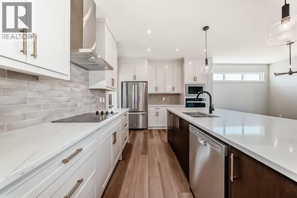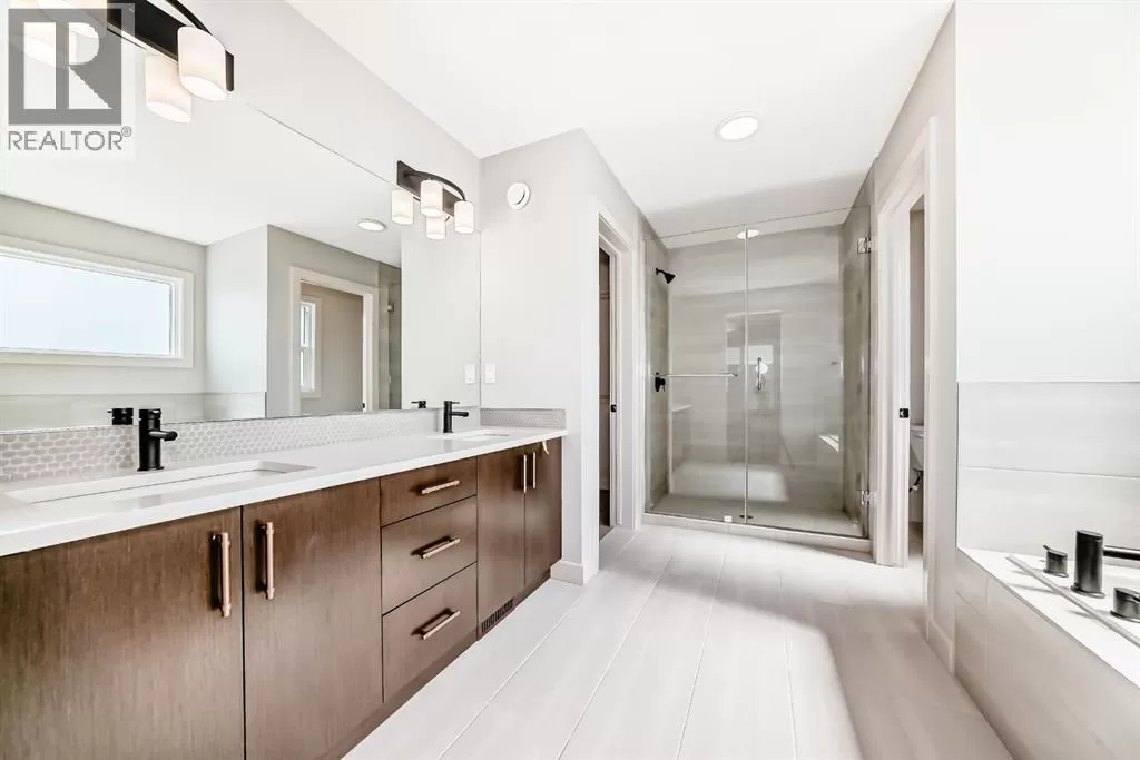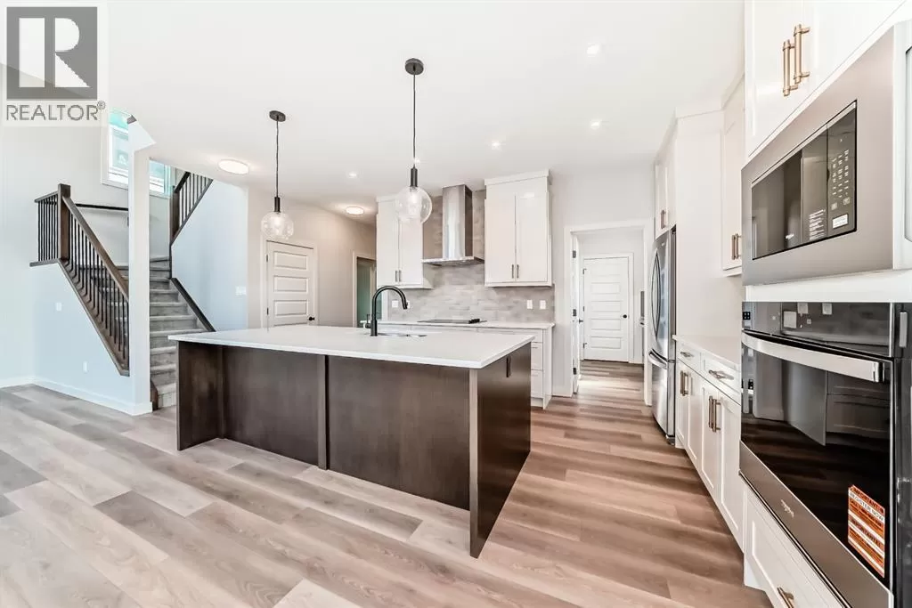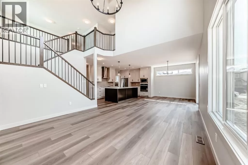 Welcome to The Bristol XL by Prominent Homes â a beautifully upgraded 2,571 sq. ft. residence offering thoughtful design, luxurious finishes, and flexible living options for the modern family. Located in the community of Heartland, this move-in ready home includes approximately $40,000 in upgrades.Step inside and experience the dramatic open-to-below living room and entryway creating a grand, light-filled atmosphere. The heart of the home is a chef-inspired kitchen, complete with ceiling-height cabinetry, quartz countertops, a premium built-in Whirlpool appliance package, and a fully equipped spice kitchenâperfect for gourmet cooking and entertaining.This home is designed for multi-generational living with a main floor bedroom option with a full bathroomâideal for guests, aging parents, or private home office use. Upstairs, you'll find TWO PRIMARY SUITES each with their own full ensuite bathrooms, along with two additional bedrooms and a fourth full bathroom.This exceptional home combines luxury, practicality, and value with access to many amenities of and quick escape to Ghost Lake Recreation area, Canmore and the Rocky Mountains for all your outdoor adventures. (id:27476)