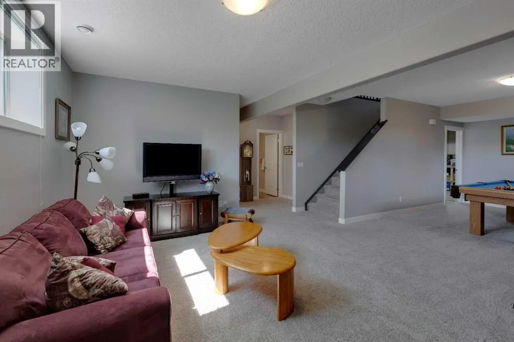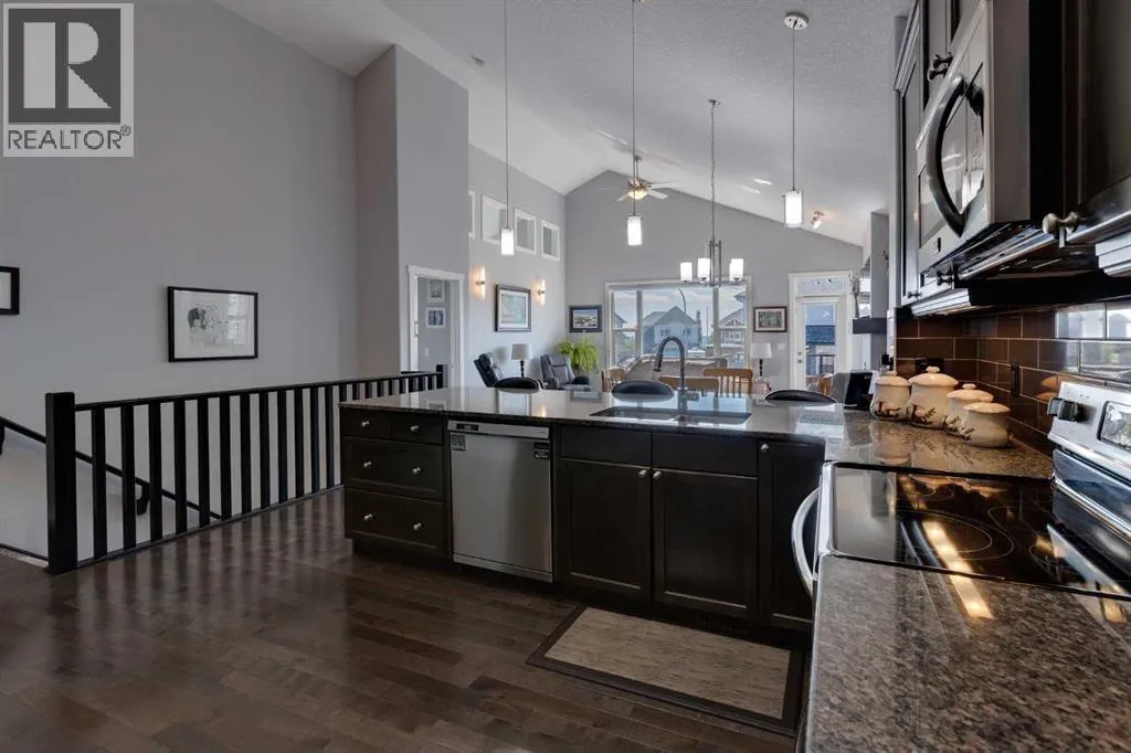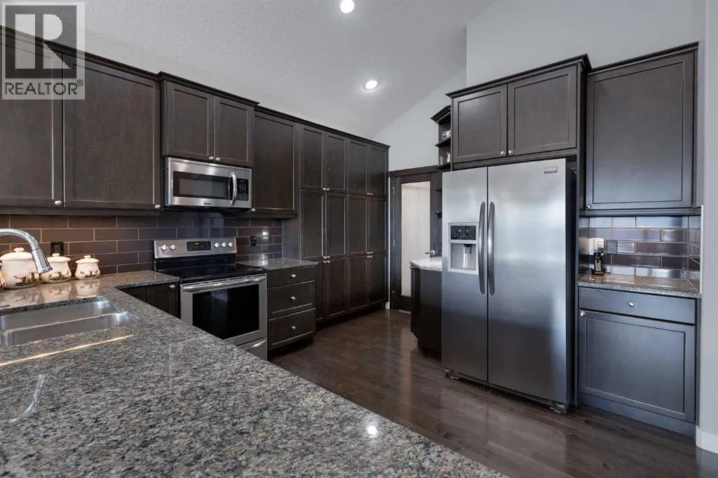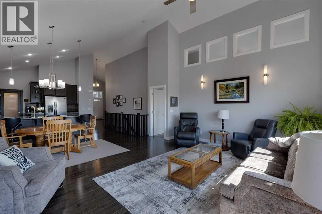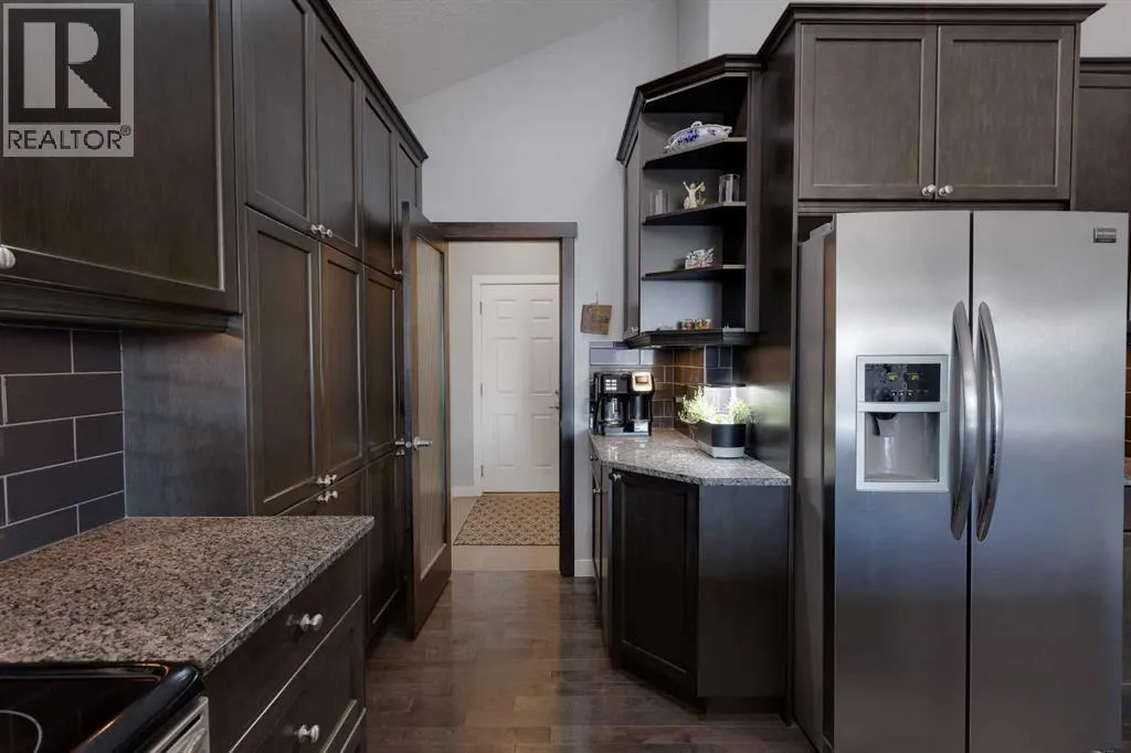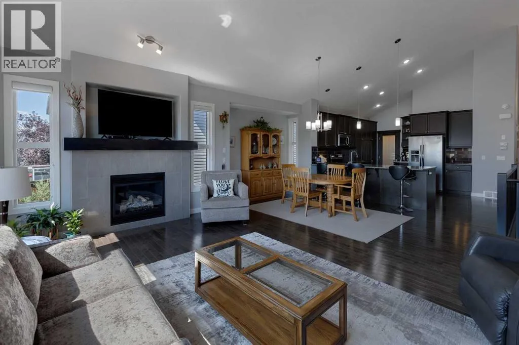Welcome to this impeccably maintained 4-bedroom, 2.5-bath bungalow nestled on a desirable corner lot in the sought-after community of Heritage Hills, Cochrane. Whether you're a young family looking for room to grow, or an experienced buyer seeking the ease of single-level living, this home offers the perfect balance of comfort, style, and smart functionality.Enjoy partial mountain views from your back deck and the beauty of a thoughtfully designed layout with 1,521 sq ft on the main floor and an additional 1,409 sq ft of fully finished basement spaceâideal for family gatherings, hobbies, or hosting guests.Main Floor Highlights:Bright and spacious open-concept design with a blend of hardwood, tile, and carpet flooringA chefâs kitchen with stainless steel appliances, under-cabinet lighting, ample cabinetry, and abundant storageA warm and inviting living room with a gas fireplace and extra windows for maximum natural lightMain floor laundryâa must for convenience and accessibilityLuxurious primary suite featuring vaulted ceilings, a walk-in closet, and a spa-inspired ensuite with heated floors and a soaker tubTwo private decks out back plus a charming front porchâperfect for morning coffee, evening wine, or connecting with neighboursLower Level Features:9-foot ceilings that make the basement feel bright and openA spacious bonus/family room, perfect for movie nights or a kids' play areaTwo generous bedrooms with oversized windowsA full bathroom, dedicated wine/beer-making room with sink, cold storage, and plenty of storage throughoutAdditional Features:Radon mitigation system already installedHunter Douglas blinds throughout the main floorCentral vacuum system and assumable security system ($40/month)RV parking pad (or easily converted to green space)Professionally landscaped yard with underground irrigation and garden plotsLow-maintenance buffer between this home and the neighbour for added privacySet in a welcoming community c lose to parks, walking trails, and Cochraneâs many amenities, this home offers the best of both worlds: peaceful suburban living with quick access to Highway 1A for easy trips to Calgary, Ghost Lake, or the Rocky Mountains.Whether you're planning for the future or simply want a home that fits your lifestyle today, this Heritage Hills bungalow delivers unmatched comfort, accessibility, and charm. (id:27476)