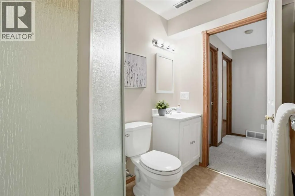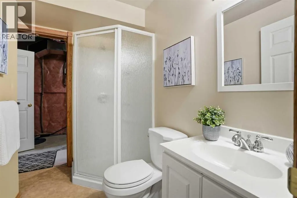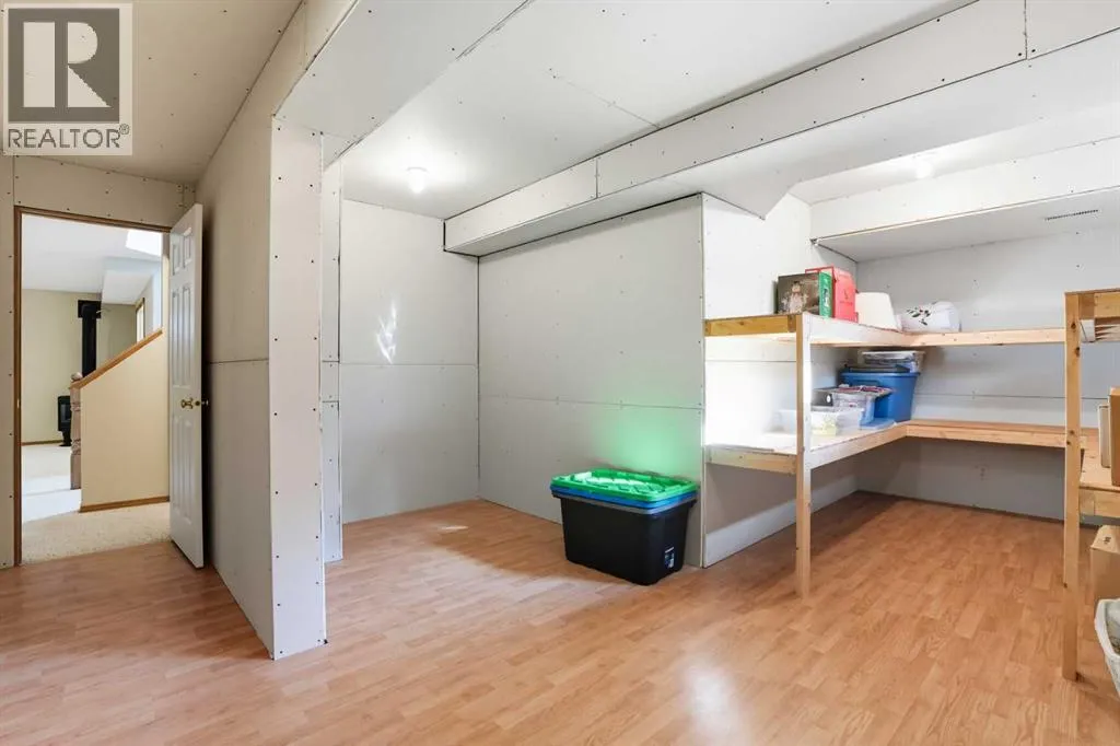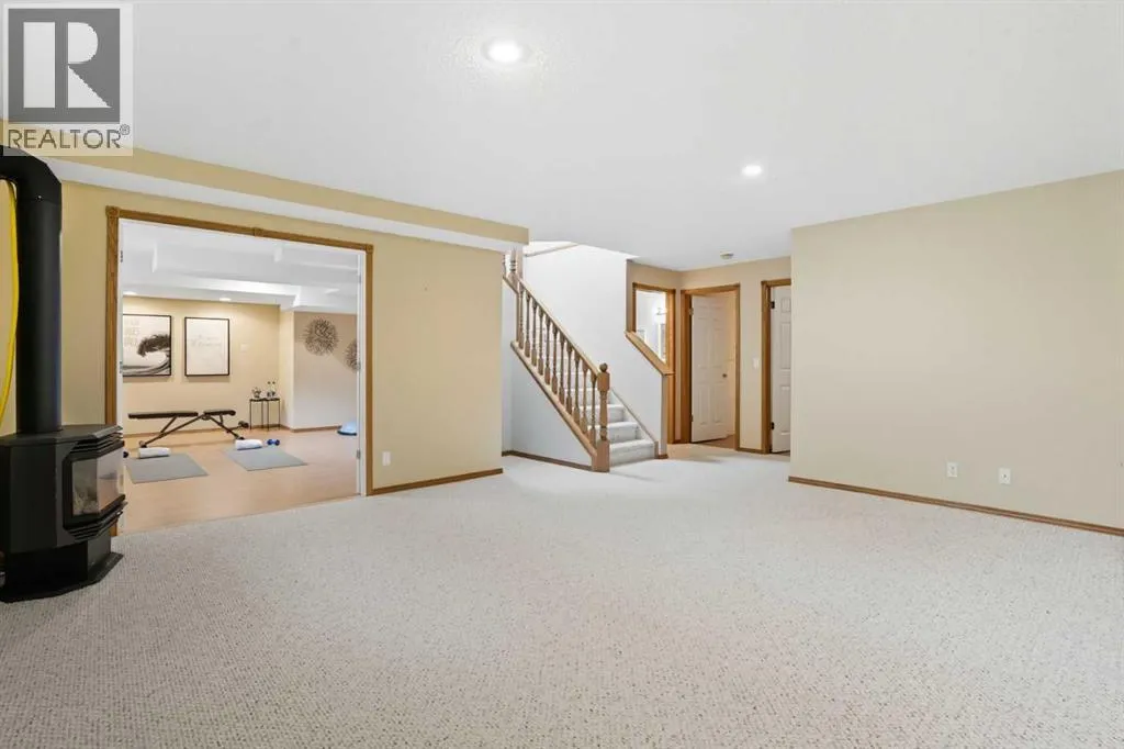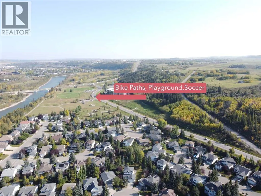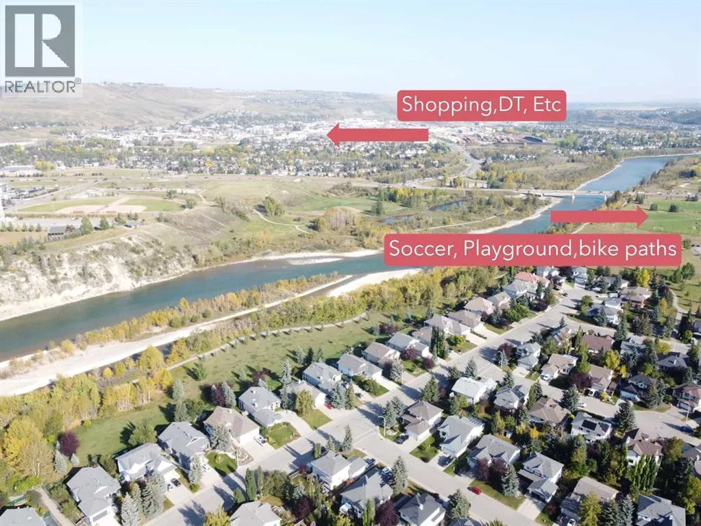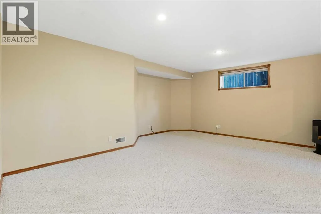 OPEN HOUSE SATURDAY, Nov 8th, 10-Noon.This beautifully updated bungalow in Bow Meadows perfectly blends comfort, style, and a serene natural setting. Soaring lofted ceilings with a skylight fill the main level with sunlight, complementing the warm maple hardwood floors and open-concept design.The refreshed kitchen features elegant quartz countertops, a modern backsplash, stainless steel appliances, and a corner pantry. The flexible formal dining room can easily serve as a bright office or cozy sitting area.The spacious primary suite includes a renovated ensuite and walk-in closet. Downstairs, the fully developed lower level offers a large recreation room with a second fireplace, a guest bedroom, a 3-piece bath, and a generous flex space that could easily become a 4th bedroomâall while maintaining excellent storage.Step outside to your private backyard oasis with lush landscaping, underground irrigation, mature trees, a Duradeck patio with BBQ gas line, and a hot tub for year-round enjoyment. The oversized double garage impresses with epoxy floors, 10â ceilings, and a side-mount opener perfect for a car lift.Recent updates include:⢠Roof (approx. 5 years)⢠Hot water tank (2022)⢠Washer & dryer (2 years)Additional highlights: central vacuum, roughed-in water softener, two fireplaces, and peace of mind knowing this property is not located in the flood plain or flood fringe.Located just steps from the Bow River and Jumpingpound Creek pathways, downtown Cochrane, and local schools, this home offers privacy, sunlight, and lifestyle in one of Cochraneâs most sought-after communities. (id:27476)