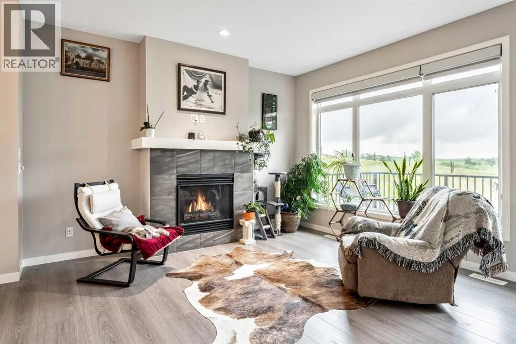 GREAT VALUE! BUILT IN 2017 | FANTASTIC FLOOR PLAN | TRIPLE PANE WINDOWS | UNREAL SOUTH FACING VIEWS + MORE! Secluded in the southern Cochrane community of Fireside, this immense side by side has everything you need. The floor plan & location are amazing, with views of a wide reaching pasture reserve that truly need to be seen in person to be appreciated. This home stands at a brilliant 2,148 square feet above grade & offers a ton of classy comfortable features like: A/C for hot days, a gas fireplace for a warming ambience, multiple large Triple Pane windows that frame great outdoor sight lines, a built in wall oven & microwave for hosting family dinners, an induction cooktop for elegant cooking, a 5 piece ensuite bathroom retreat for relaxation, a stamped concrete patio to enjoy the outdoors & plenty more! Vinyl plank flooring flows throughout the main floor kitchen, family room & dining area. The upper bonus room is a great in between section of the house that provides separation from the main floor to the upper bedrooms. The 861 square foot basement is untarnished & ready for you to create your own space + add even more value to this already awesome home. Fully developed, this property would offer nearly 3,000 square feet! This is a prime location with easy access to the mountains, Calgary, shopping amenities & Public/Catholic schools. Itâs safe to say itâs easier to appreciate everything this house has to offer in person. Come take a look! (id:27476)