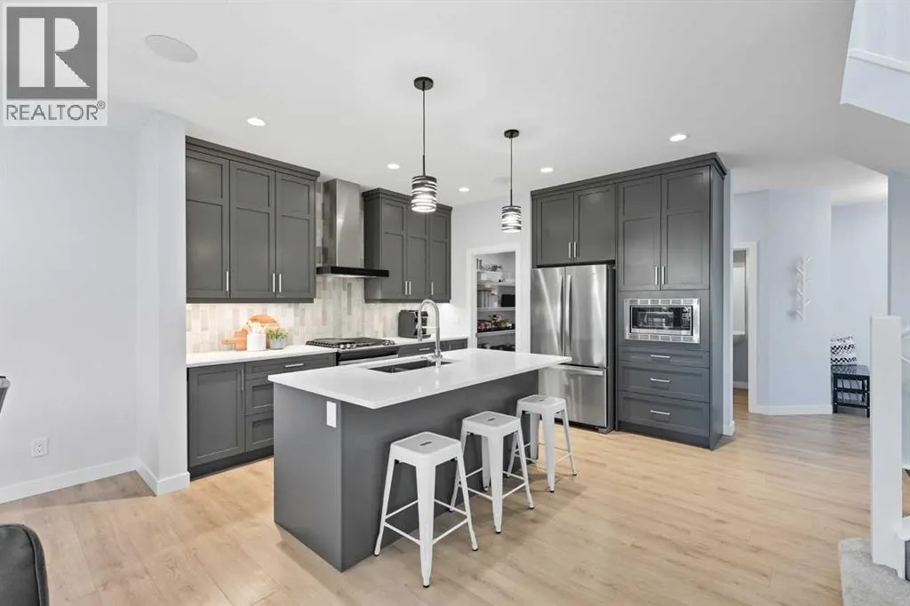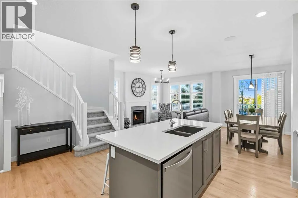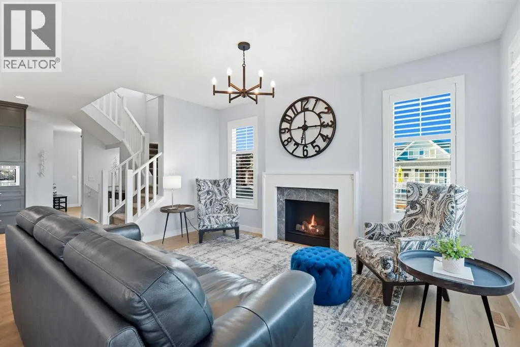 Welcome to this pristine two-story detached home on a desirable CORNER LOT in the family-friendly Fireside community, where thoughtful design meets comfort and convenience at every turn. Step inside to discover ENGINEERED HARDWOOD floors throughout the main living areas, filling the bright, open-concept space with warmth and elegance, accentuated by LARGE WINDOWS adorned with CUSTOM SHUTTERS that invite natural light or provide cozy privacy. The heart of the home is the beautifully upgraded kitchen, complete with high-quality appliances and seamless cabinetry. The functional mudroom leads directly to a spacious pantry, making organization effortless. Gather around the cozy GAS FIREPLACE in the living room or enjoy the perfect indoor climate year-round with CENTRAL AIR-CONDITIONING. Upstairs, youâll find three generous bedrooms, including a primary retreat with VAULTED CEILINGS, a luxurious ensuite, and a spacious closet, designed to provide comfort and privacy. From the primary bedroom, enjoy evenings as the sun sets beautifully over the distant mountain peaks. A bright bonus room and convenient laundry area complete the upper level, providing flexible living options. The FULLY FINISHED BASEMENT offers a fourth bedroom, a full bathroom, a large recreation area, and additional storage, giving everyone in the family room to grow and play. Step outside to an EXPANSIVE COMPOSITE DECK overlooking a beautifully landscaped yard with NO NEIGHBOURS BEHIND, offering the perfect setting for watching the morning sunrise, outdoor entertaining or peaceful relaxation. Living in Fireside means more than just a homeâitâs a lifestyle, with excellent schools, convenient shopping and dining, scenic walking and biking paths, numerous playgrounds, and even an outdoor ice rink just around the corner. With Fireside School right next door, school drop-offs are as simple as stepping outside your door, making this home ideal for families who value both comfort and community. Every detail of t his home has been thoughtfully designed to create a space that is bright, functional, and welcomingâa place where everyday moments feel extraordinary and every corner feels like it was made just for you. (id:27476)