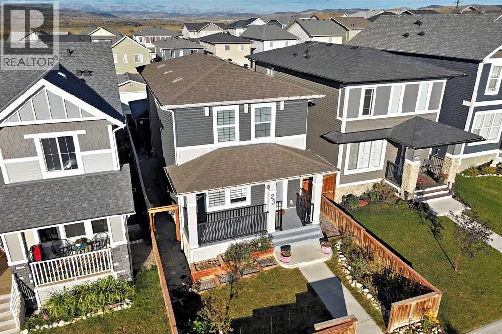 Discover your perfect home in Cochrane with this exceptional detached house, nestled in the highly desirable Heritage Hills community. This charming residence is fully fenced at both the front and back, making it an ideal for families with children or pets. Located on a serene street, this home combines tranquility and convenience perfectly.The inviting outdoor spaces include a delightful front porch on this east-facing home, perfect for enjoying your morning coffee while basking in the gentle morning sun. Upon entering, youâll be welcomed by an open-concept layout. To your right is a convenient front closet, and directly ahead is a half bathroom. The kitchen, boasts a gas range stove, a pantry, and ample cupboard space. Generous windows at both the front and back of the house ensure the main floor is bathed in natural light.A set of wide stairs leads you to the spacious upper level. Here, youâll find a storage closet and an additional room perfect for storage or laundry. The primary bedroom features its own private bathroom, while two other bedrooms share a full bathroom. The versatile basement is unfinished and houses the washer and dryer.At the rear of the property, the oversized 22x24-foot garage is insulated and features an overhead gas tube heater, and ventilation fans, perfect for any home workshop enthusiast. The yard is equipped with a sprinkler system to keep the lawn looking its best.Conveniently located just down the hill, you'll find a variety of amenities, including restaurants, a gym, and a daycare. Across the highway, thereâs a gas station, a Tim Hortons, and a police station. Living on Cochraneâs west side provides easy access to the mountains for day trips while still enjoying the benefits of town living.Donât miss the opportunity to explore this remarkable home todayâitâs brimming with features to enhance your lifestyle! (id:27476)