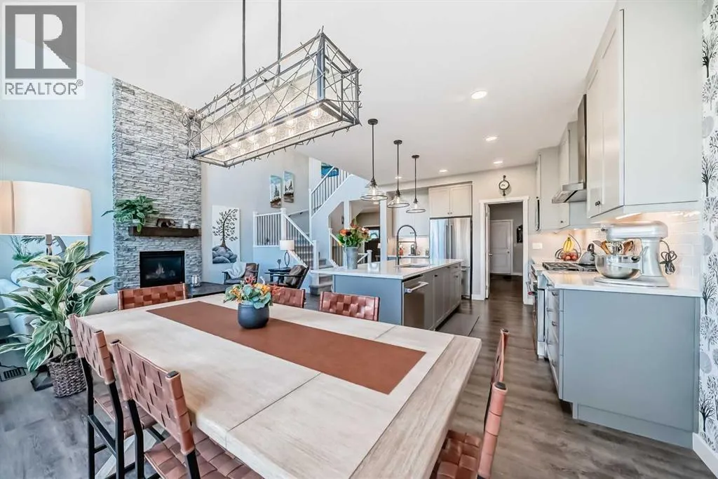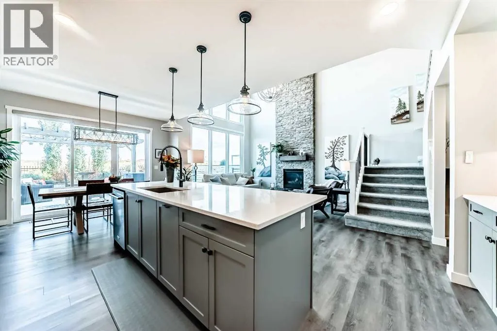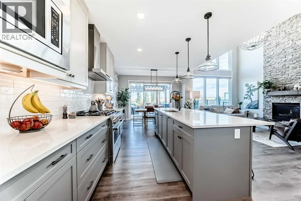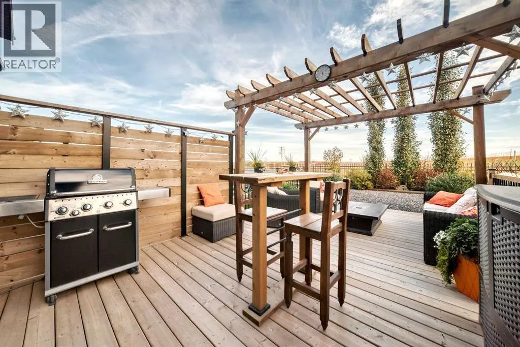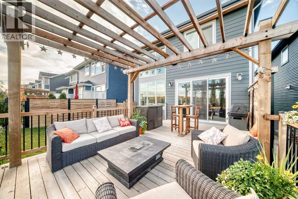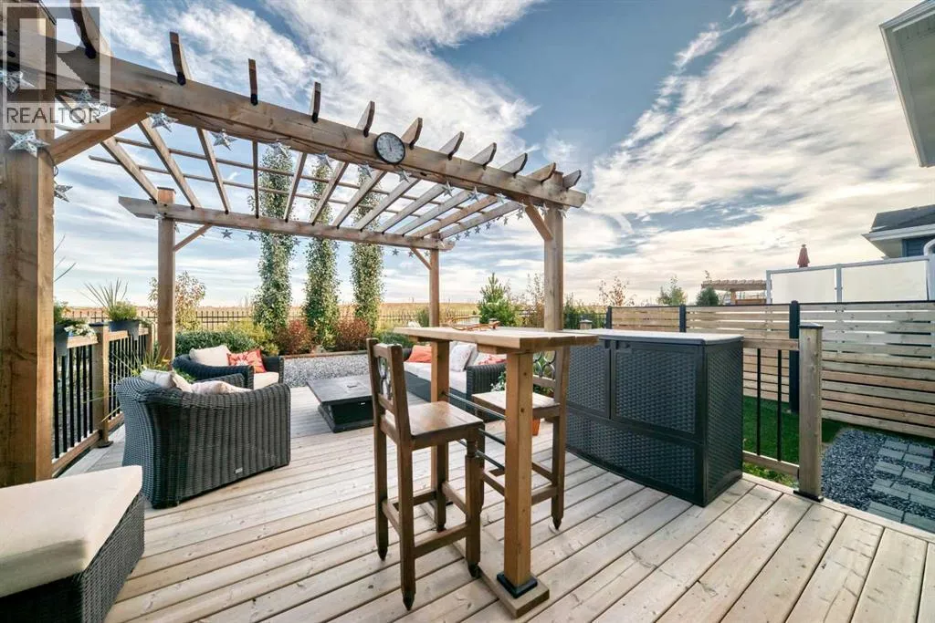 204 Sunrise Common is a remarkable home and offers over 2,100 sq ft of beautifully designed living space. It features a heated garage with an extended area, complete with a workshop space, an 8Ft door, a sink with hot and cold water access, and a separate side entrance for convenient yard access. The lovely backyard backs to a future walking path and green space, featuring a fantastic deck with a pergola, a built-in bar table, a gas hookup for a BBQ, and a fire table, making it perfect for outdoor gatherings.Inside, you'll be greeted by high ceilings, highlighted by a magnificent gas fireplace surrounded by floor-to-ceiling stone. A walkthrough pantry connects the garage to the kitchen, equipped with California closet organizers, ceiling height cabinets. Culinary enthusiasts will appreciate the six-burner gas range, built-in microwave, quartz countertops, and spacious island, all ideal for entertaining guests. James Hardie siding creates stunning curb appeal along with the landscaped yardUpstairs, a convenient laundry area features a countertop, and a built-in drying rack, enhancing the home's functionality. The bonus room boasts vaulted ceilings, creating an airy atmosphere while also offering scenic mountain views. All the bathrooms have quartz countertops with under mount sinks. The 4 pc primary ensuite features a fully tiled oversized shower and a dual vanity.The unfinished basement provides endless possibilities for customization to suit your personal style. This exceptional home perfectly blends comfort, style, and practicality, and is located near Ranchview K-8 School, St. Tim's 8-12 High School, shopping, walking paths, and parks in the family-friendly neighborhood of Sunset. Donât miss this incredible opportunityâschedule your showing today! (id:27476)