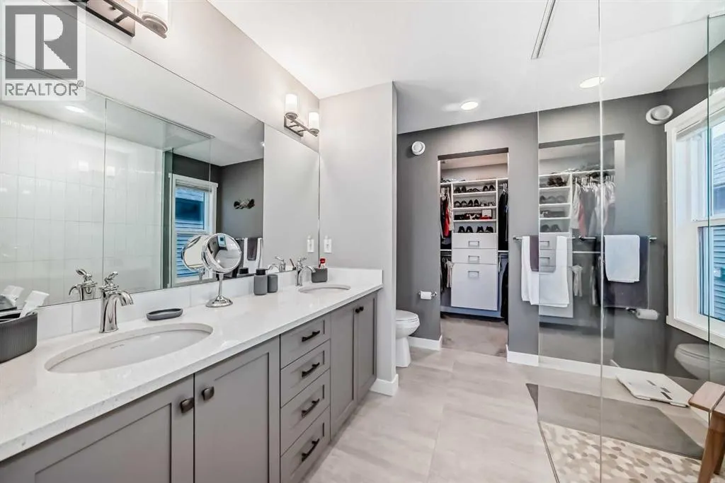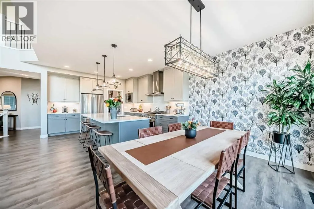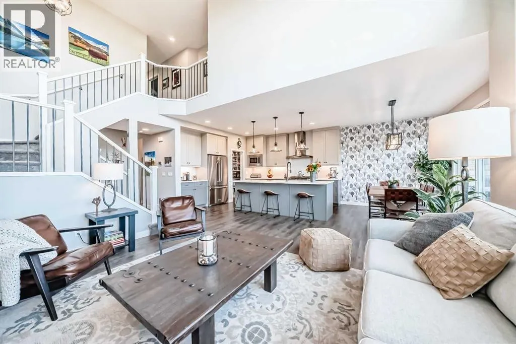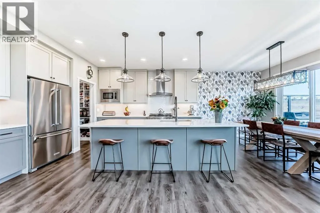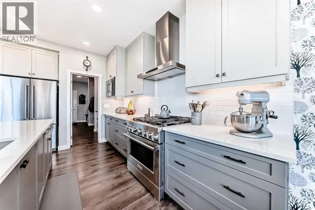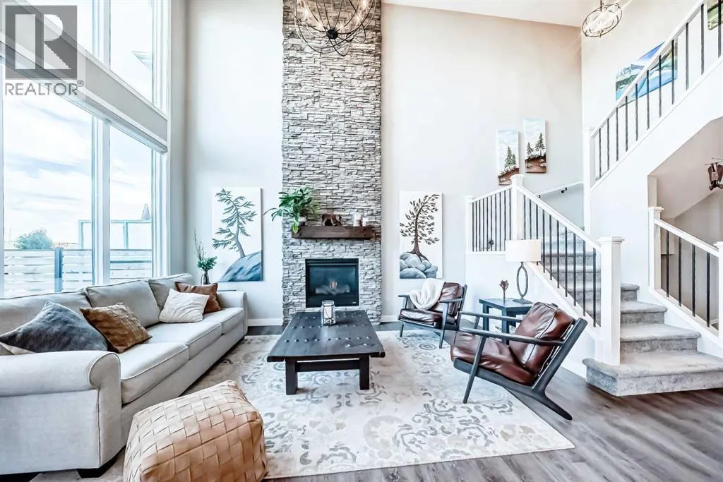 204 Sunrise Common is a remarkable home and offers over 2,100 sq ft of beautifully designed living space. It features a heated garage with an extended area, complete with a workshop space, an 8Ft door, a sink with hot and cold water access, and a separate side entrance for convenient yard access. The lovely backyard backs to a future walking path and green space, featuring a fantastic deck with a pergola, a built-in bar table, a gas hookup for a BBQ, and a fire table, making it perfect for outdoor gatherings.Inside, you'll be greeted by high ceilings, highlighted by a magnificent gas fireplace surrounded by floor-to-ceiling stone. A walkthrough pantry connects the garage to the kitchen, equipped with California closet organizers, ceiling height cabinets. Culinary enthusiasts will appreciate the six-burner gas range, built-in microwave, quartz countertops, and spacious island, all ideal for entertaining guests. James Hardie siding creates stunning curb appeal along with the landscaped yardUpstairs, a convenient laundry area features a countertop, and a built-in drying rack, enhancing the home's functionality. The bonus room boasts vaulted ceilings, creating an airy atmosphere while also offering scenic mountain views. All the bathrooms have quartz countertops with under mount sinks. The 4 pc primary ensuite features a fully tiled oversized shower and a dual vanity.The unfinished basement provides endless possibilities for customization to suit your personal style. This exceptional home perfectly blends comfort, style, and practicality, and is located near Ranchview K-8 School, St. Tim's 8-12 High School, shopping, walking paths, and parks in the family-friendly neighborhood of Sunset. Donât miss this incredible opportunityâschedule your showing today! (id:27476)